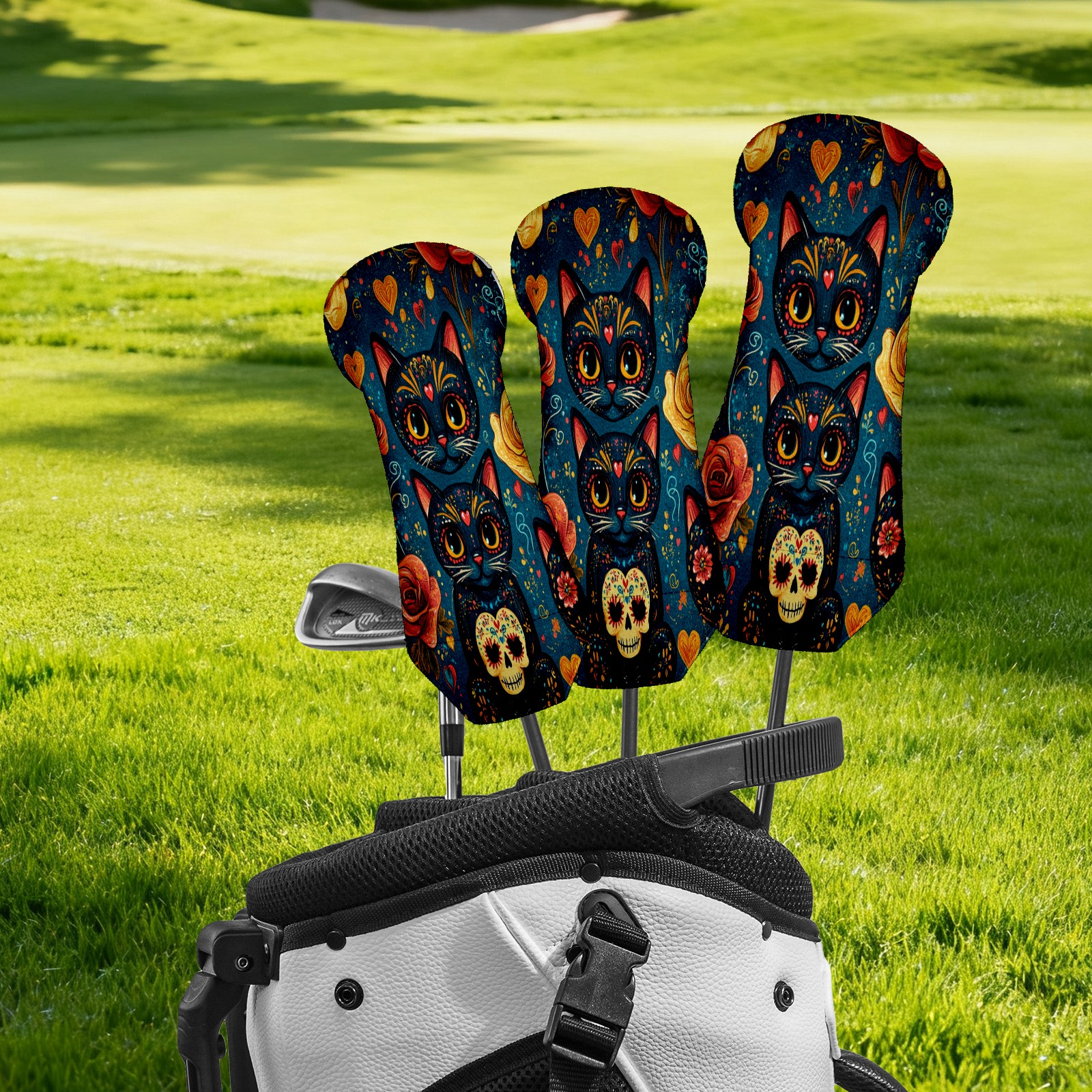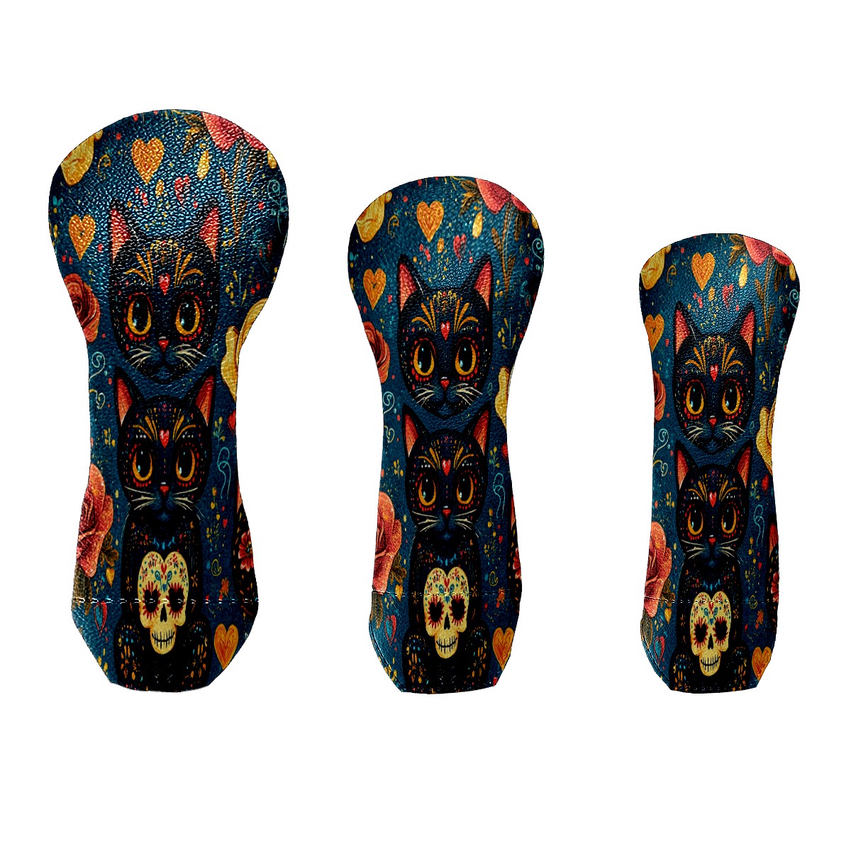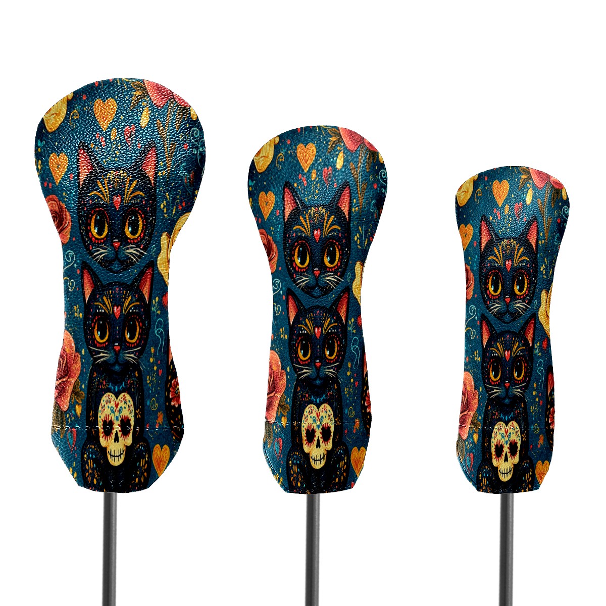 Golf Club Covers for Woods and Driver Hybrid Velvet Cover Leather Golf Headcover for Most Brand Club Men Women Floral Black Cat