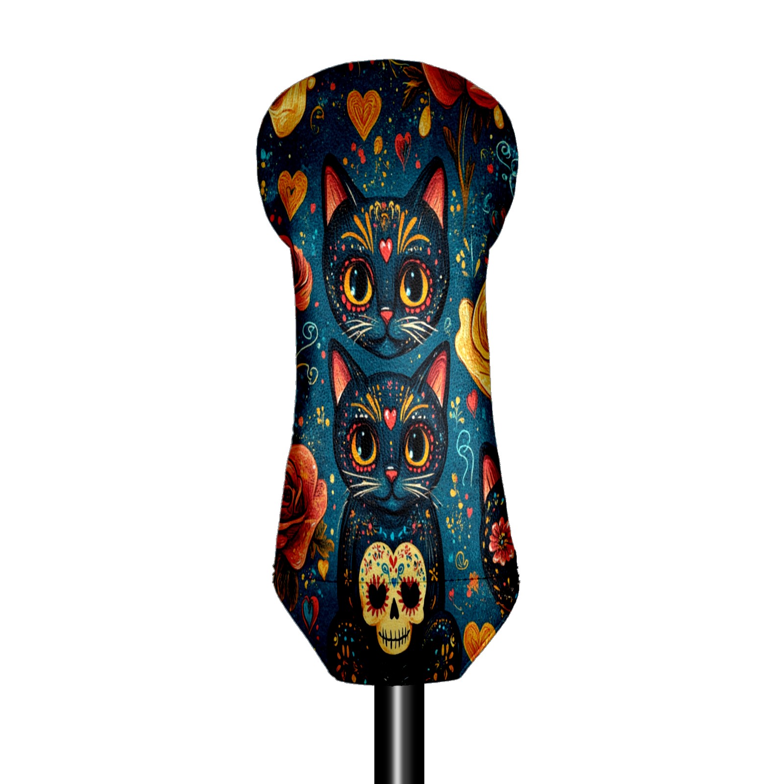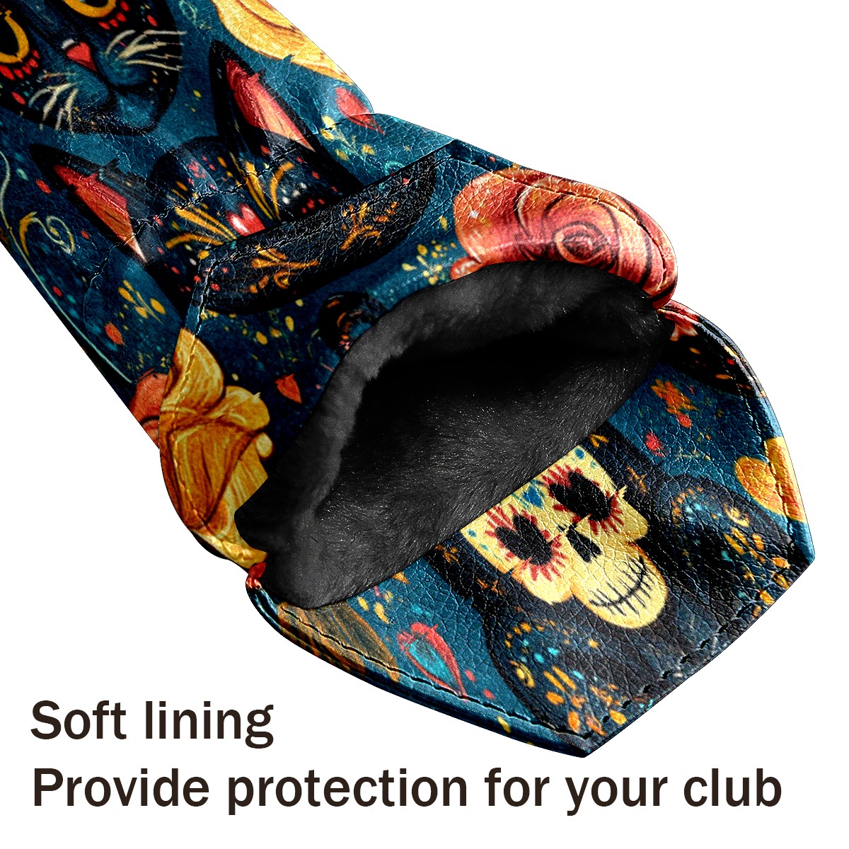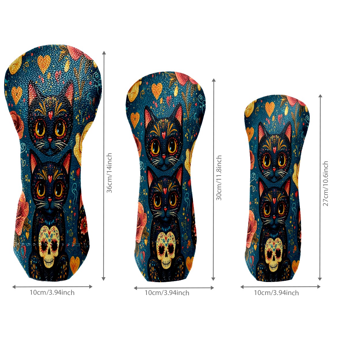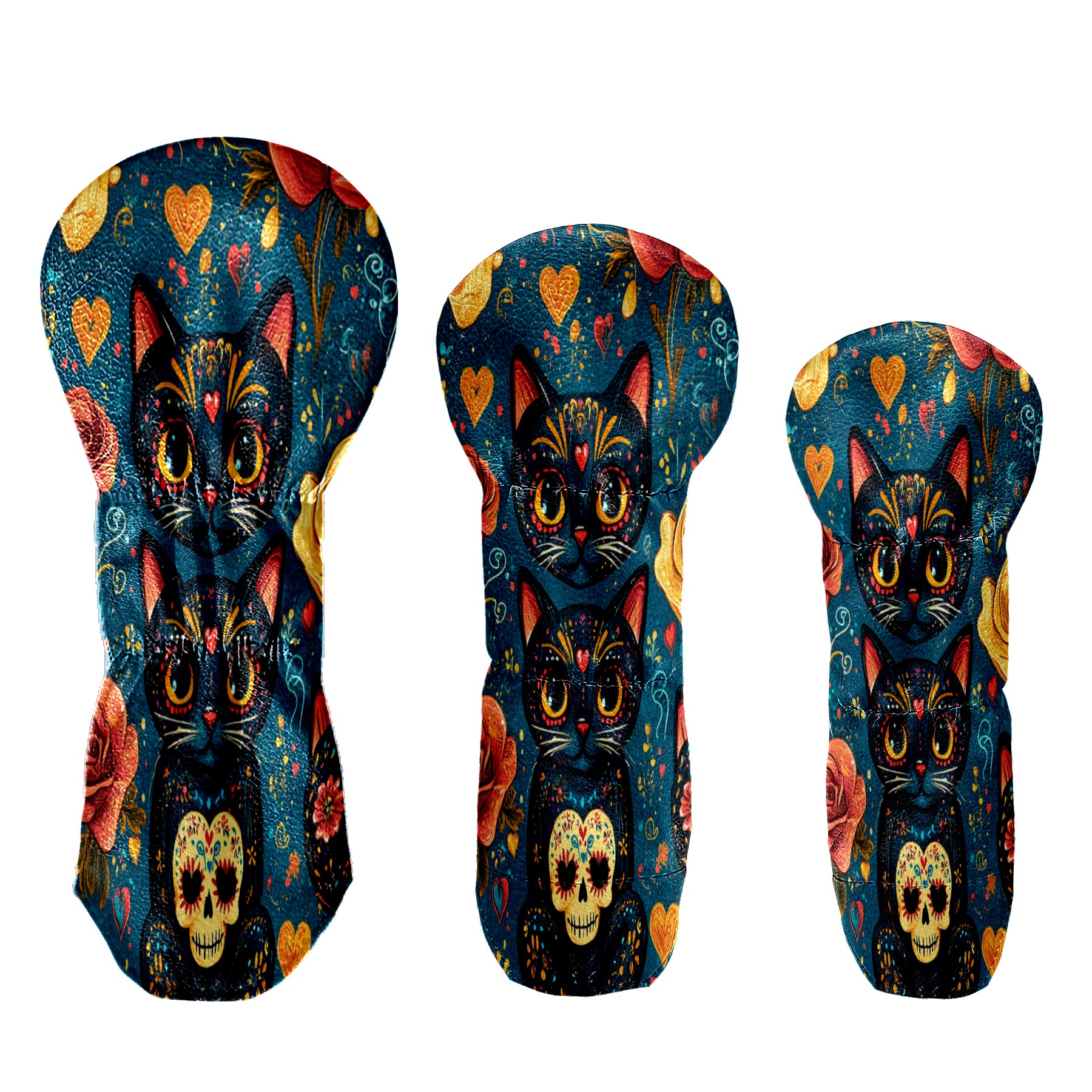 Golf Club Covers for Woods and Driver Hybrid Velvet Cover Leather Golf Headcover for Most Brand Club Men Women Floral Black Cat