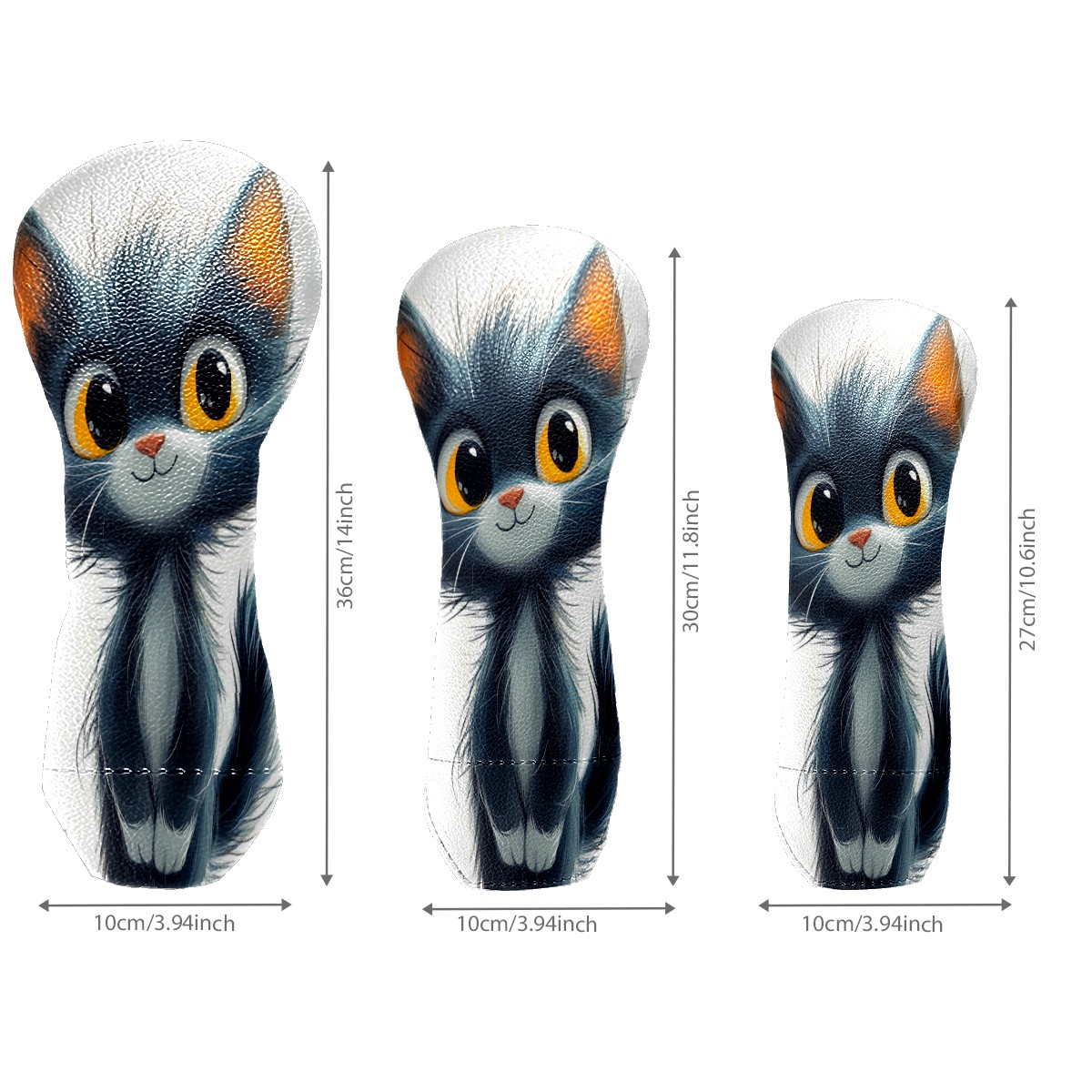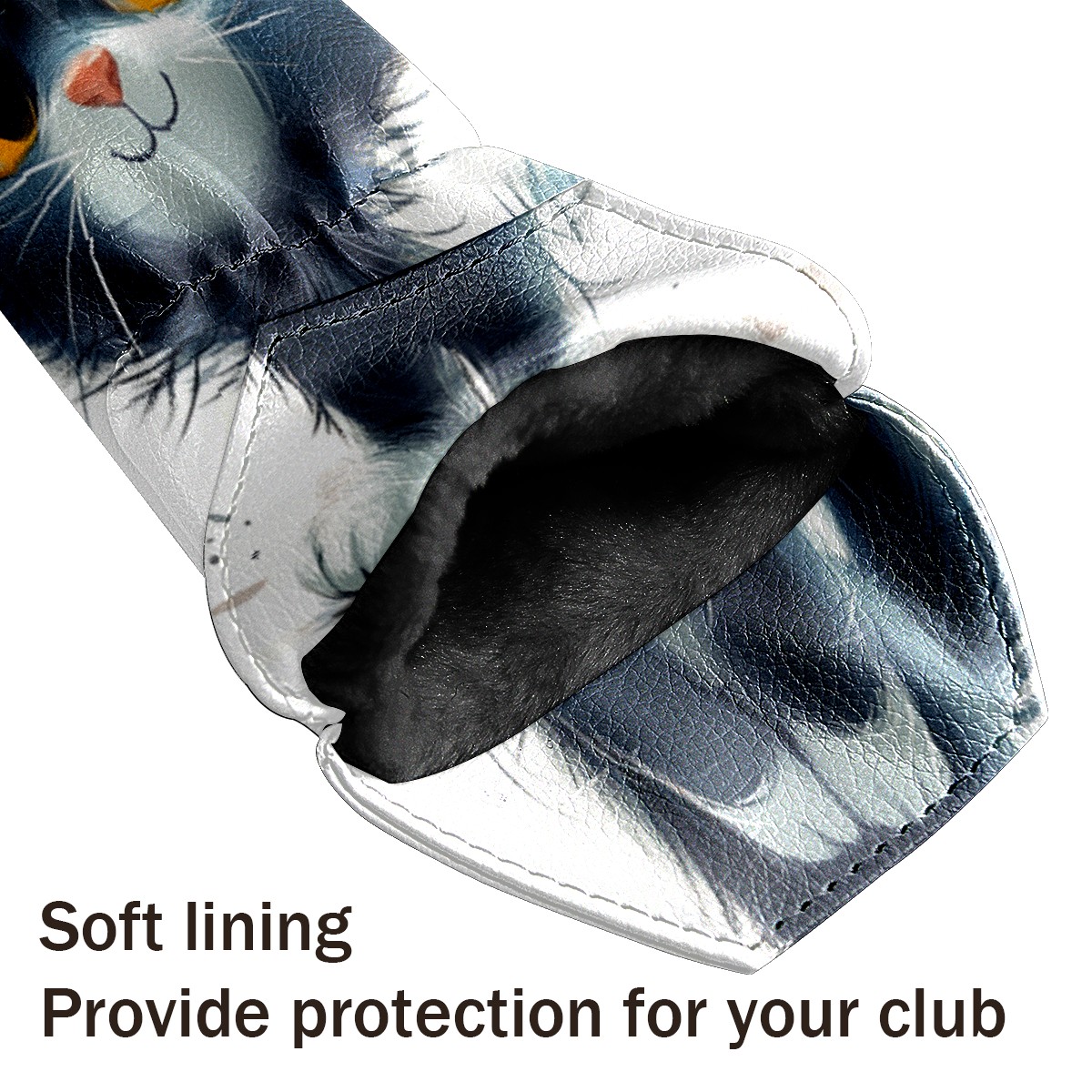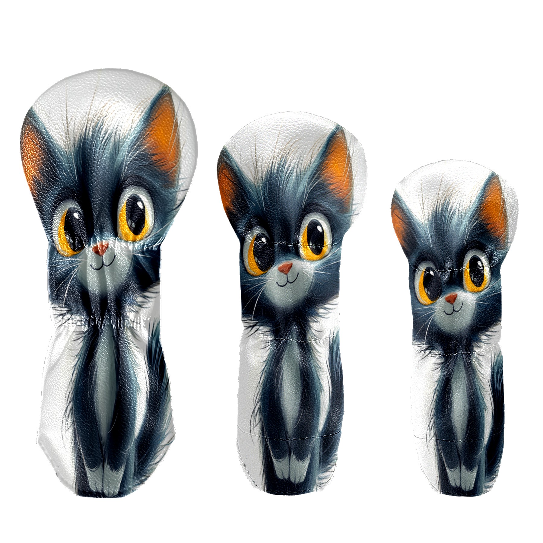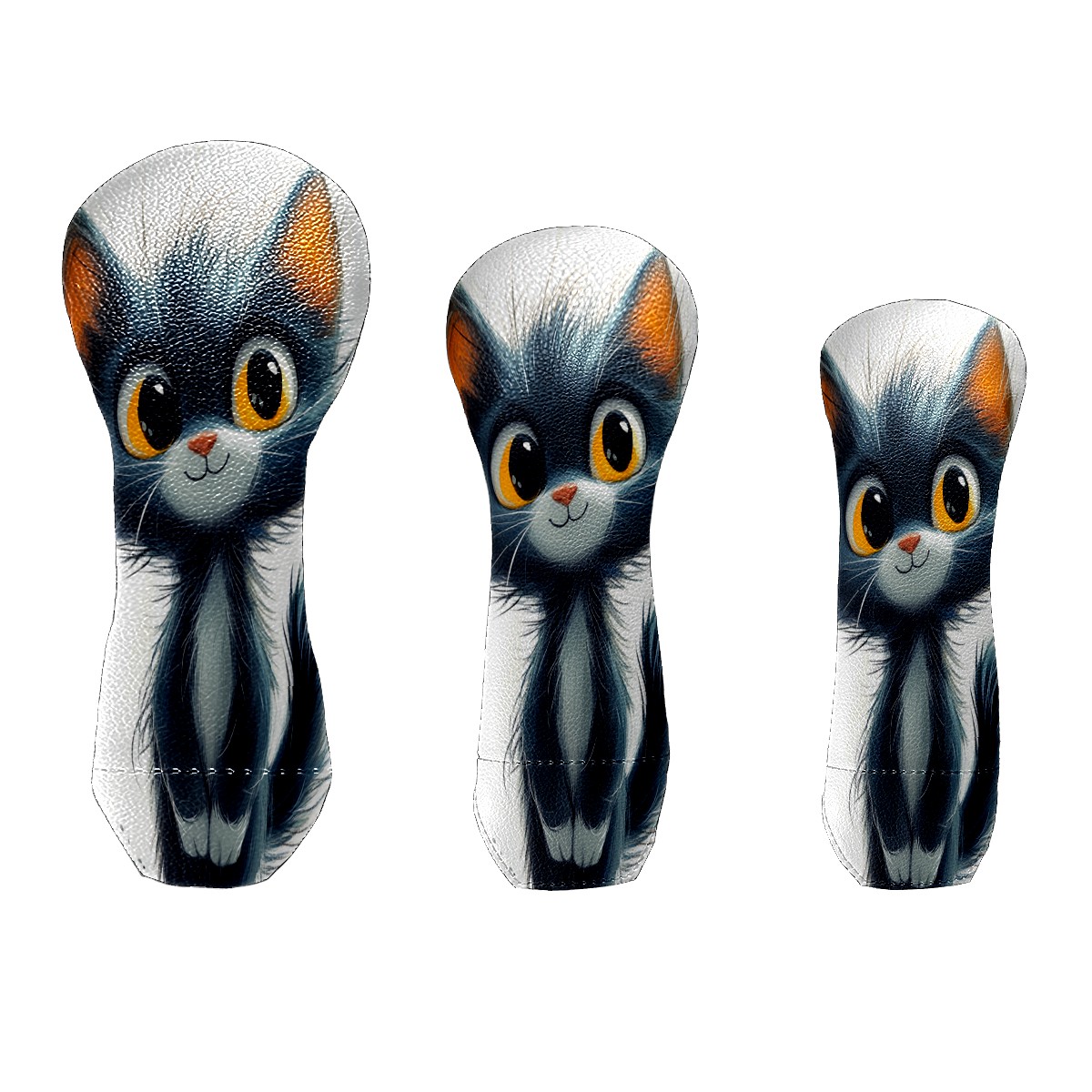 Golf Club Covers for Woods and Driver Hybrid Velvet Cover Leather Golf Headcover for Most Brand Club Men Women Gray Cat Cartoon Pattern
