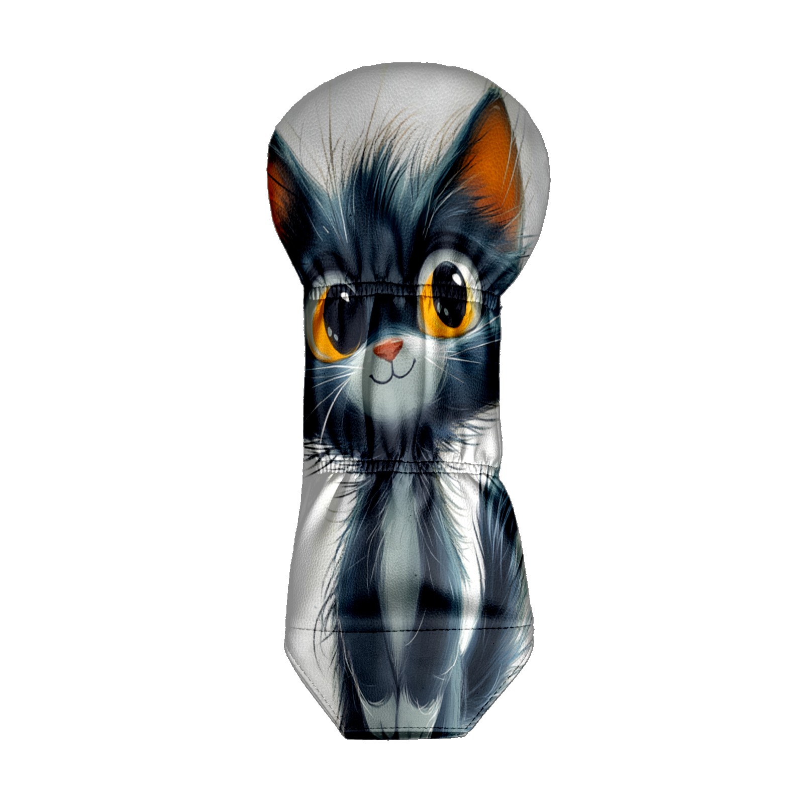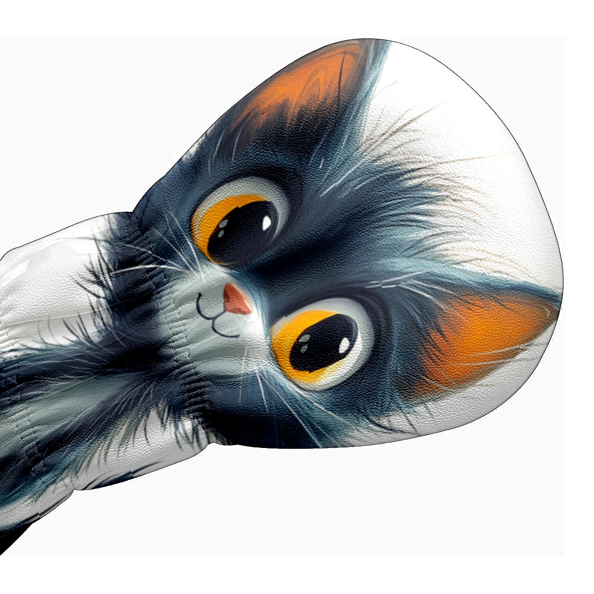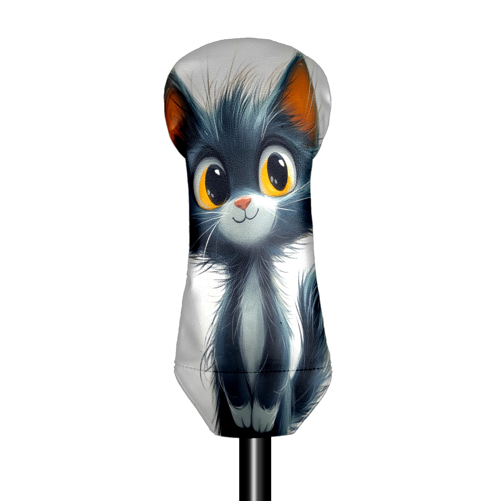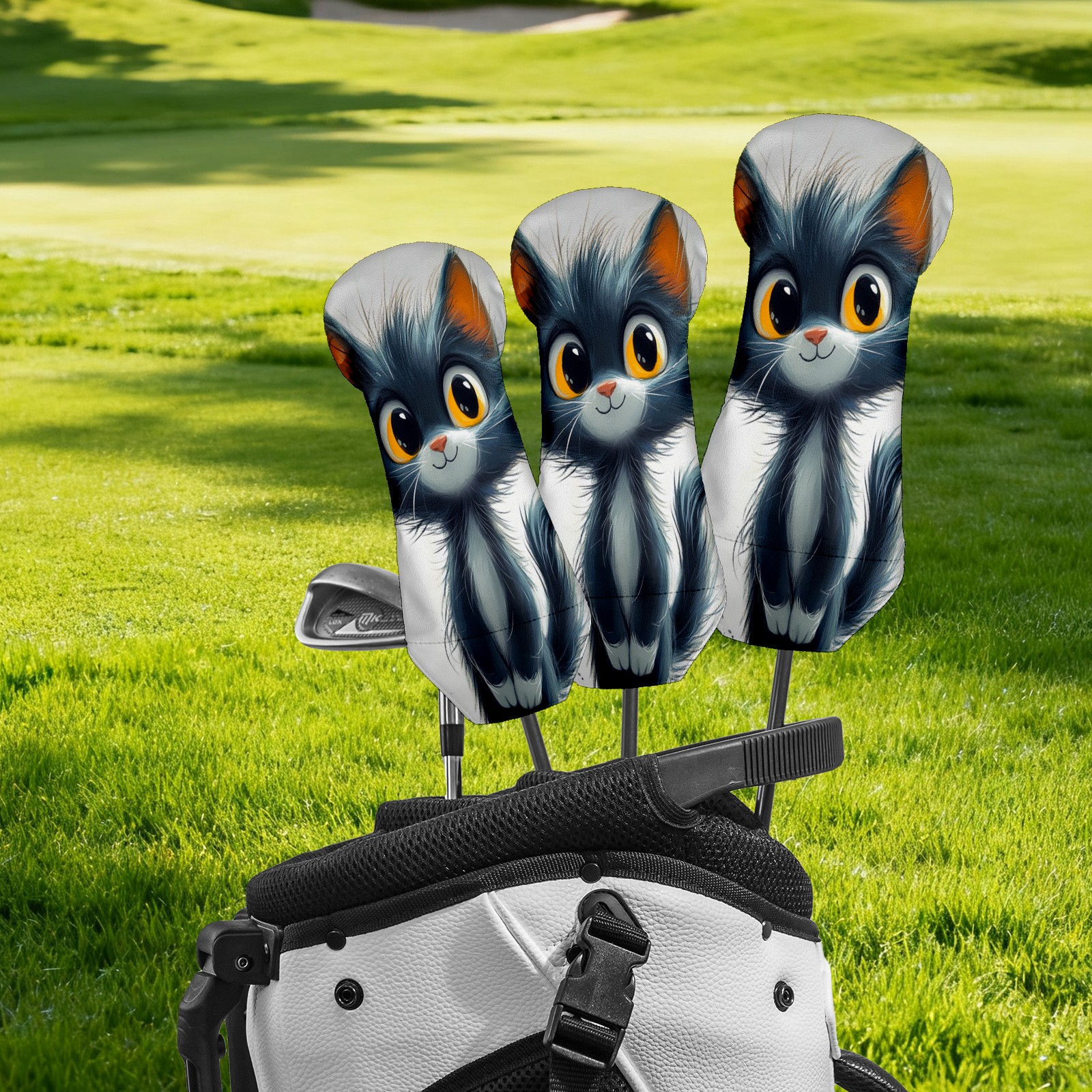 Golf Club Covers for Woods and Driver Hybrid Velvet Cover Leather Golf Headcover for Most Brand Club Men Women Gray Cat Cartoon Pattern