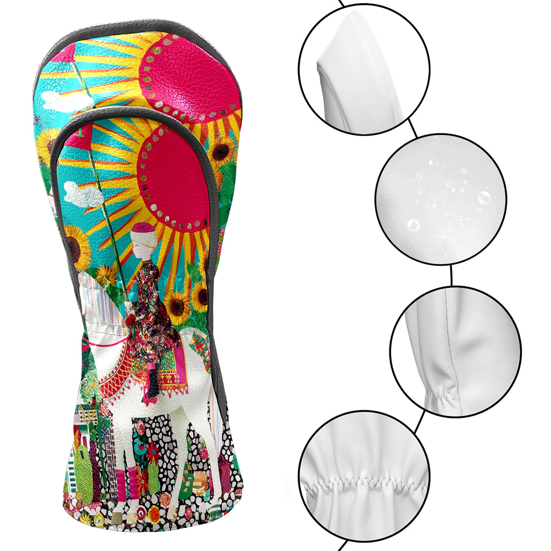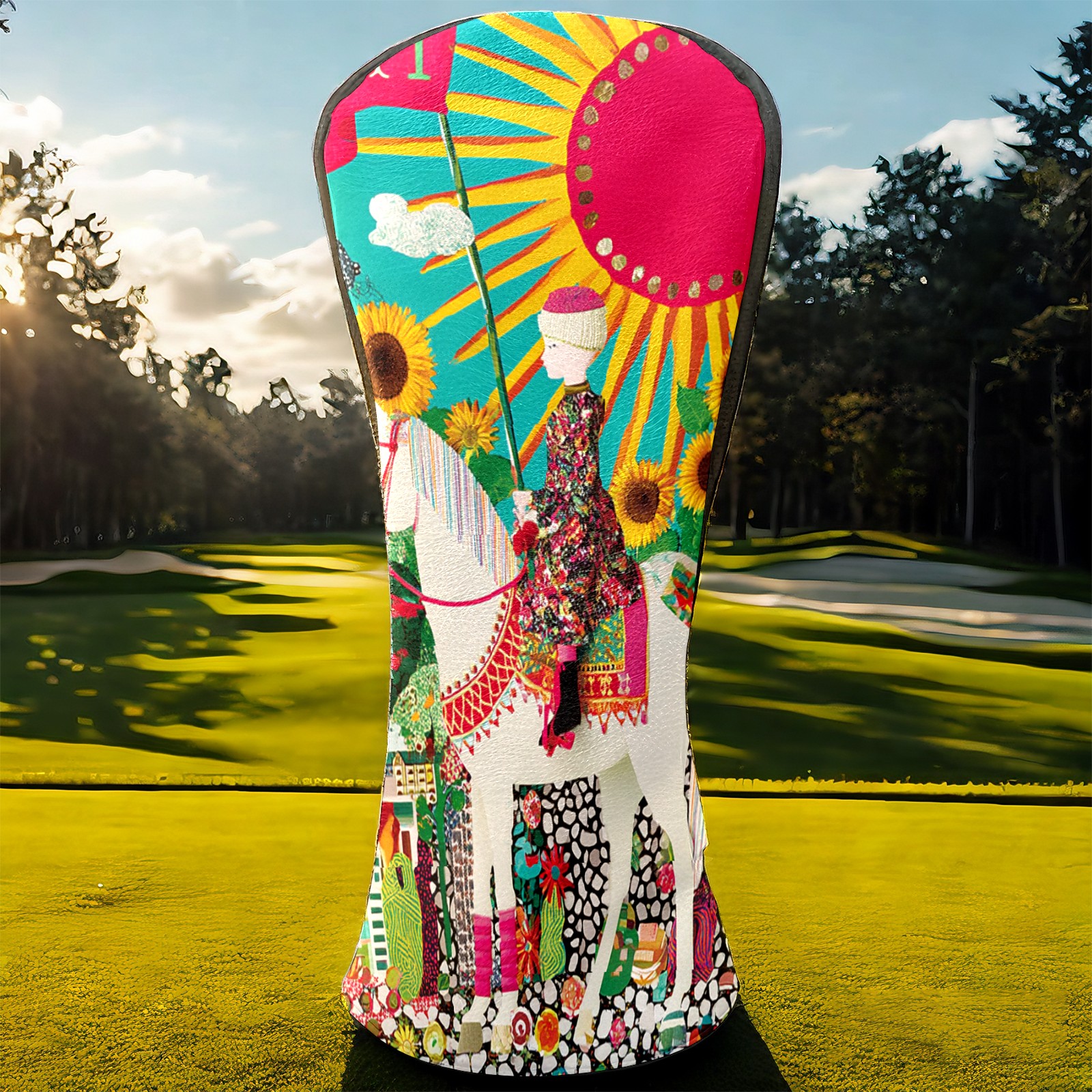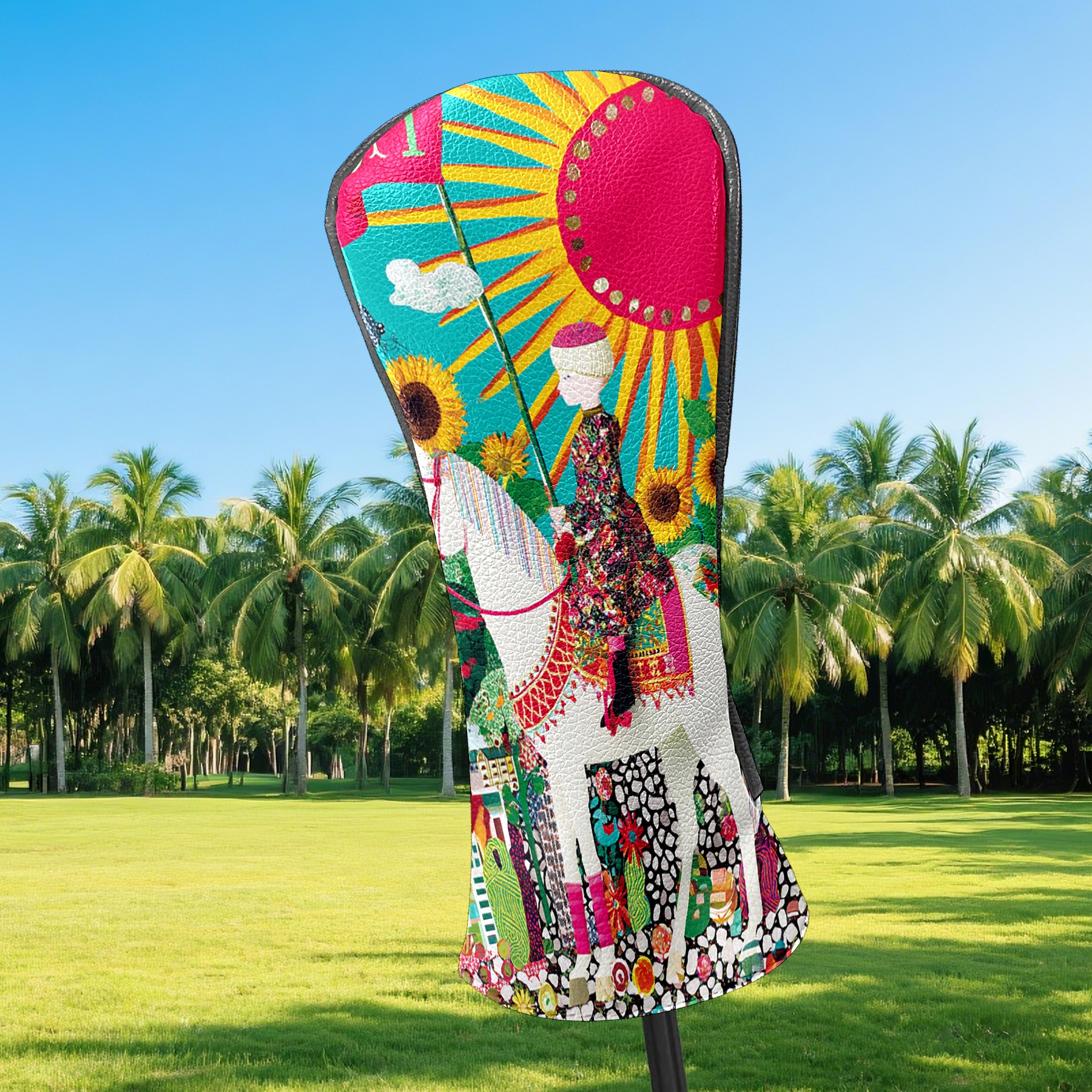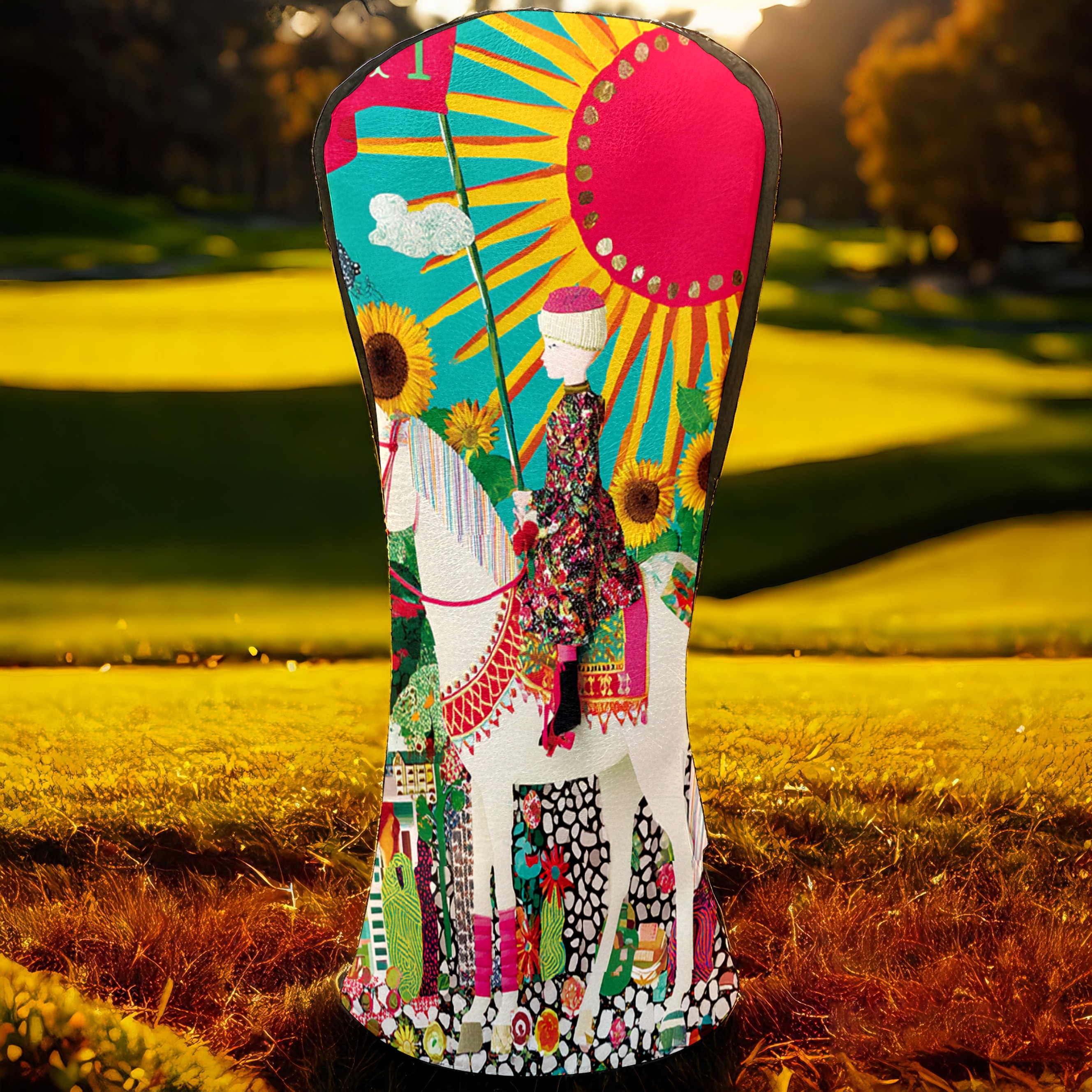Golf Head Covers Vibrant Sun Tarot for Driver & Fairway Woods | Waterproof PU Leather & Plush Lining | Stylish Gift for Men/Women