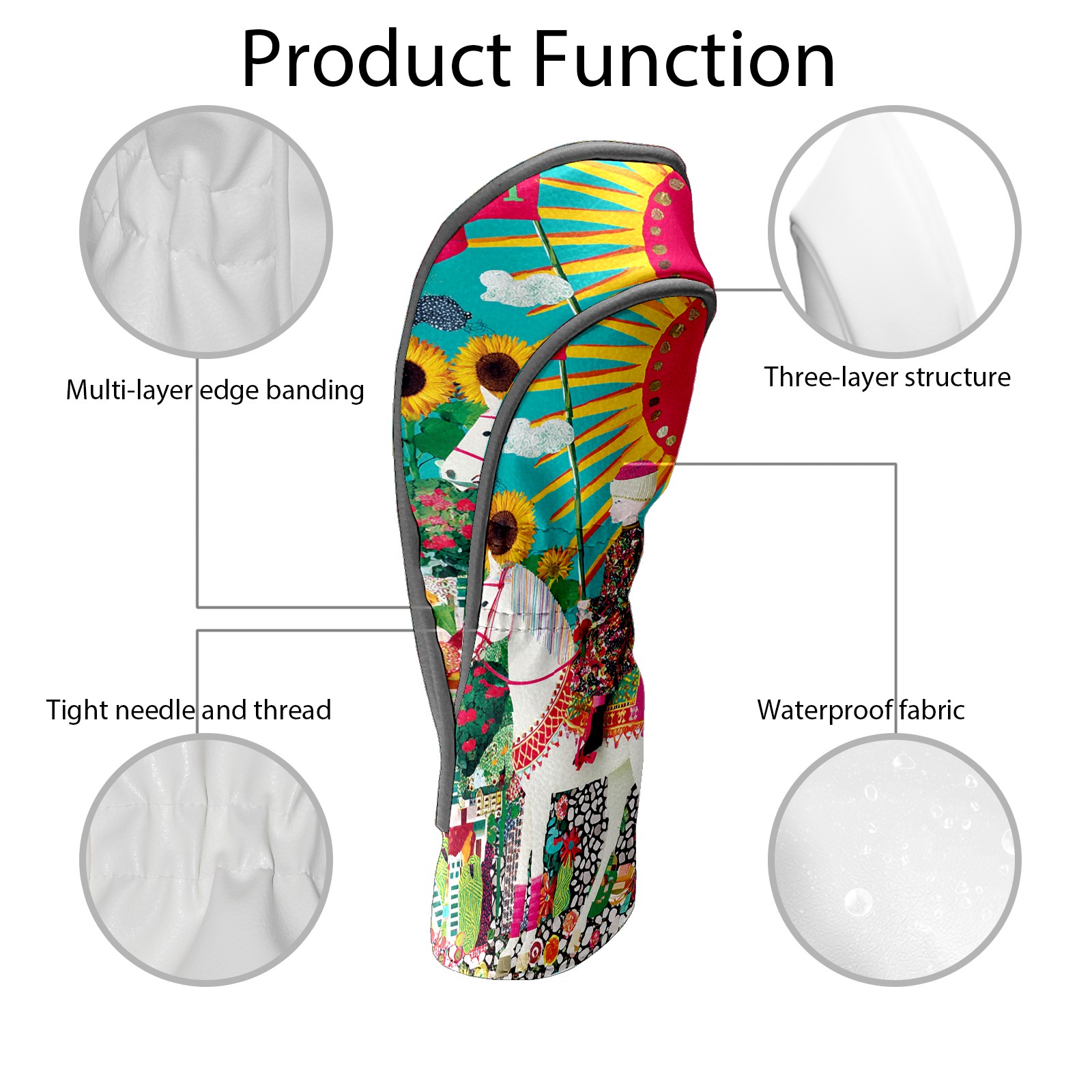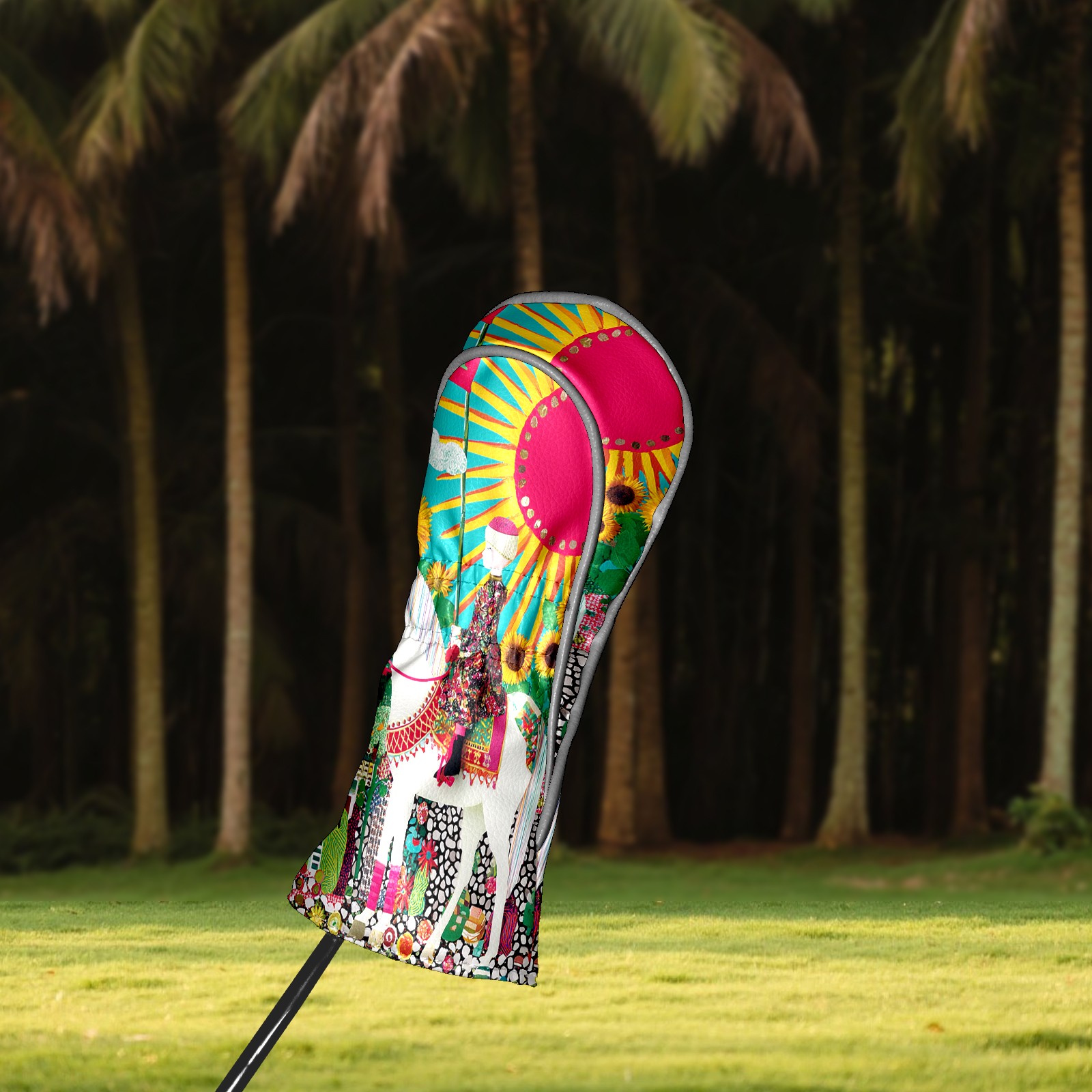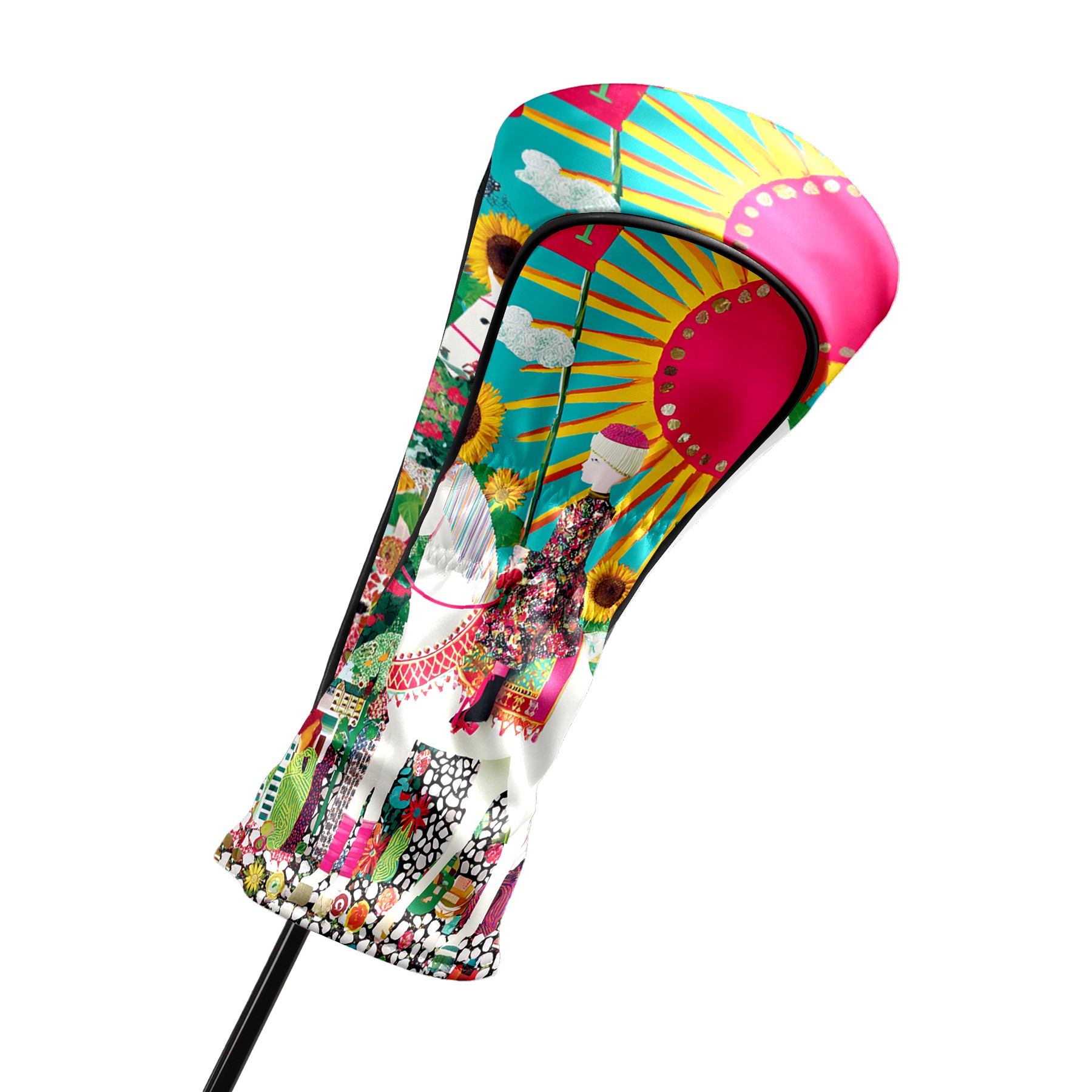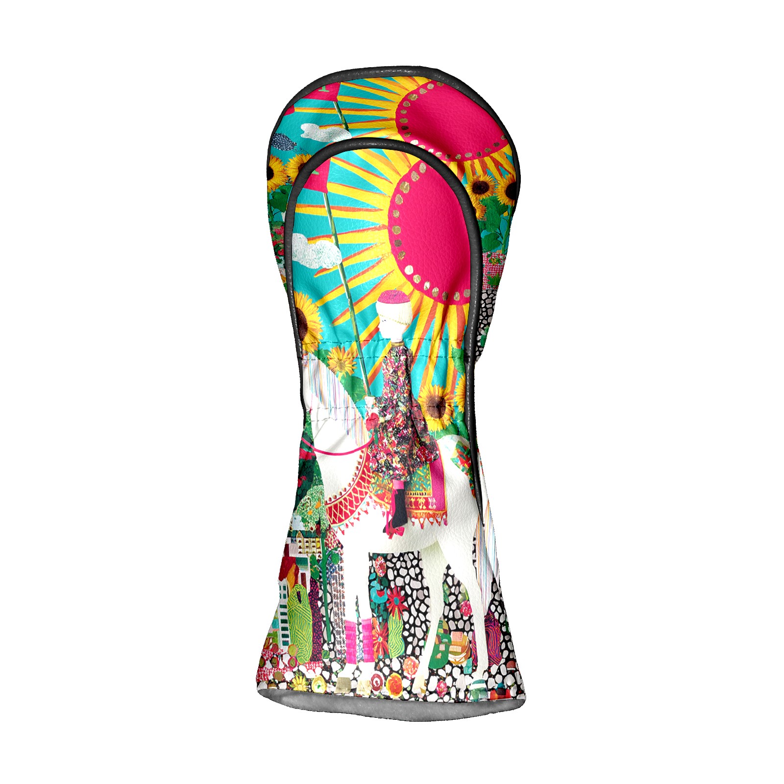 Golf Head Covers Vibrant Sun Tarot for Driver & Fairway Woods | Waterproof PU Leather & Plush Lining | Stylish Gift for Men/Women