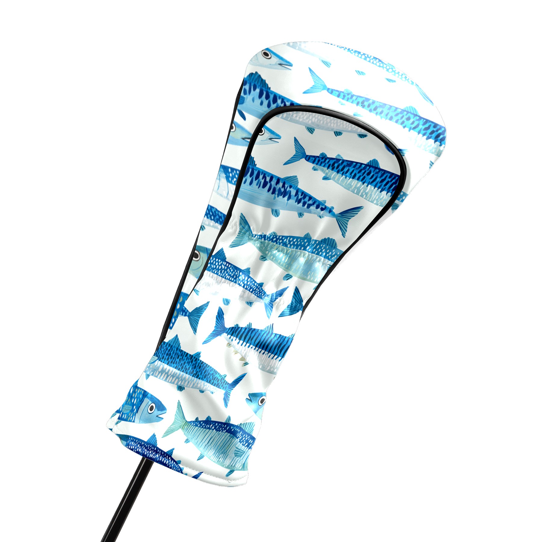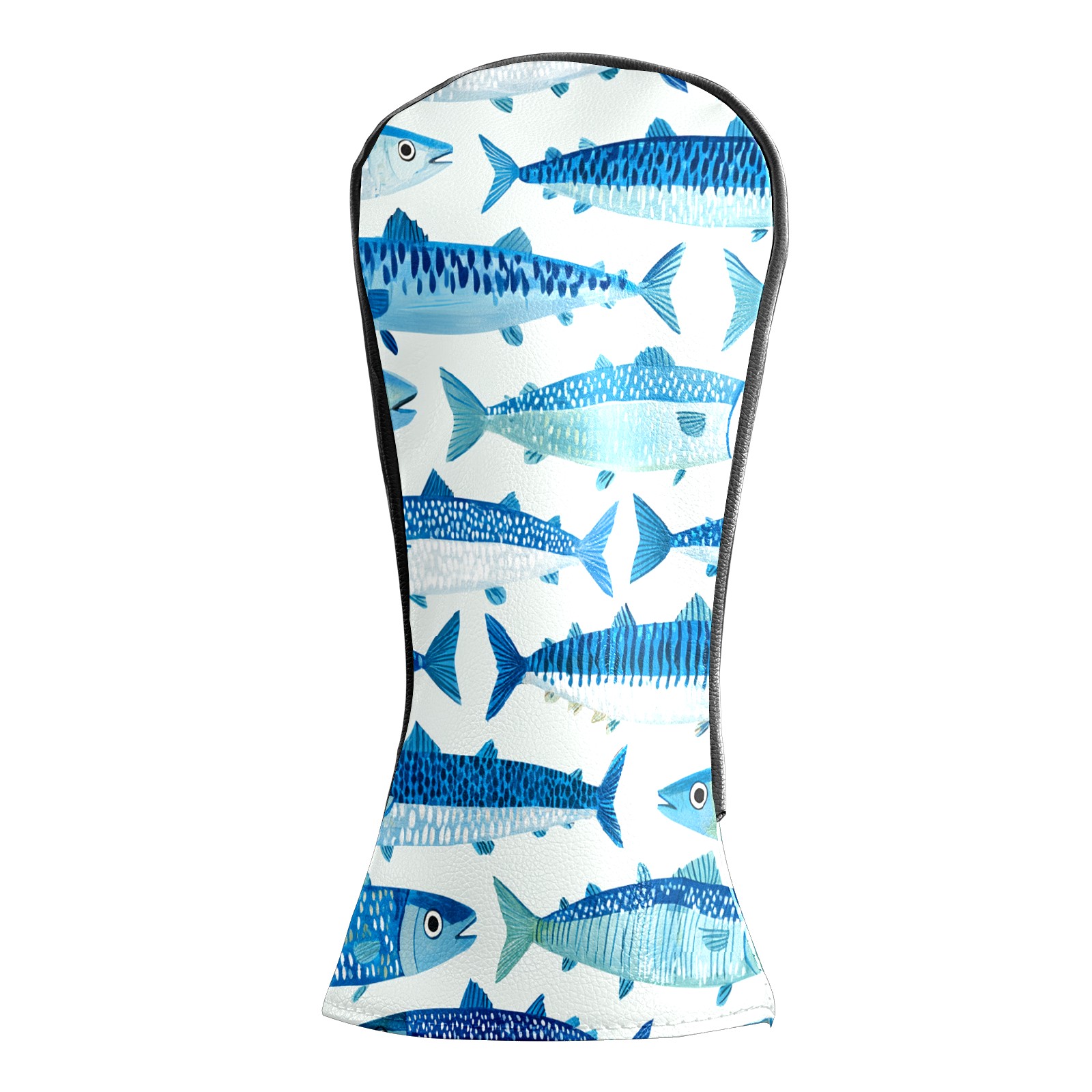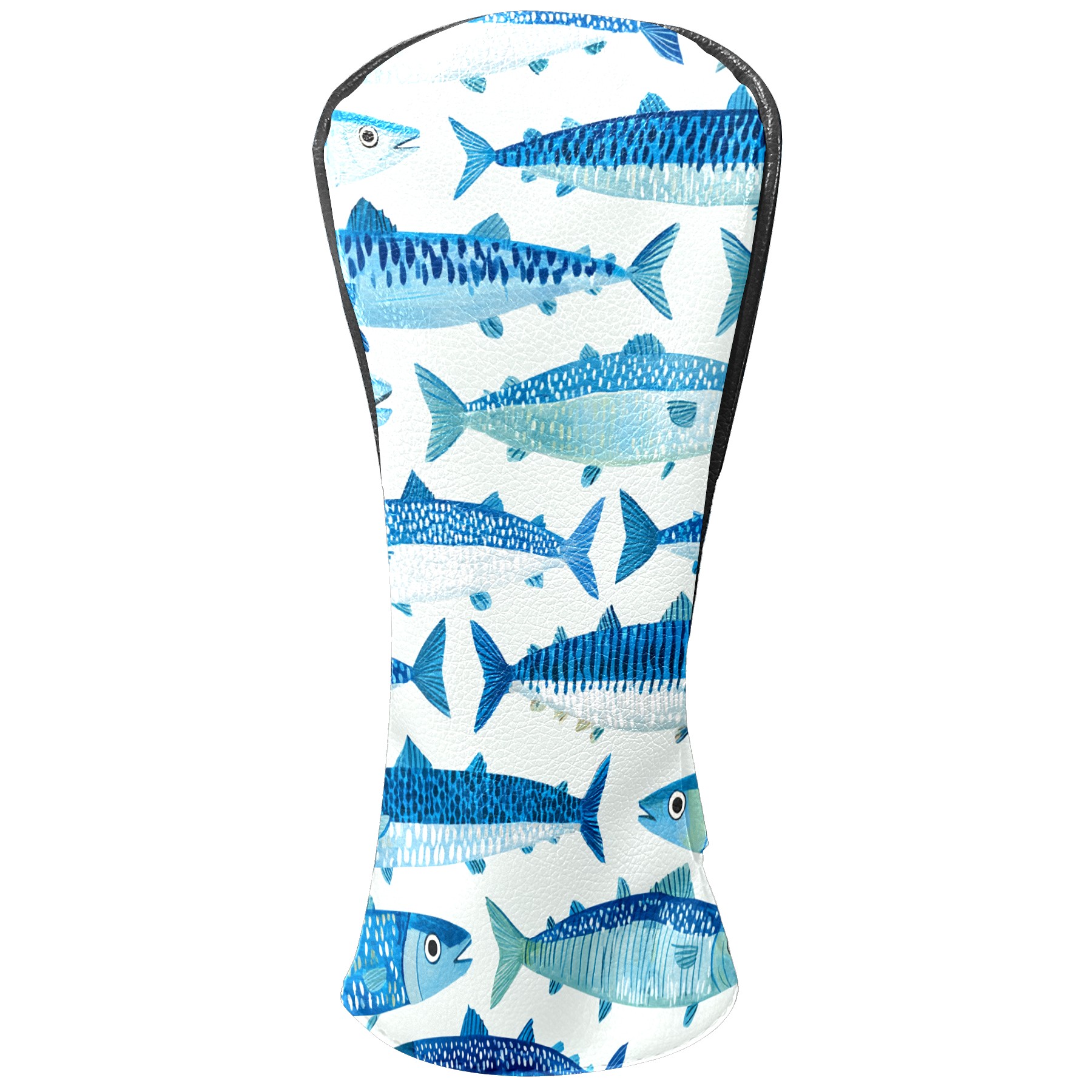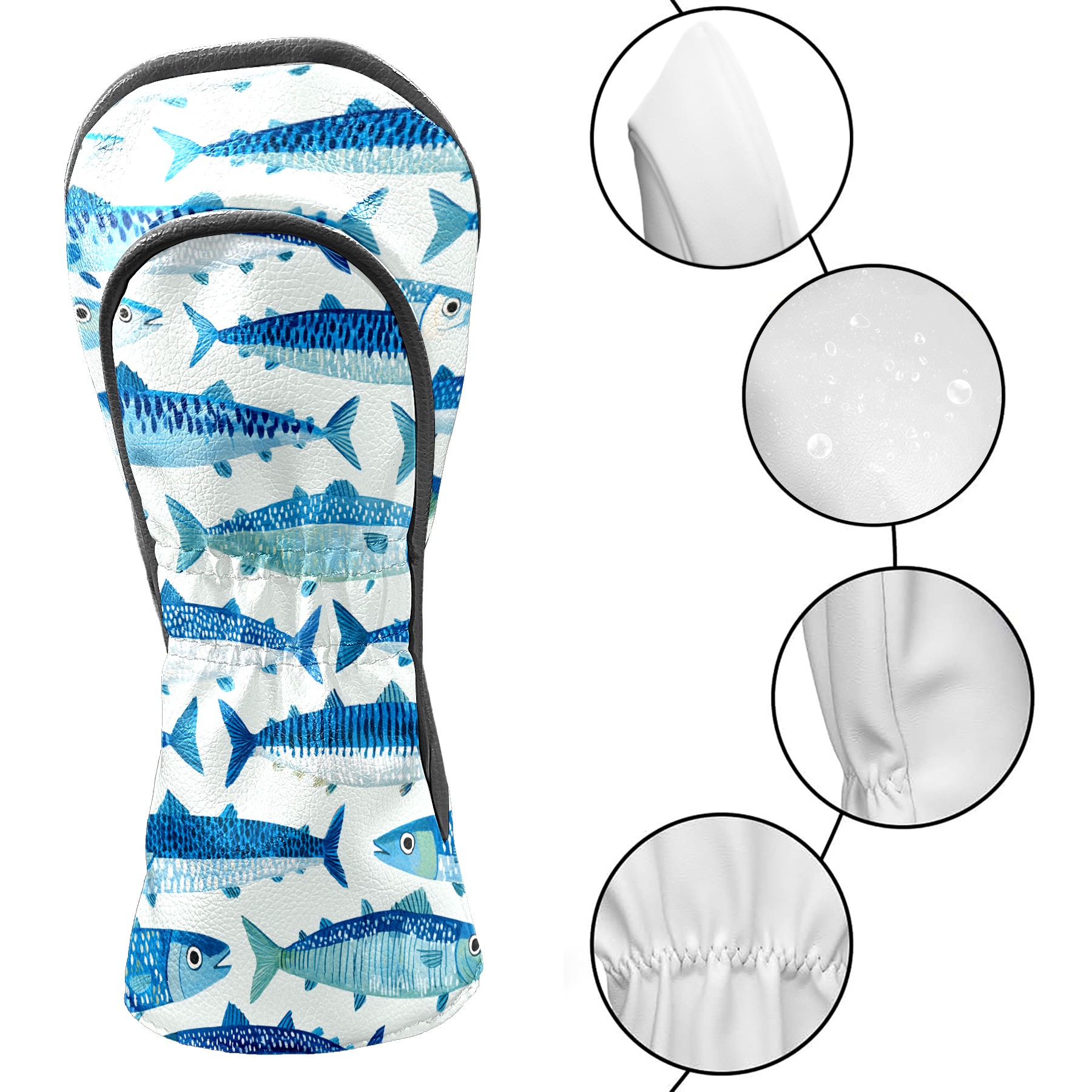 Golf Head Covers Simple Fish Blue for Driver & Fairway Woods | Waterproof PU Leather & Plush Lining | Stylish Gift for Men/Women
