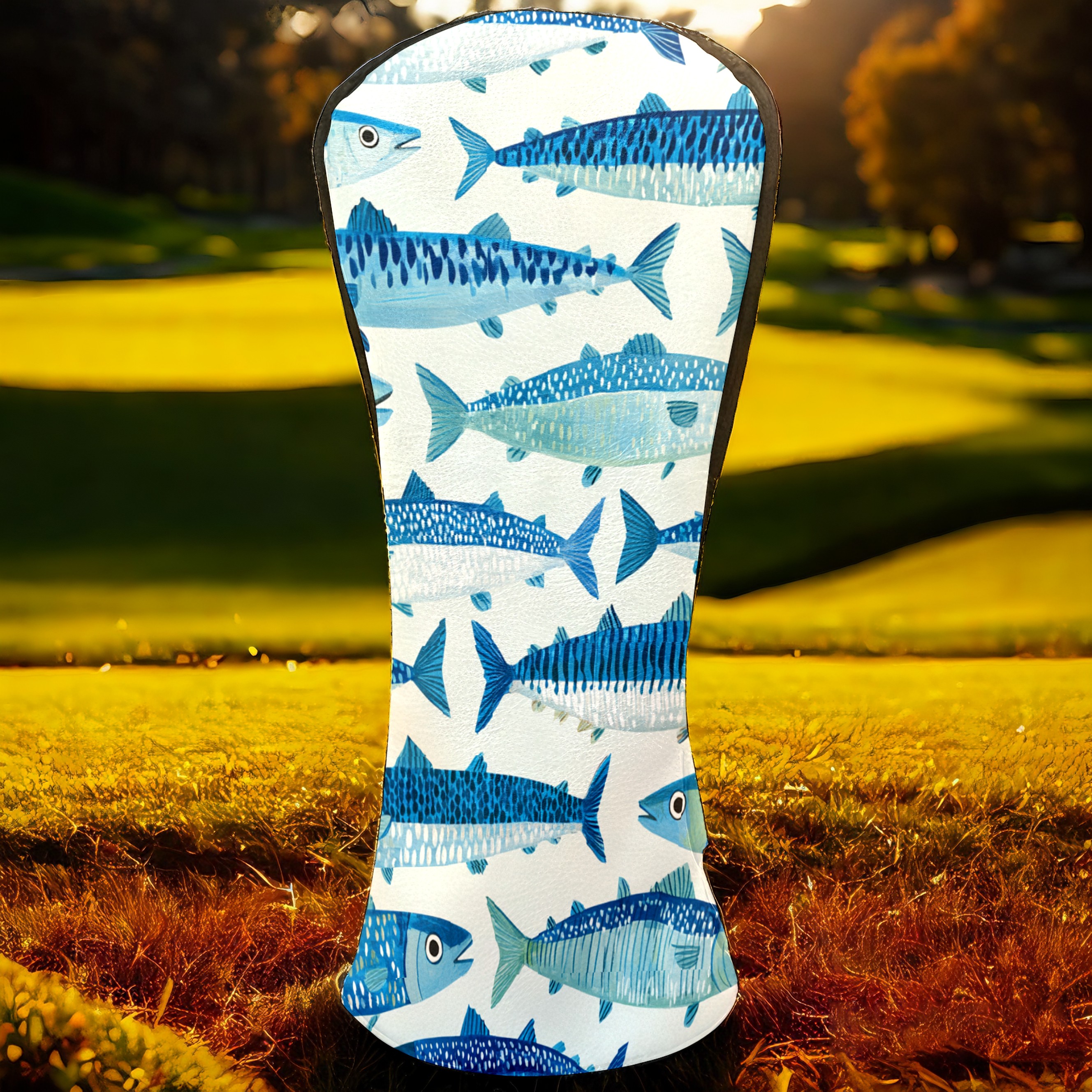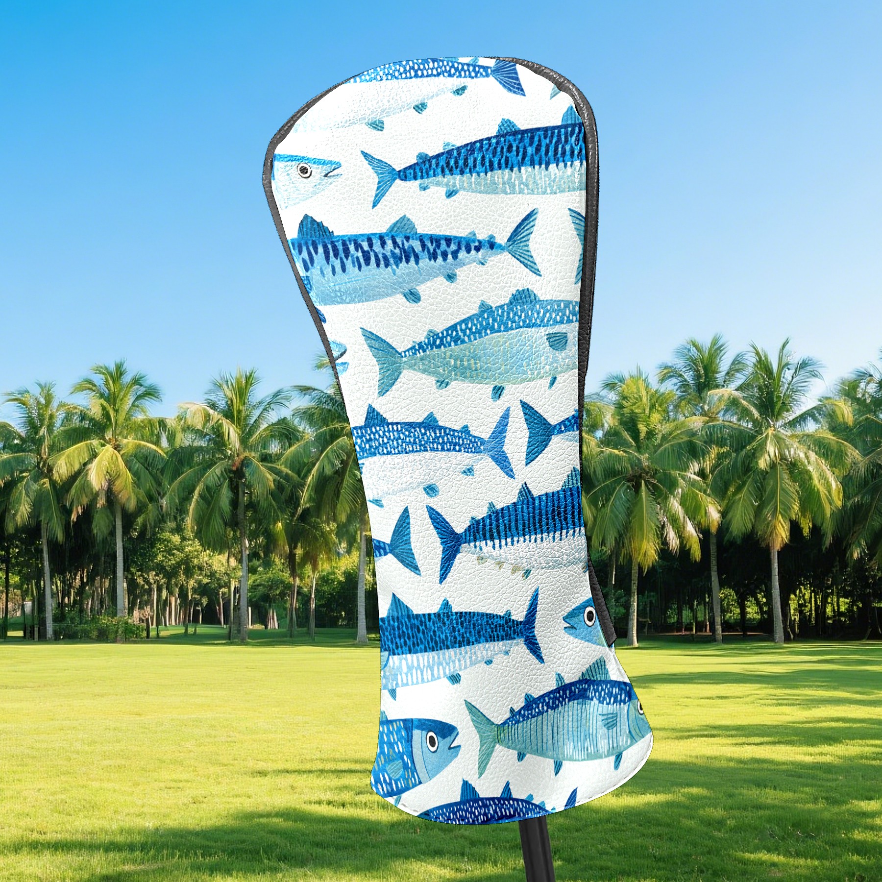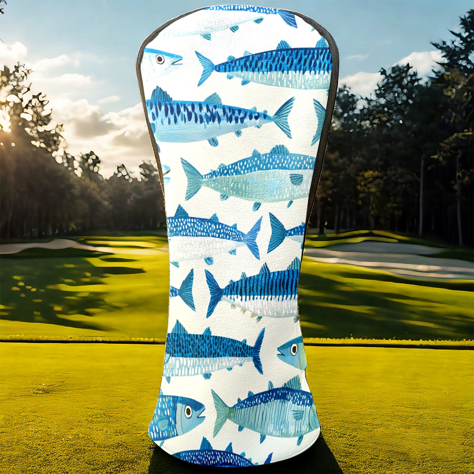 Golf Head Covers Simple Fish Blue for Driver & Fairway Woods | Waterproof PU Leather & Plush Lining | Stylish Gift for Men/Women
