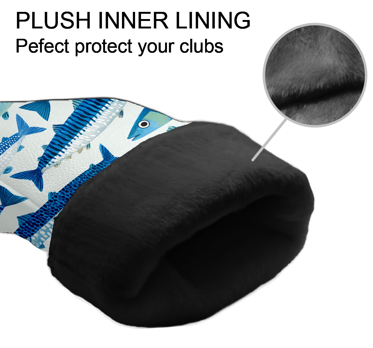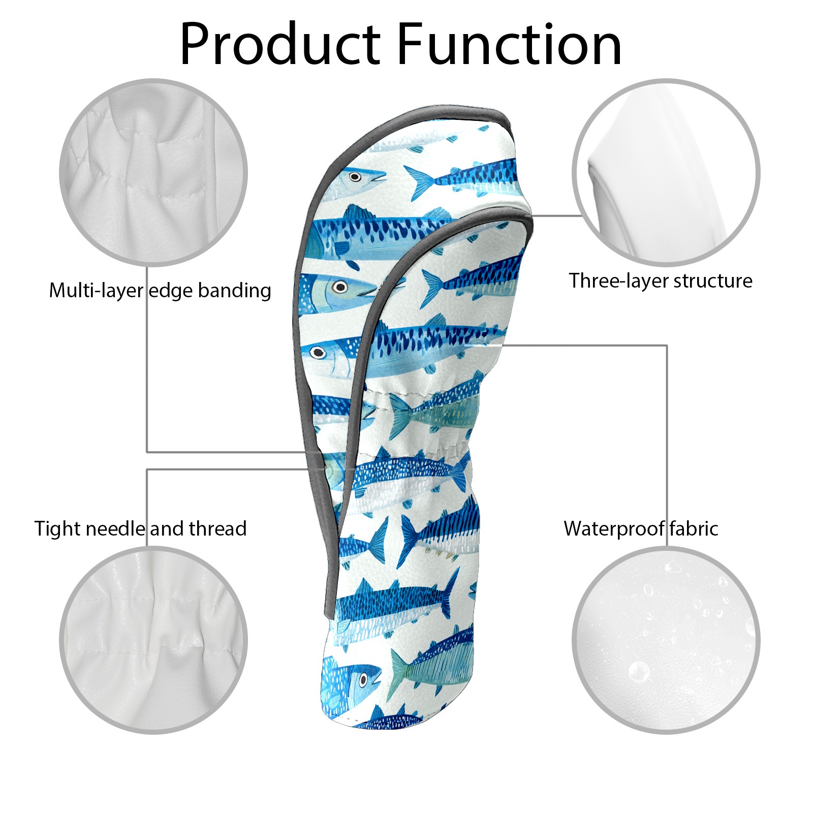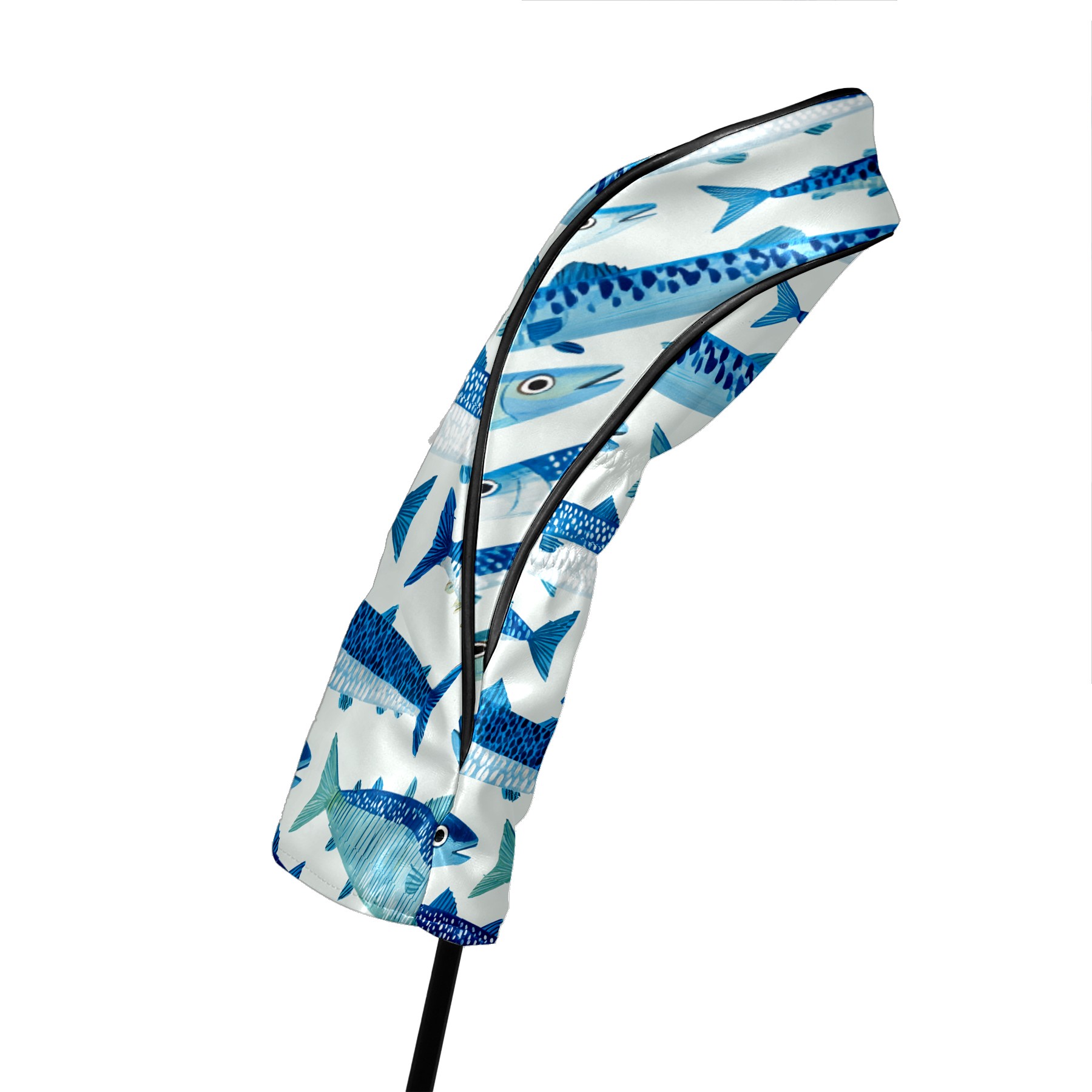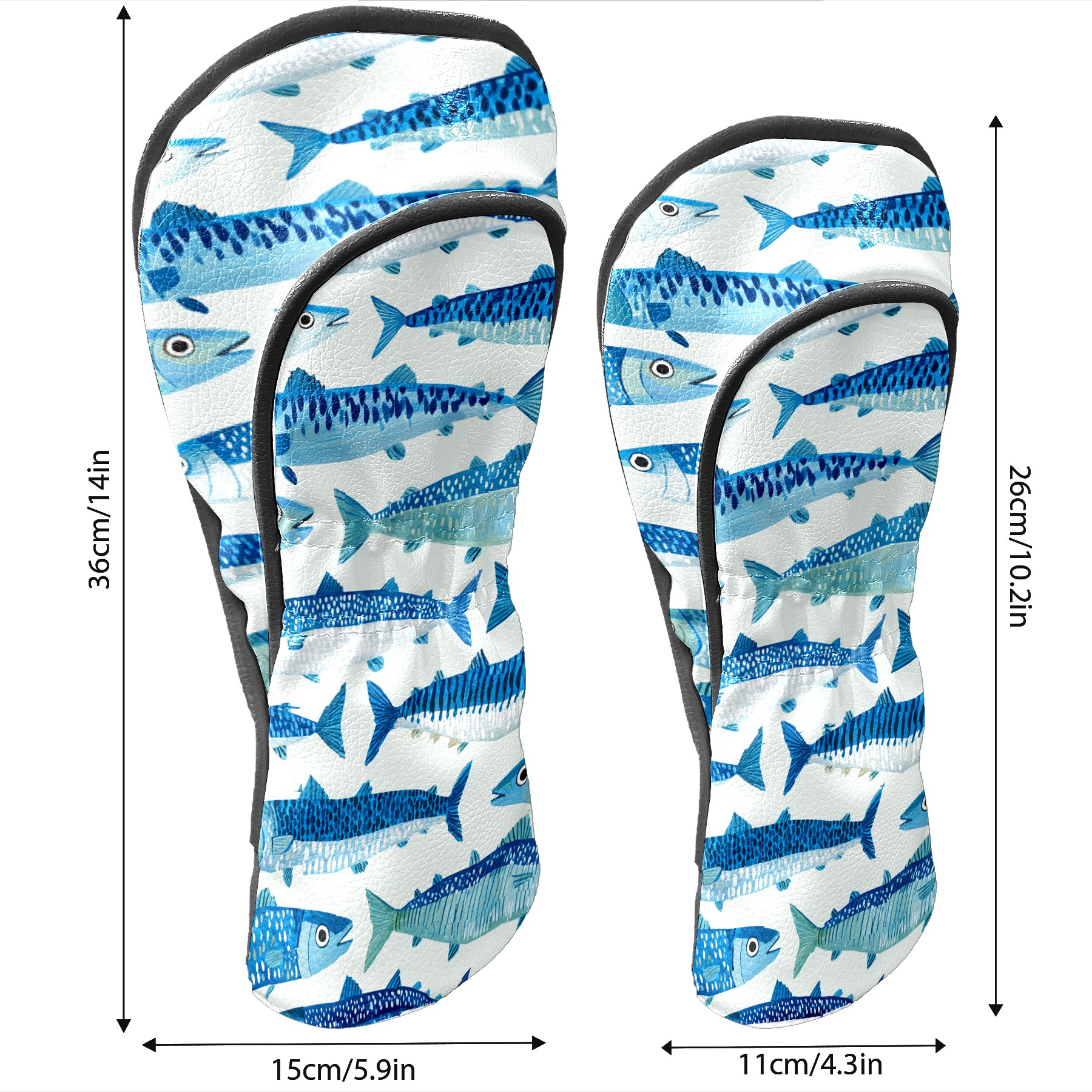 Golf Head Covers Simple Fish Blue for Driver & Fairway Woods | Waterproof PU Leather & Plush Lining | Stylish Gift for Men/Women