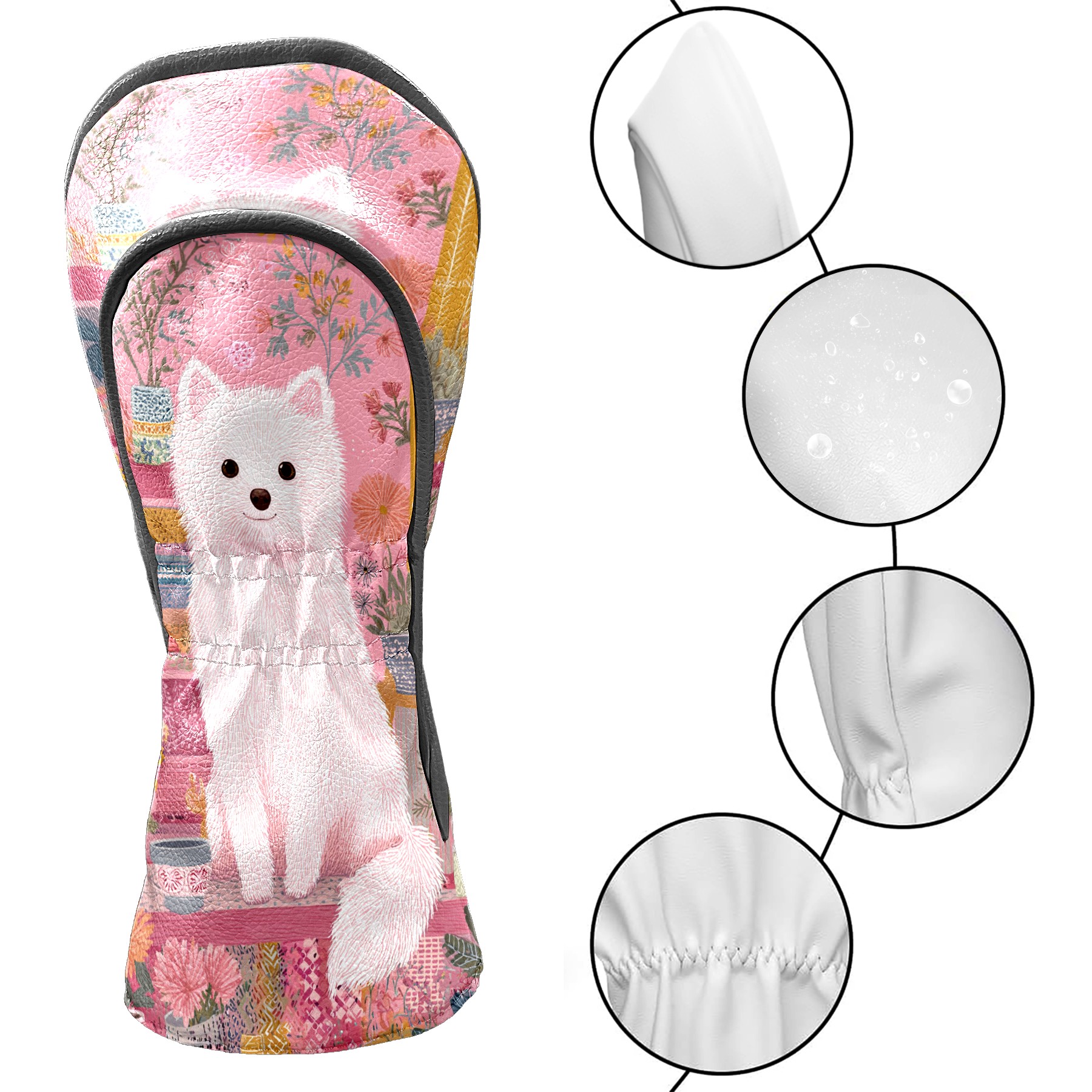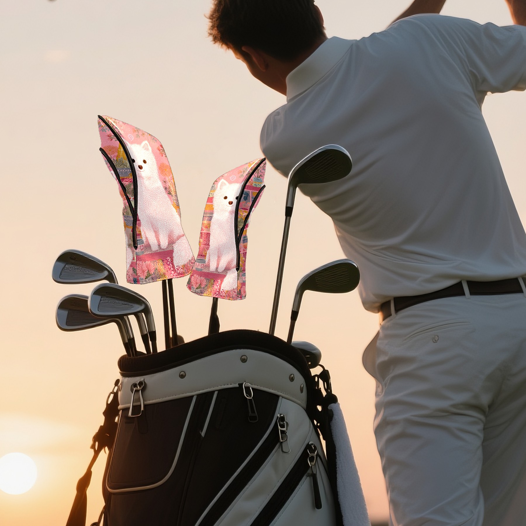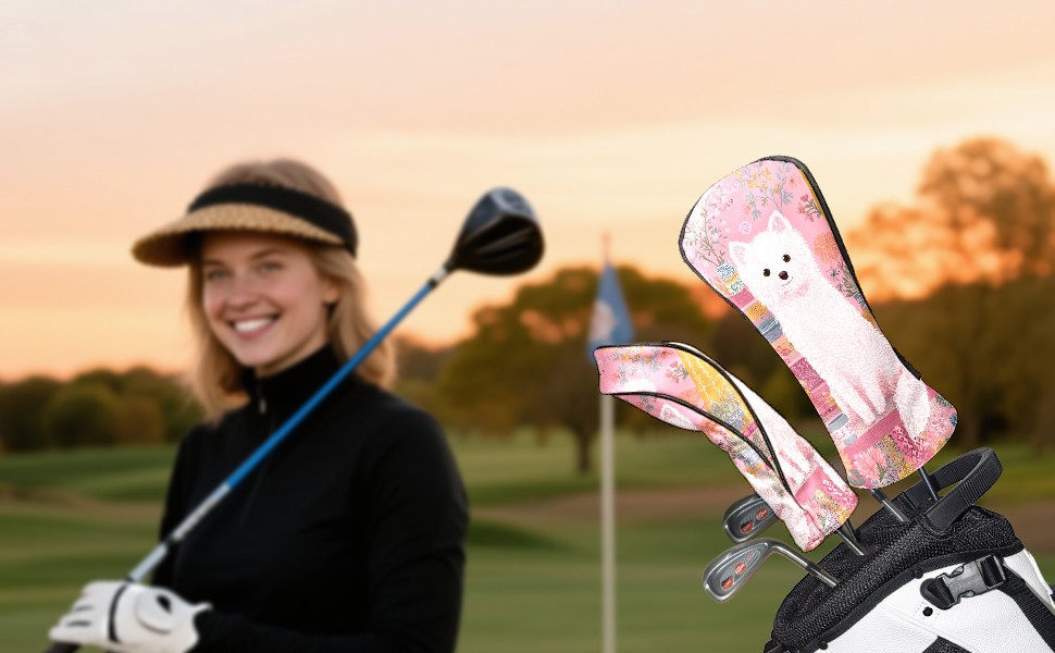 Golf Head Covers Cute Puppy Pink for Driver & Fairway Woods | Waterproof PU Leather & Plush Lining | Stylish Gift for Men/Women