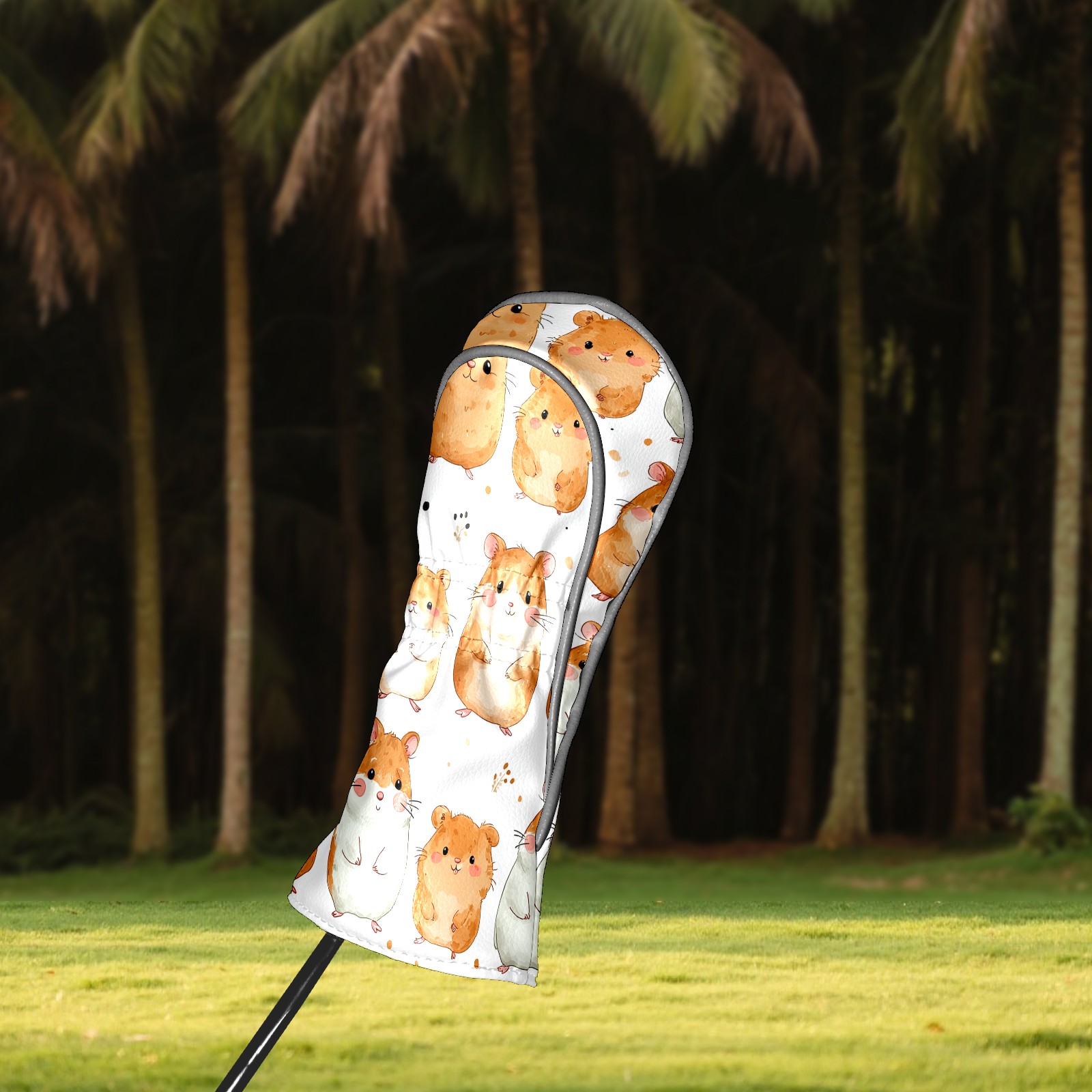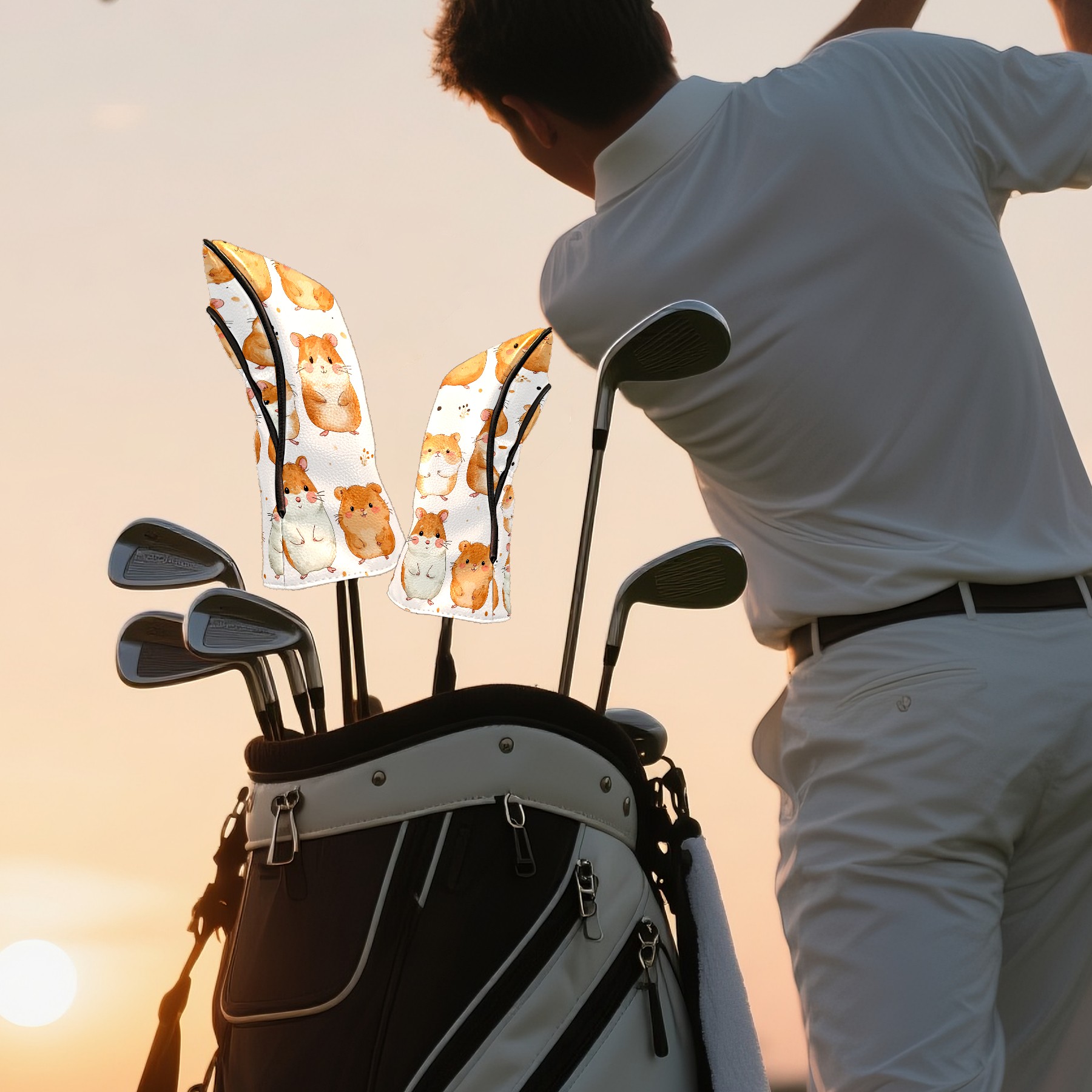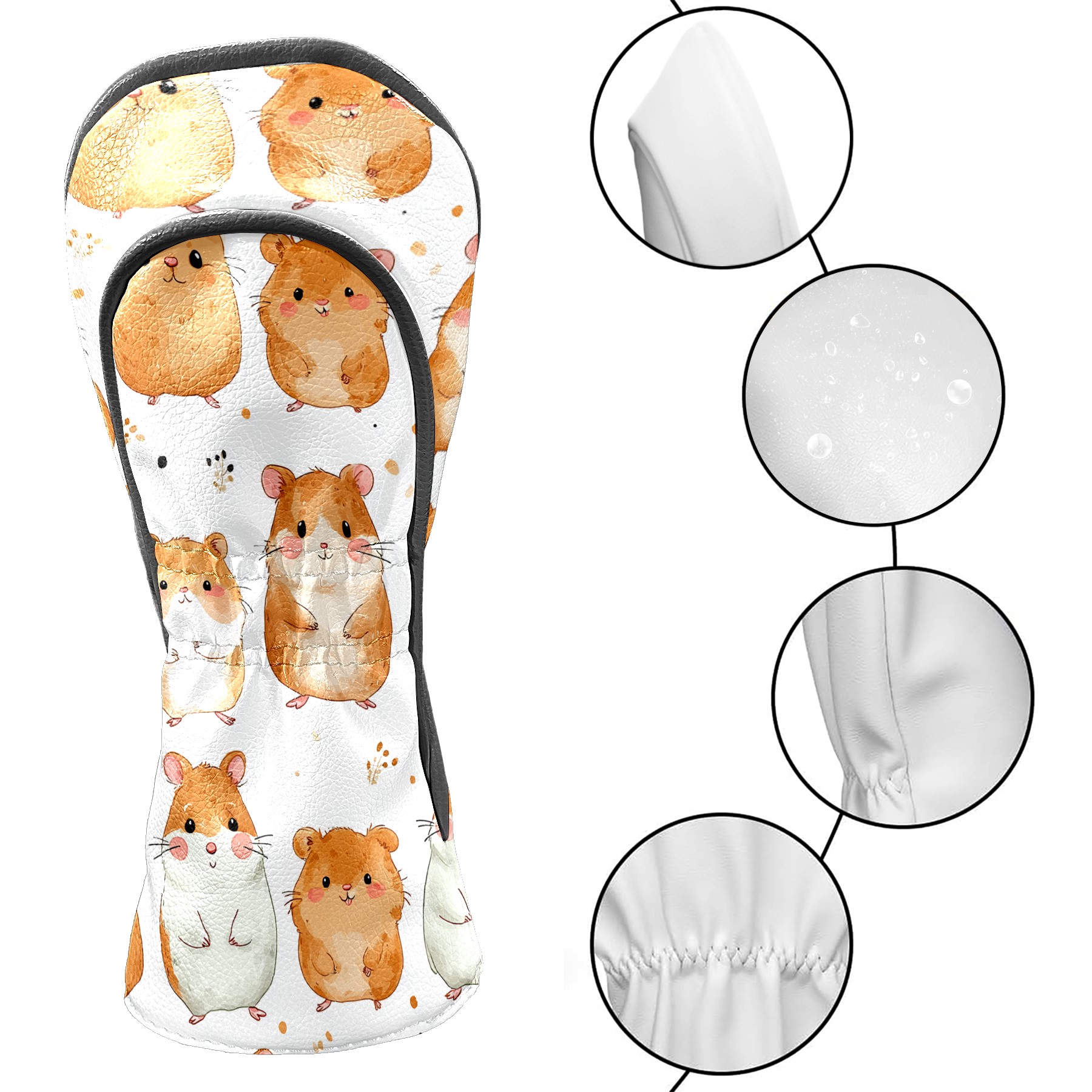 Golf Head Covers Cute Badger Beige for Driver & Fairway Woods | Waterproof PU Leather & Plush Lining | Stylish Gift for Men/Women