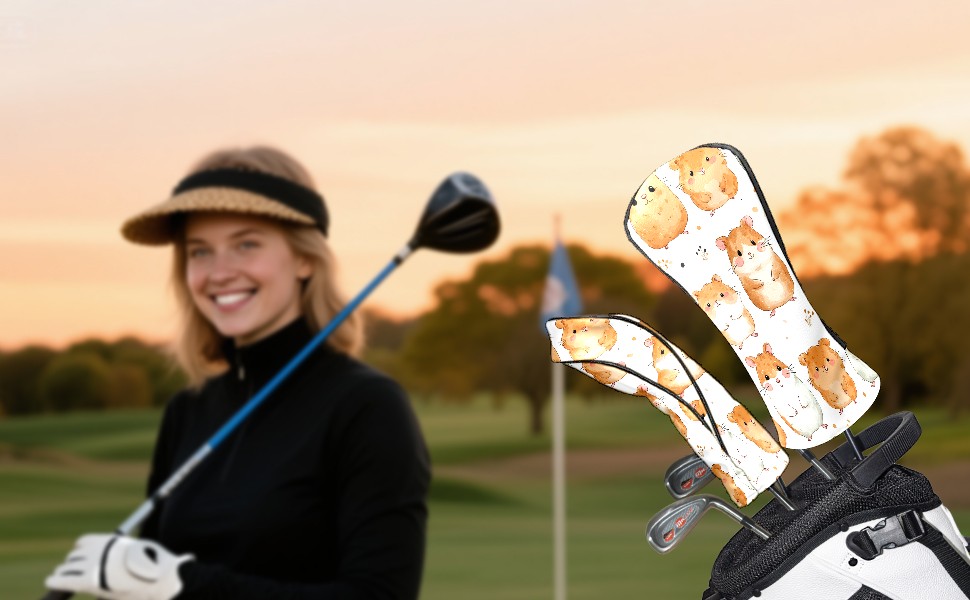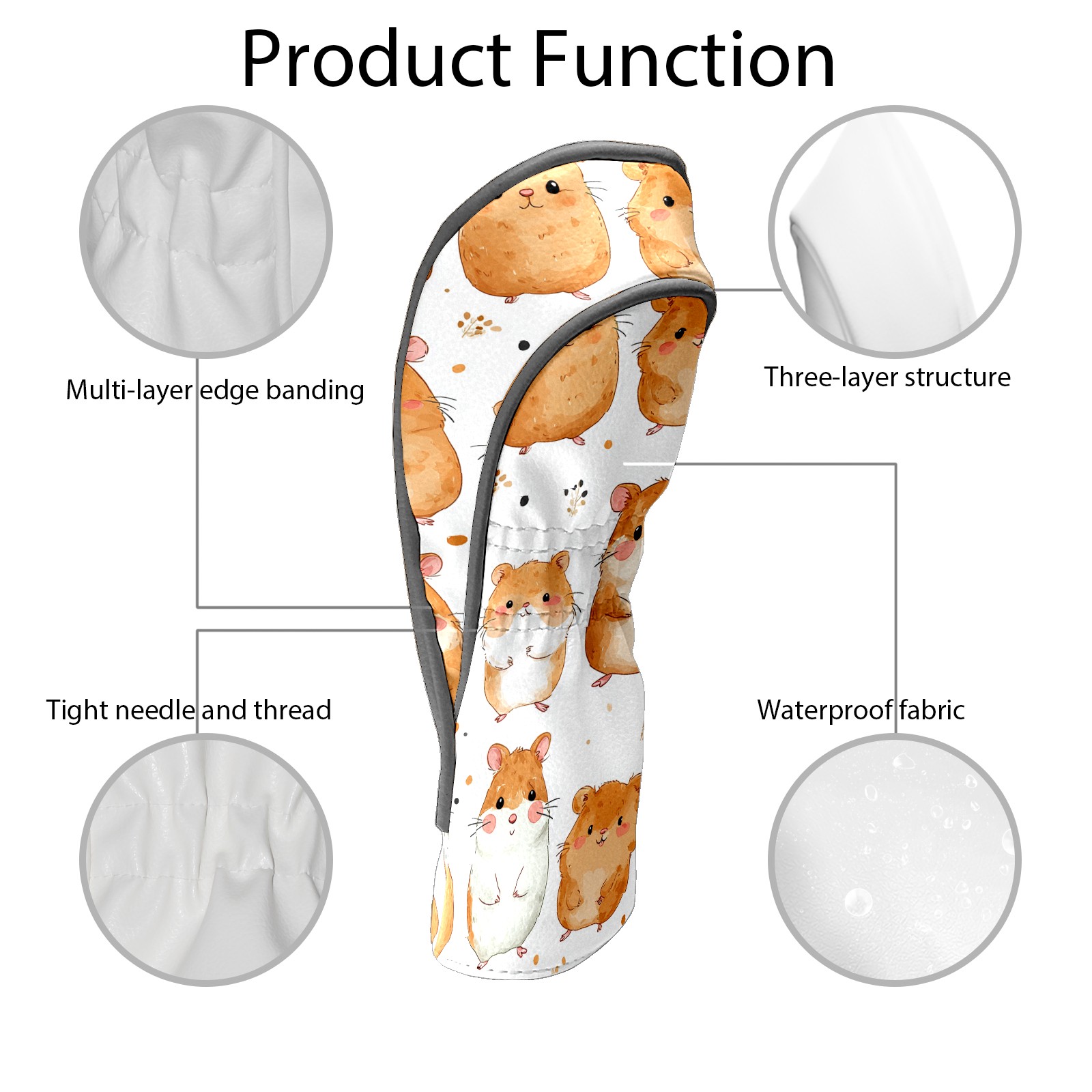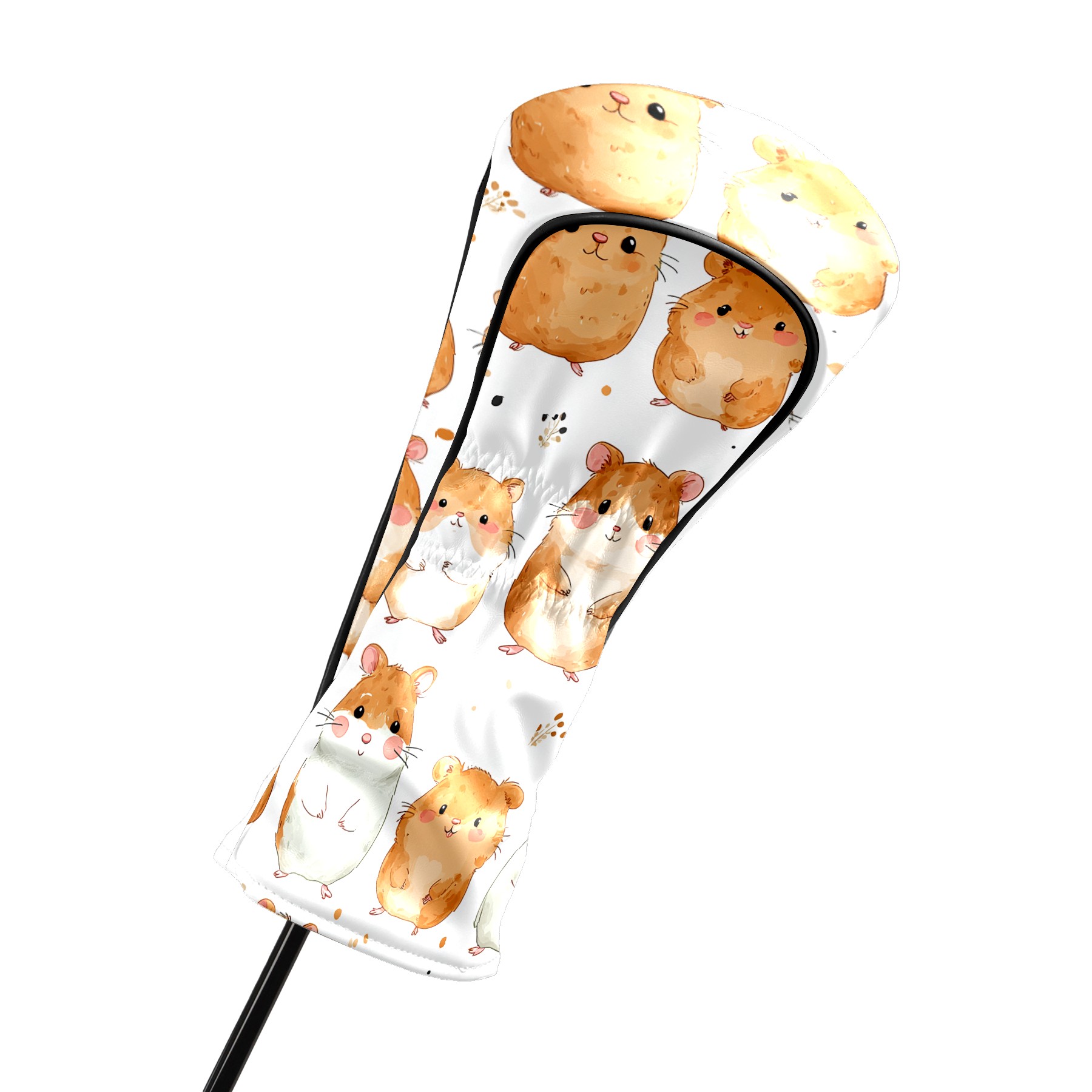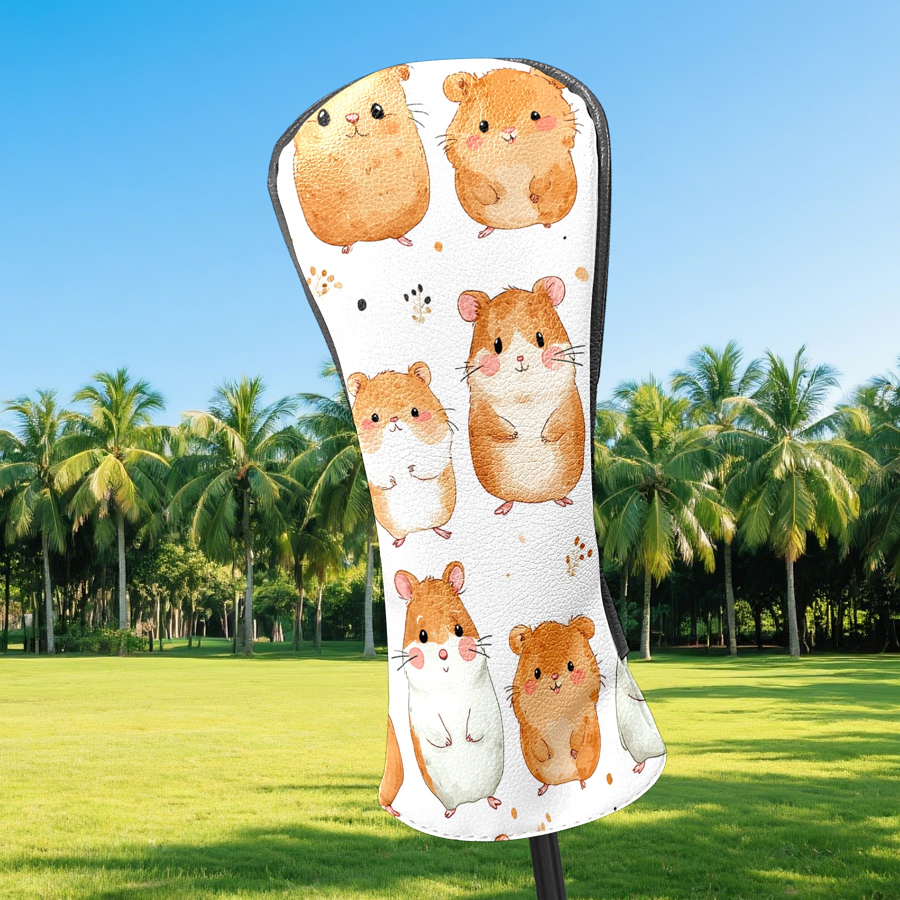 Golf Head Covers Cute Badger Beige for Driver & Fairway Woods | Waterproof PU Leather & Plush Lining | Stylish Gift for Men/Women