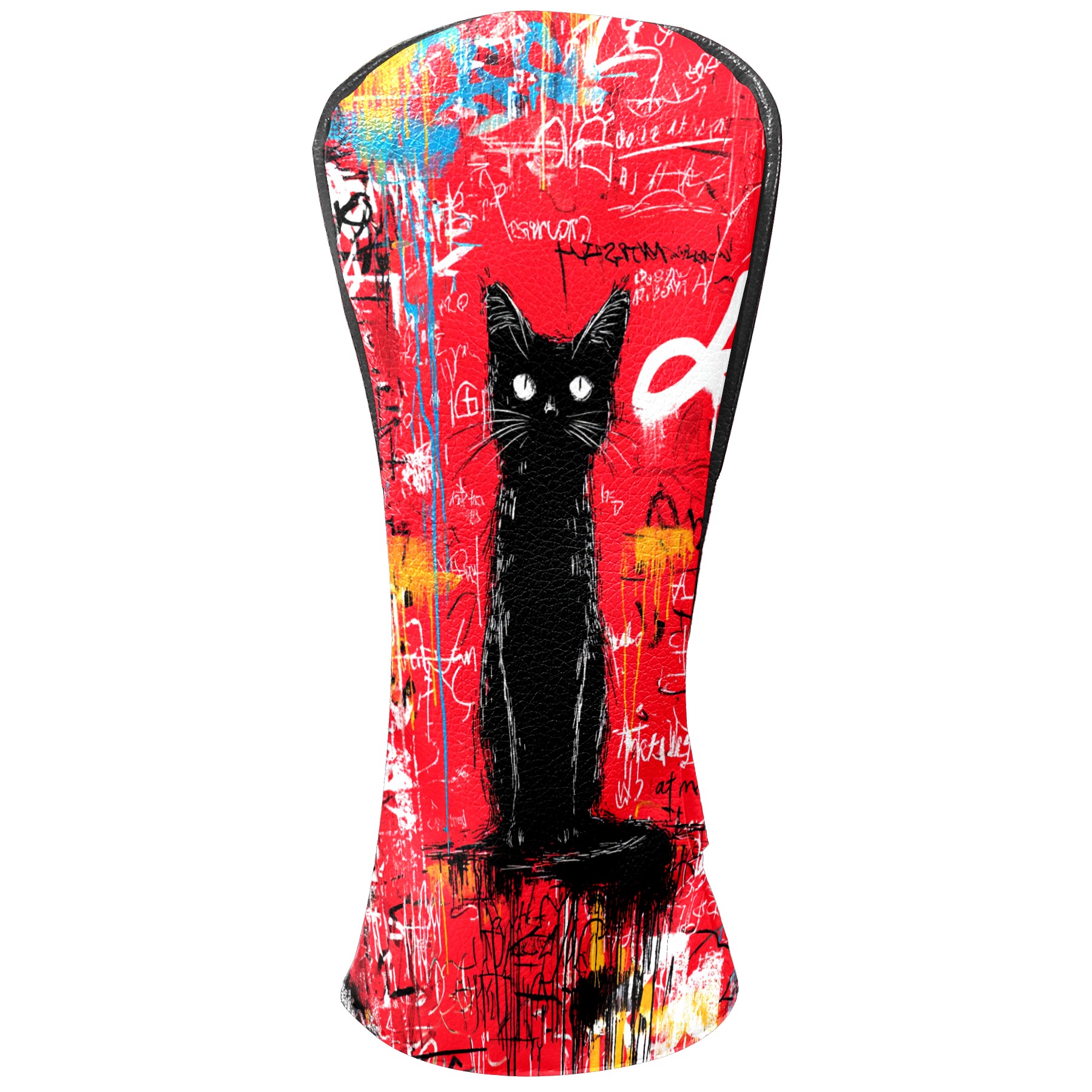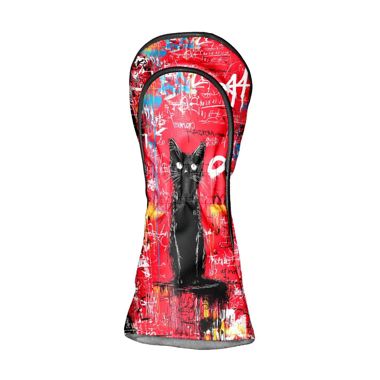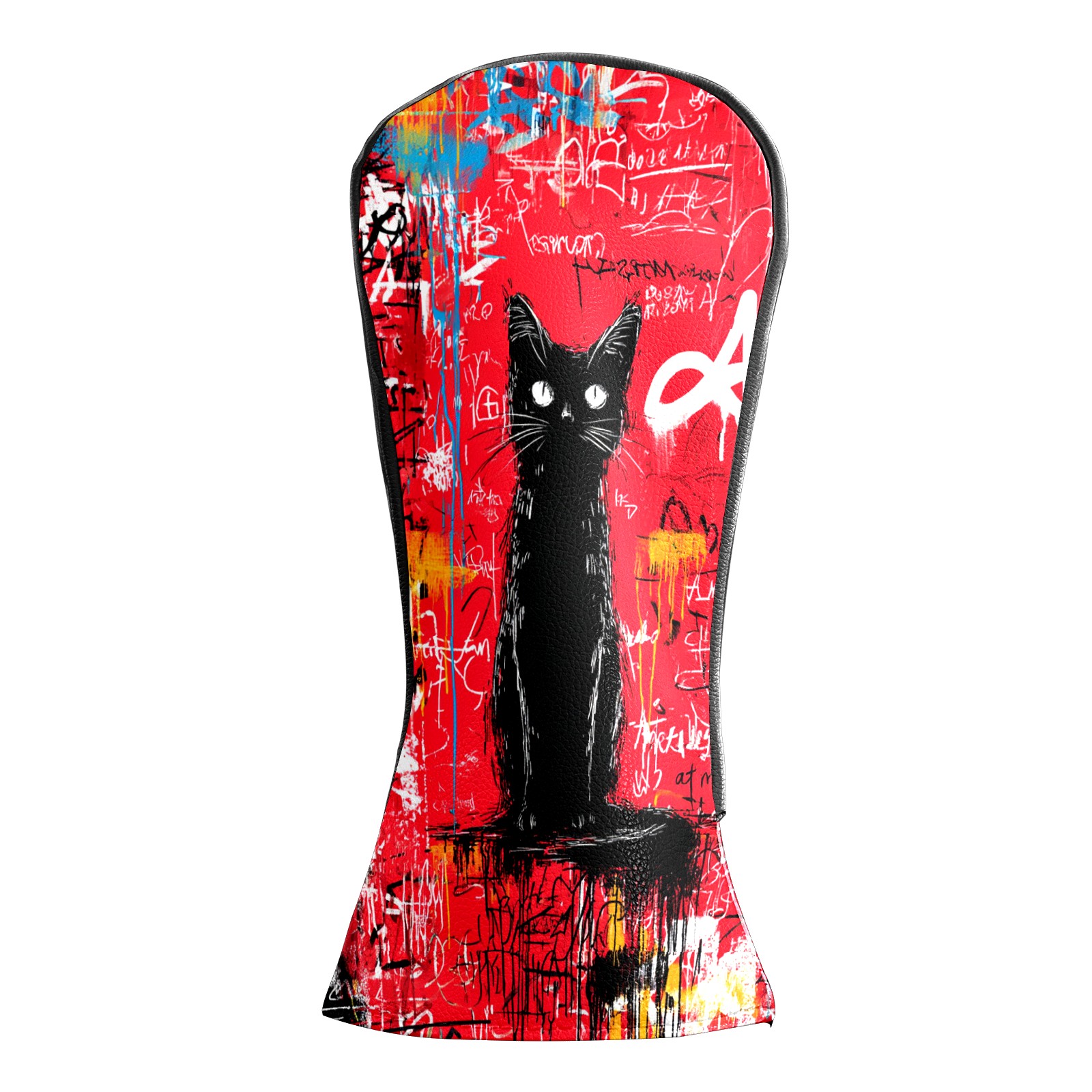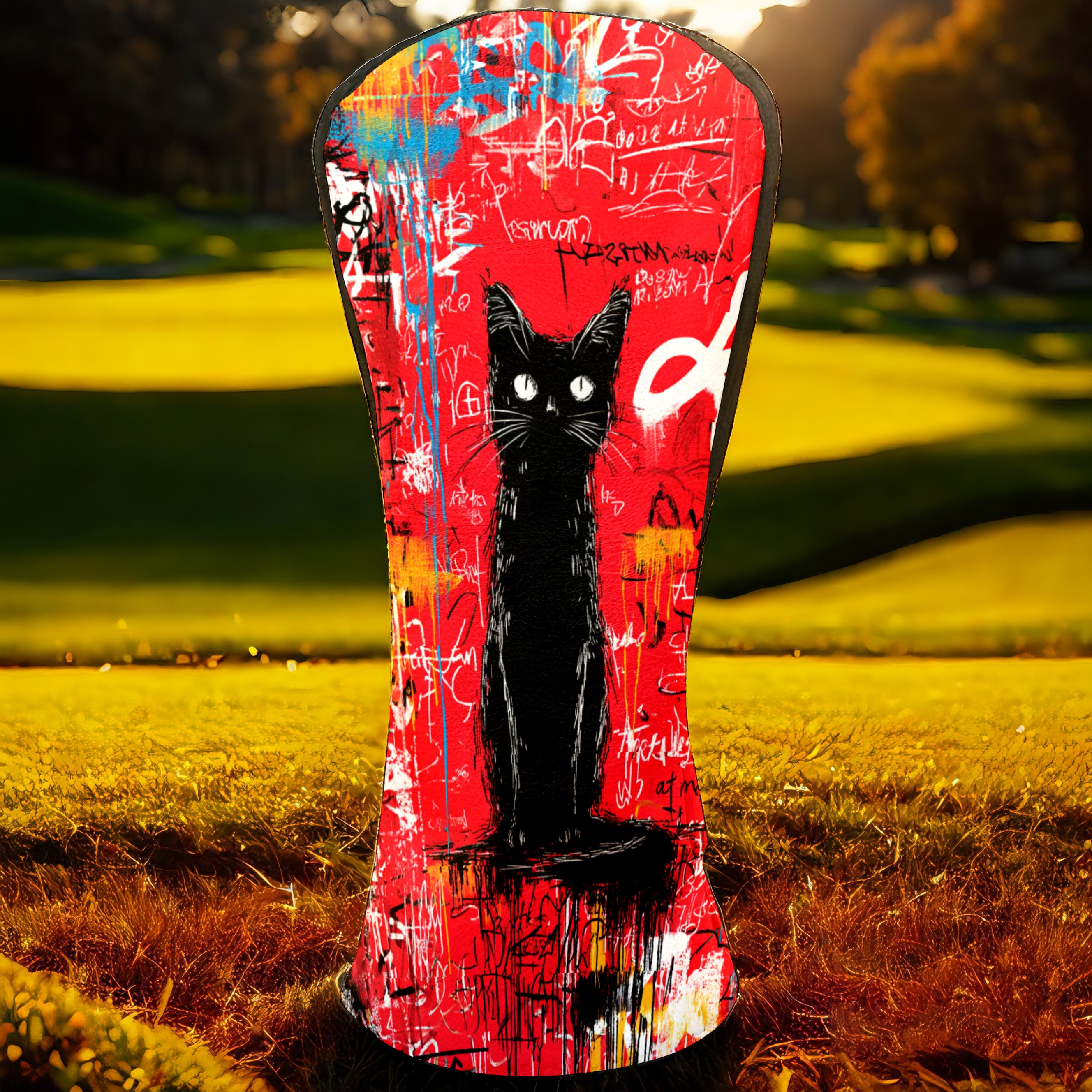 Golf Head Covers Artistic Black Cat Red for Driver & Fairway Woods | Waterproof PU Leather & Plush Lining | Stylish Gift for Men/Women