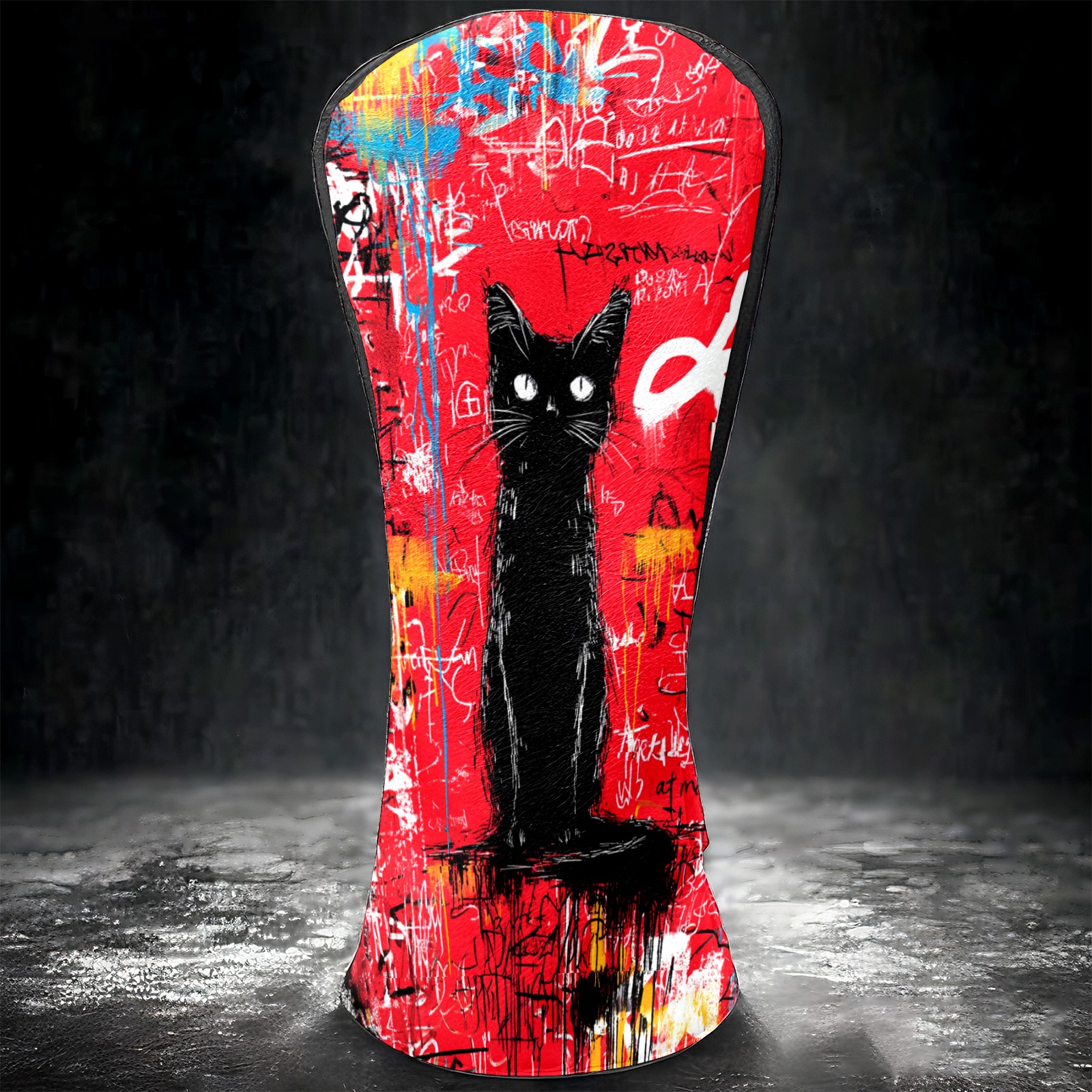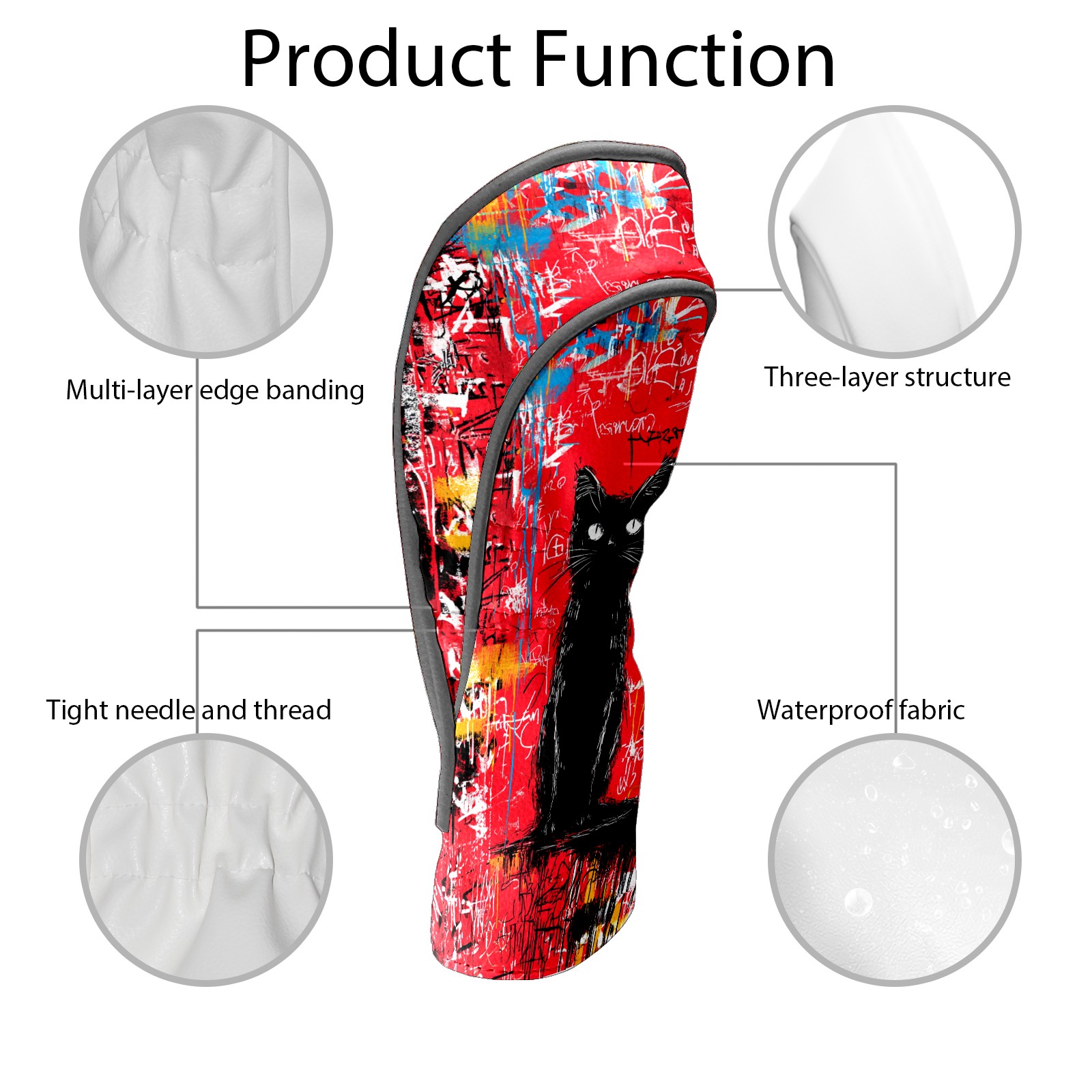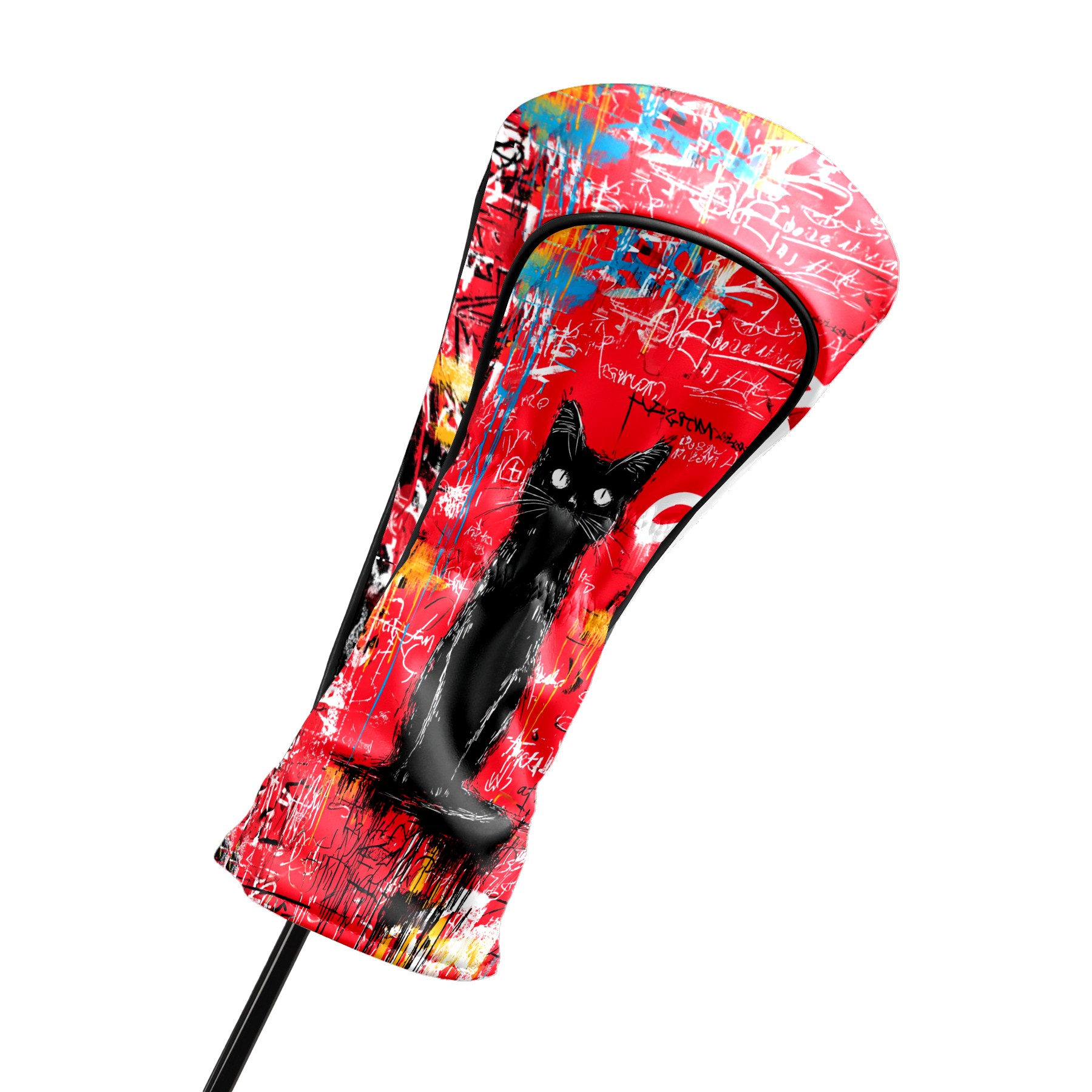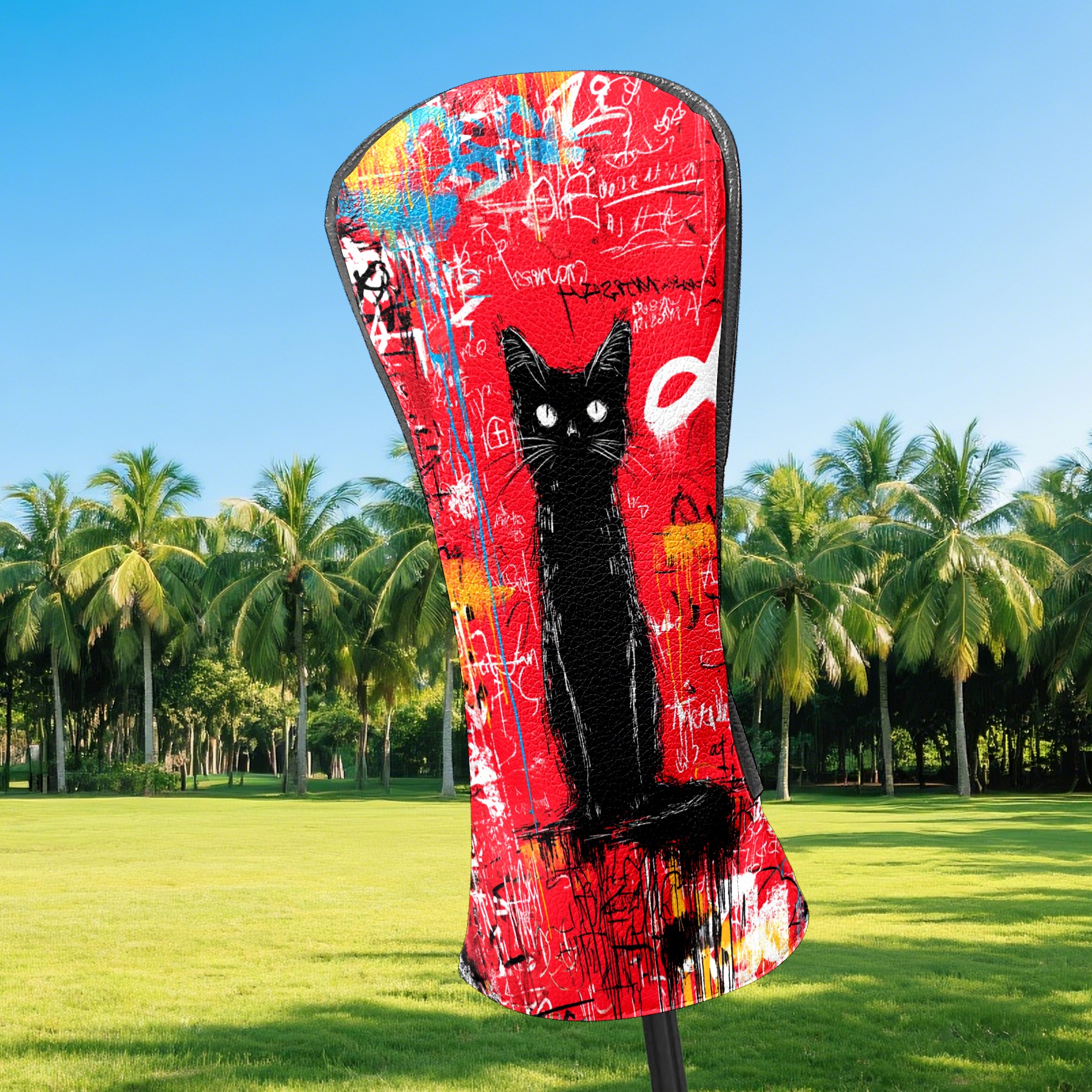 Golf Head Covers Artistic Black Cat Red for Driver & Fairway Woods | Waterproof PU Leather & Plush Lining | Stylish Gift for Men/Women