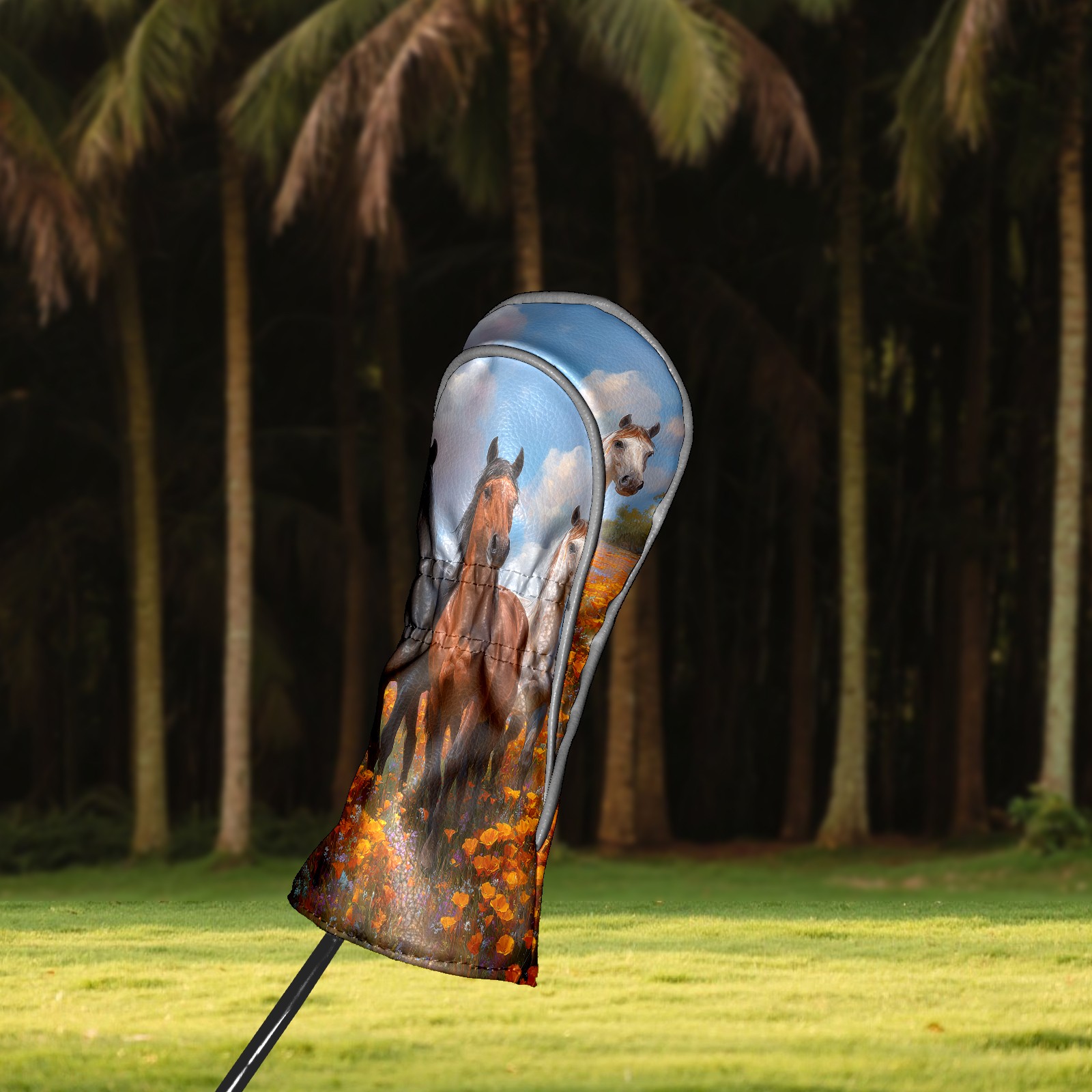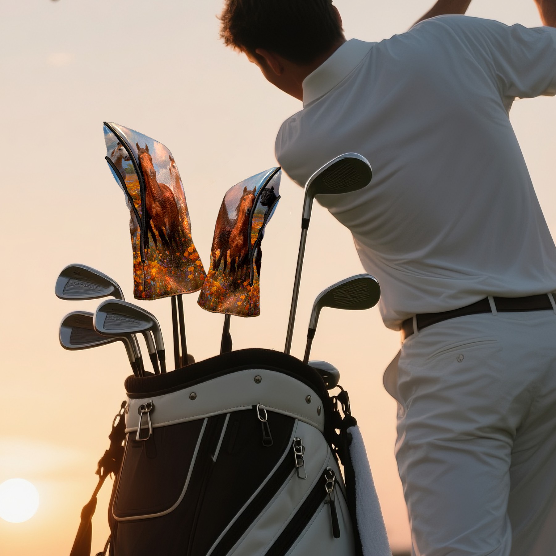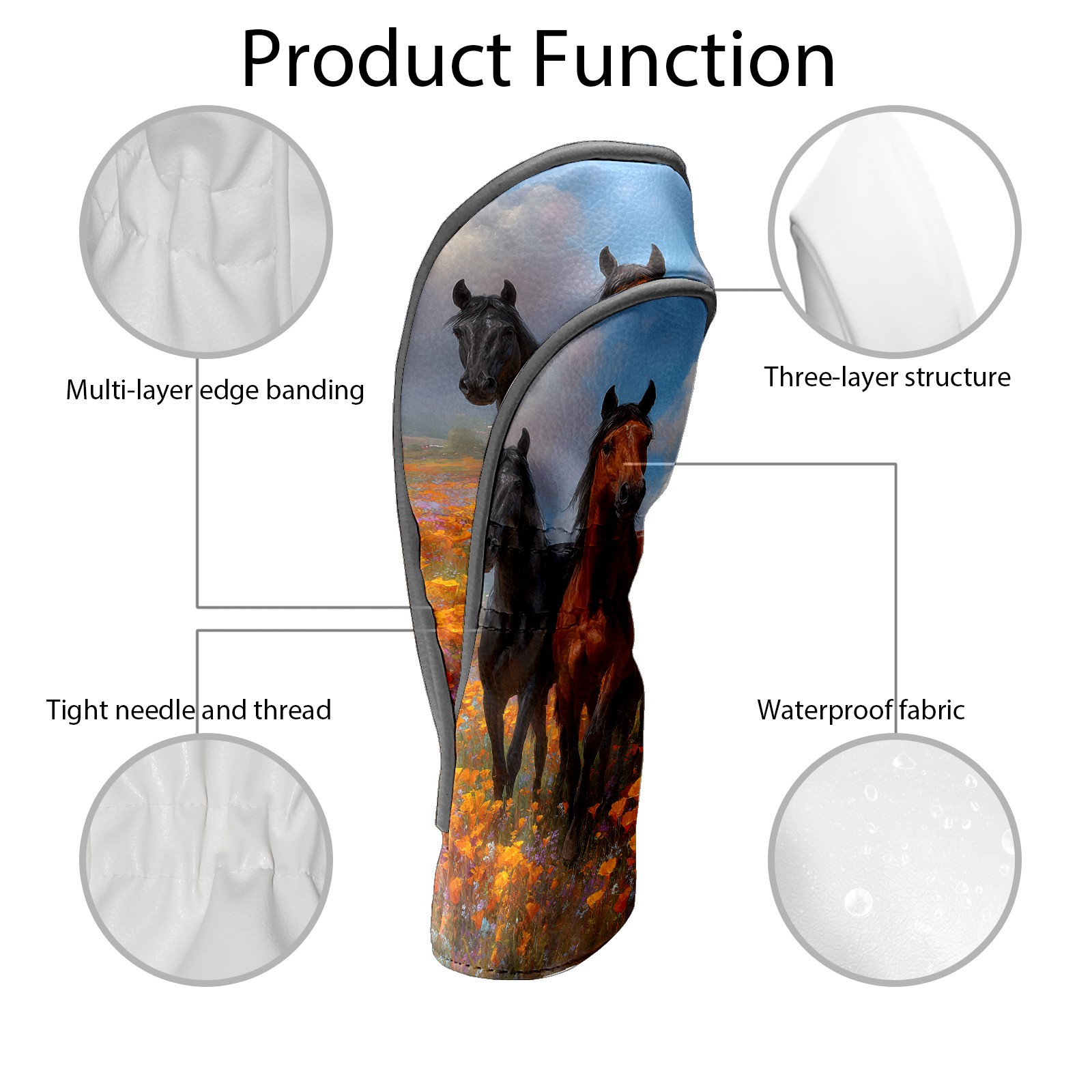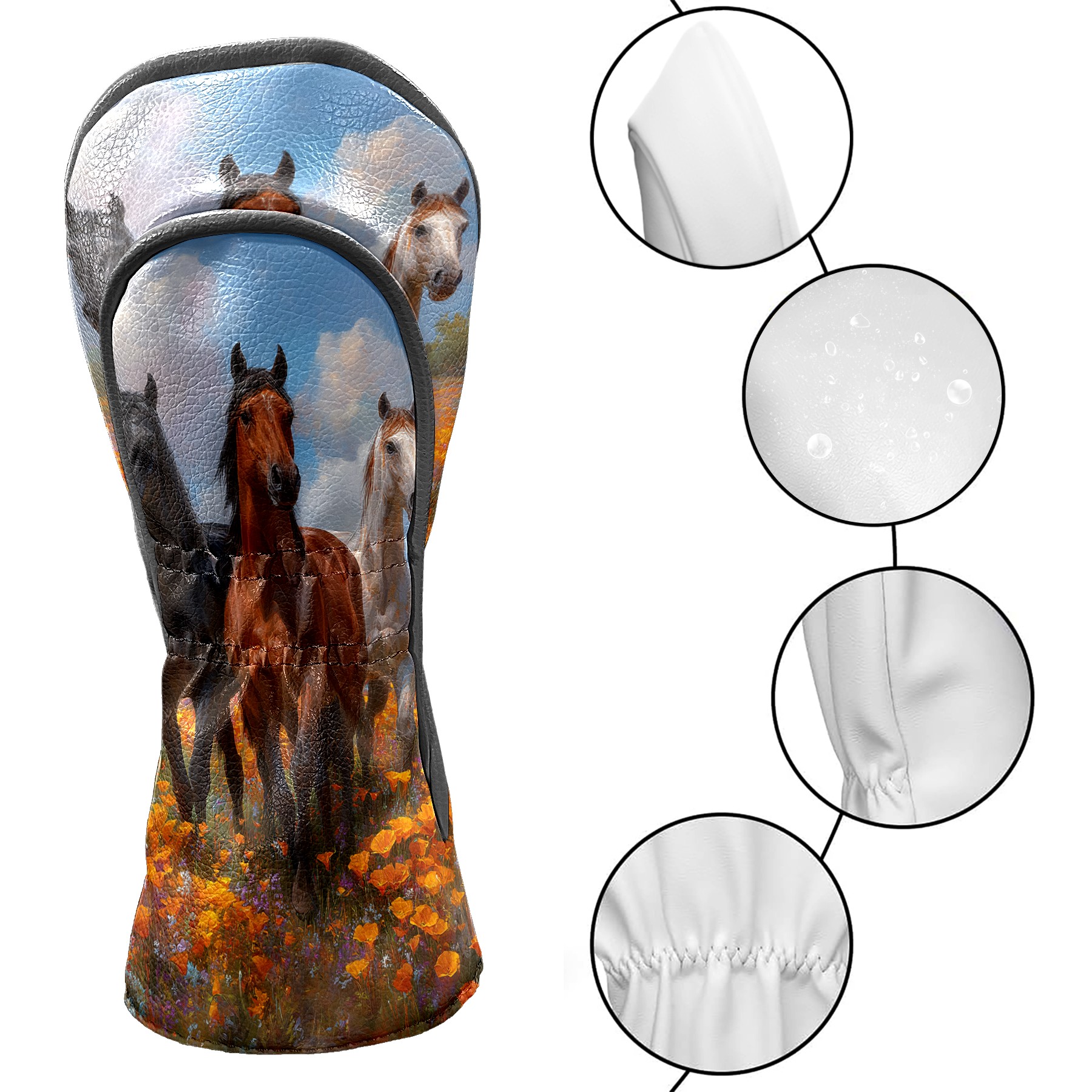 Golf Head Covers Elegant Horse Yellow for Driver & Fairway Woods | Waterproof PU Leather & Plush Lining | Stylish Gift for Men/Women