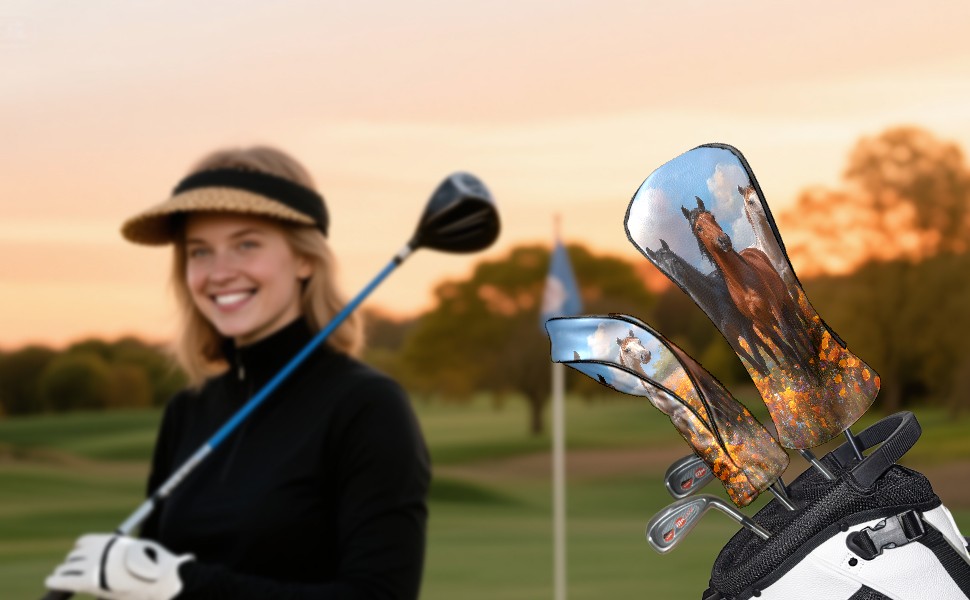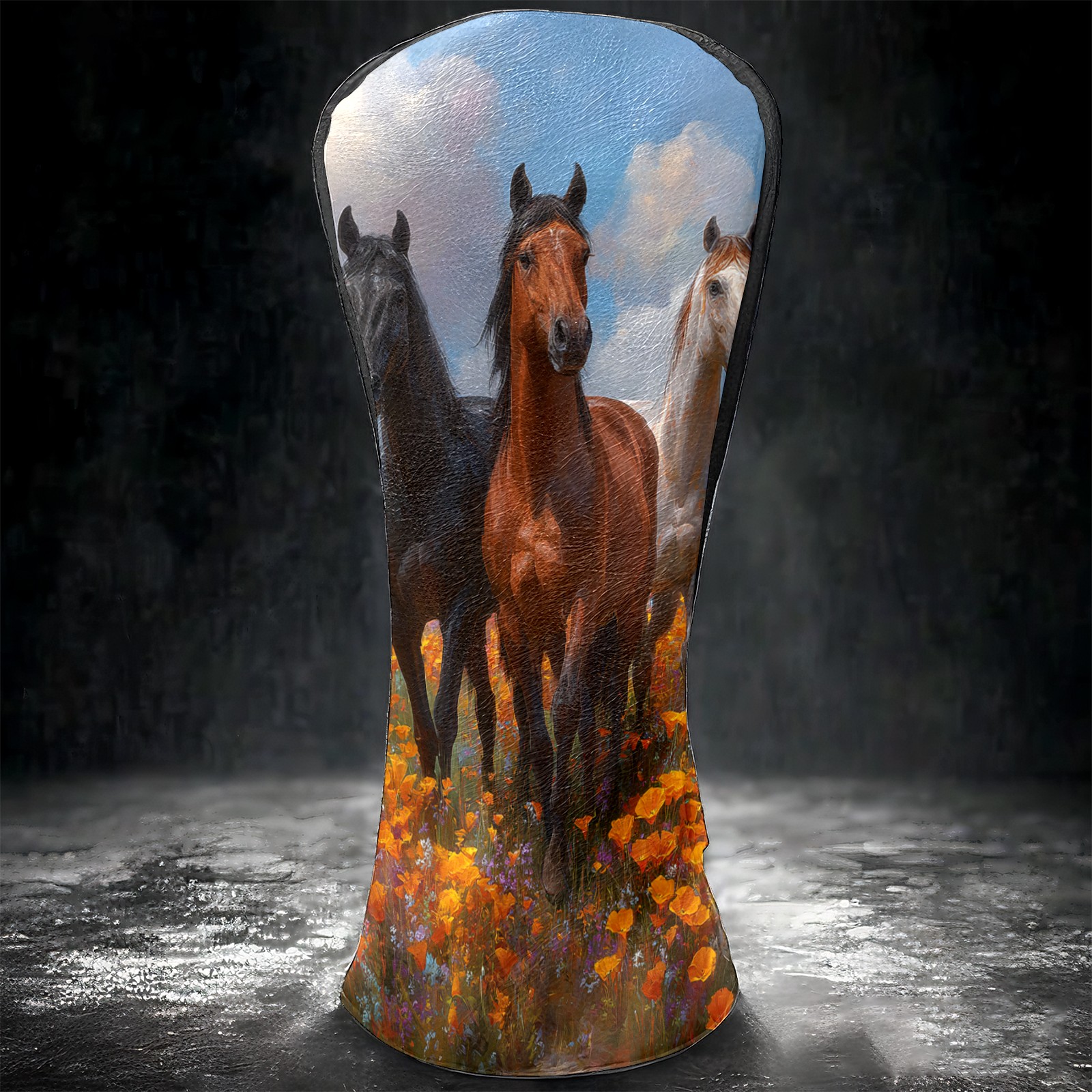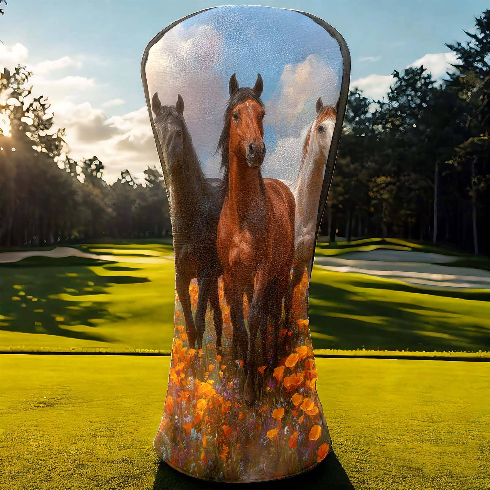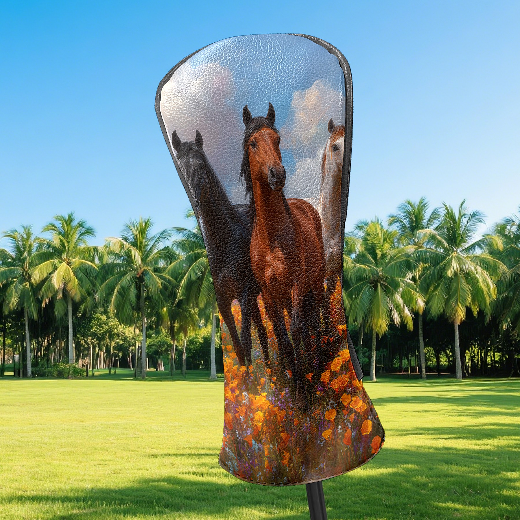 Golf Head Covers Elegant Horse Yellow for Driver & Fairway Woods | Waterproof PU Leather & Plush Lining | Stylish Gift for Men/Women
