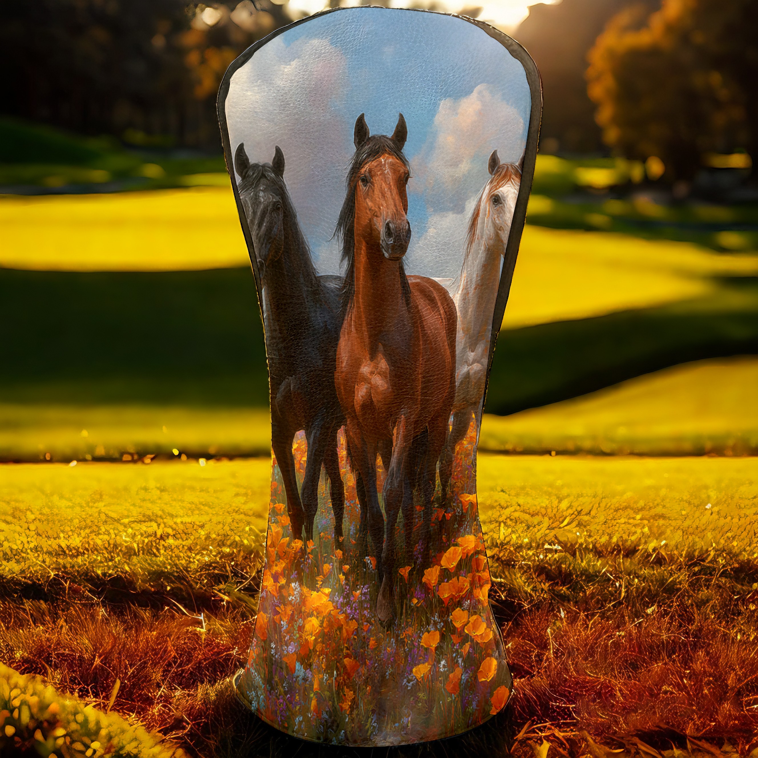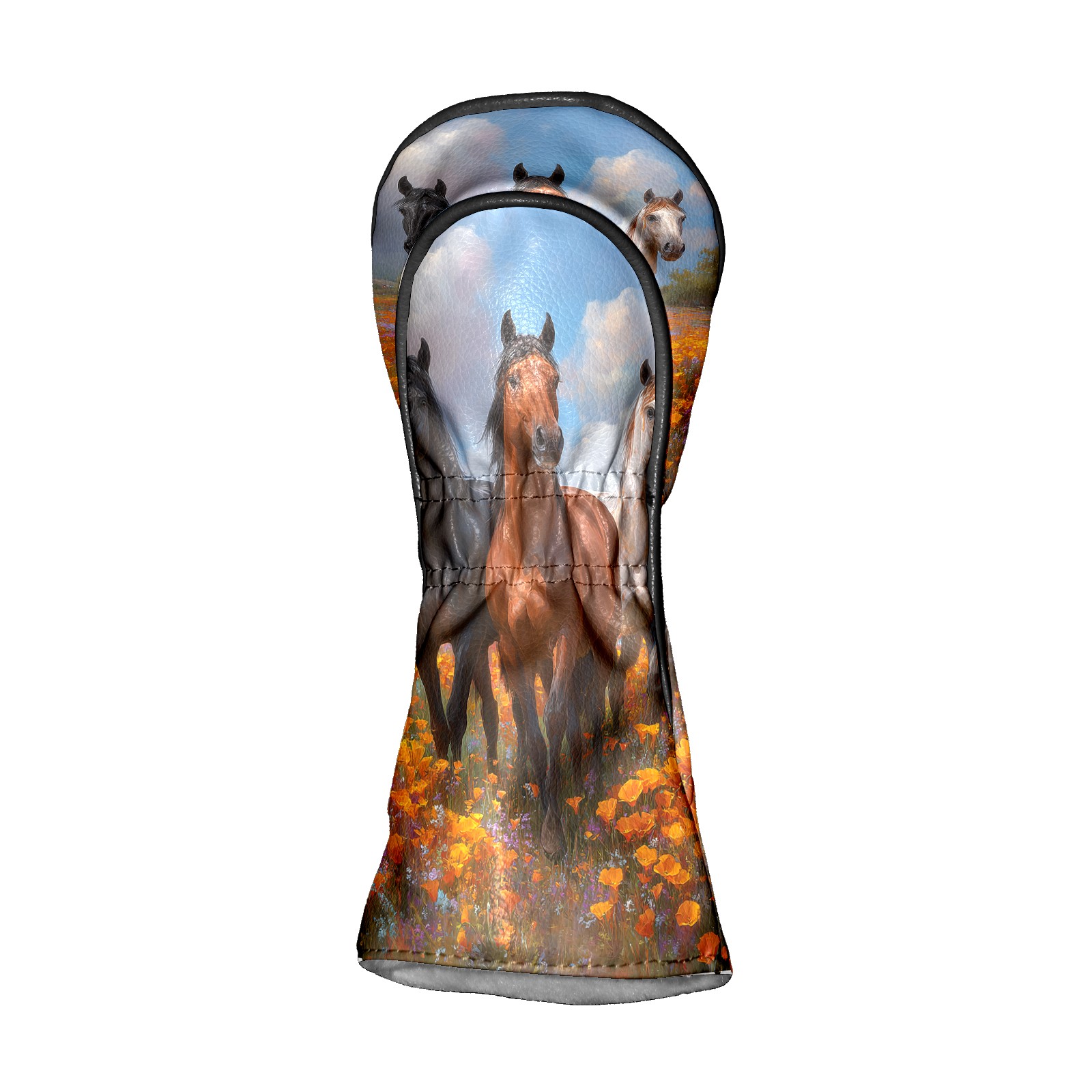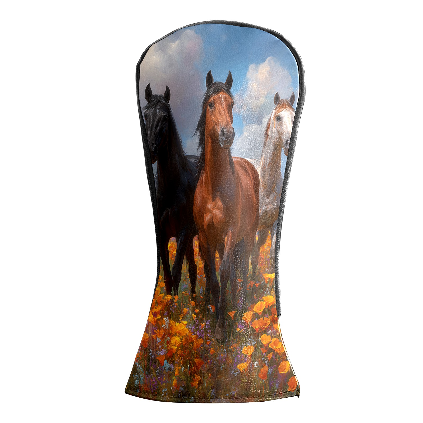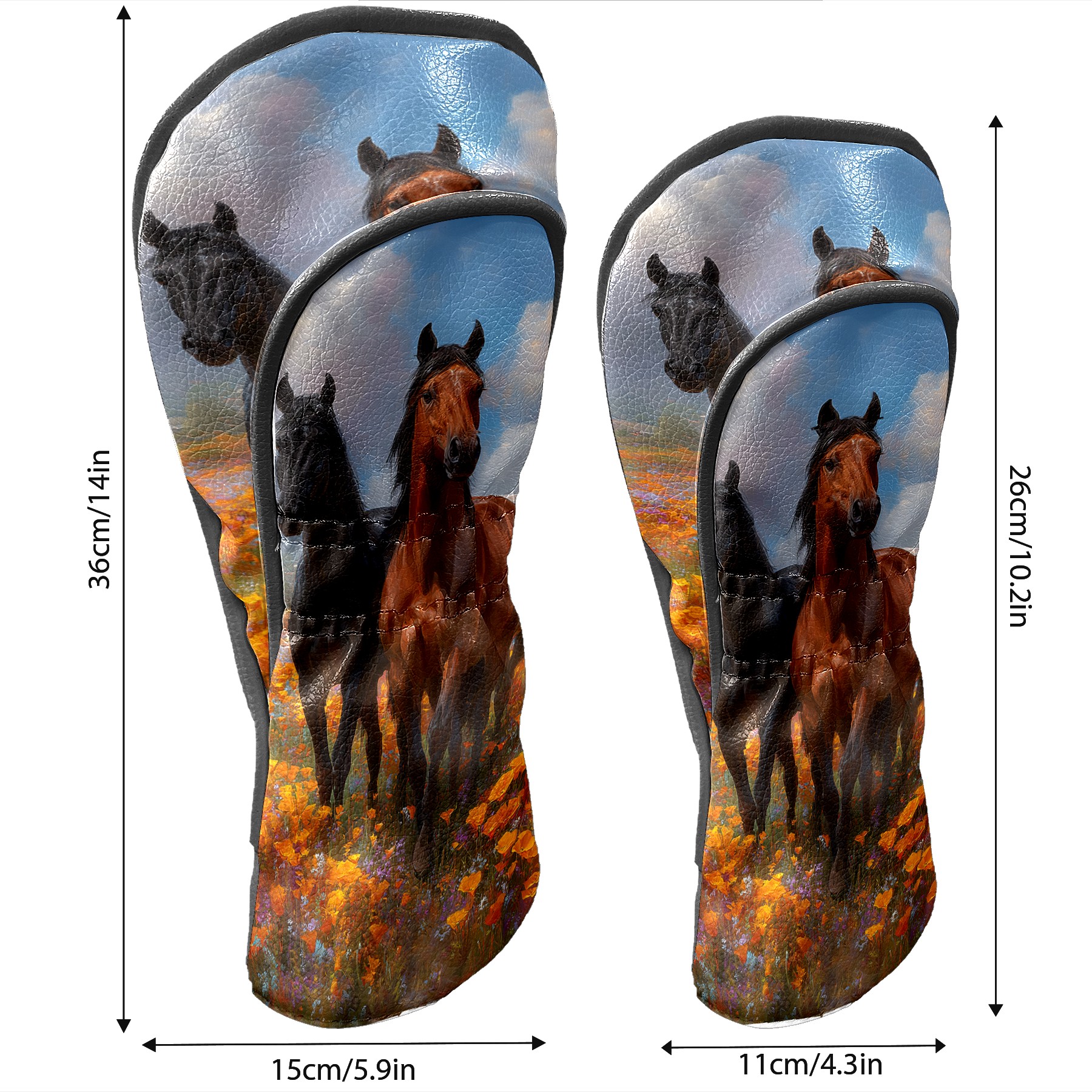 Golf Head Covers Elegant Horse Yellow for Driver & Fairway Woods | Waterproof PU Leather & Plush Lining | Stylish Gift for Men/Women