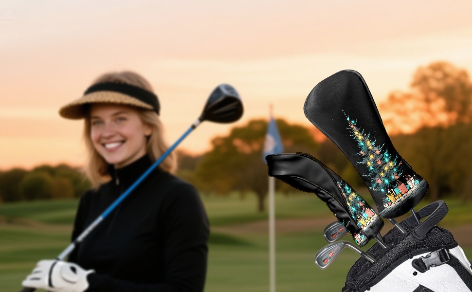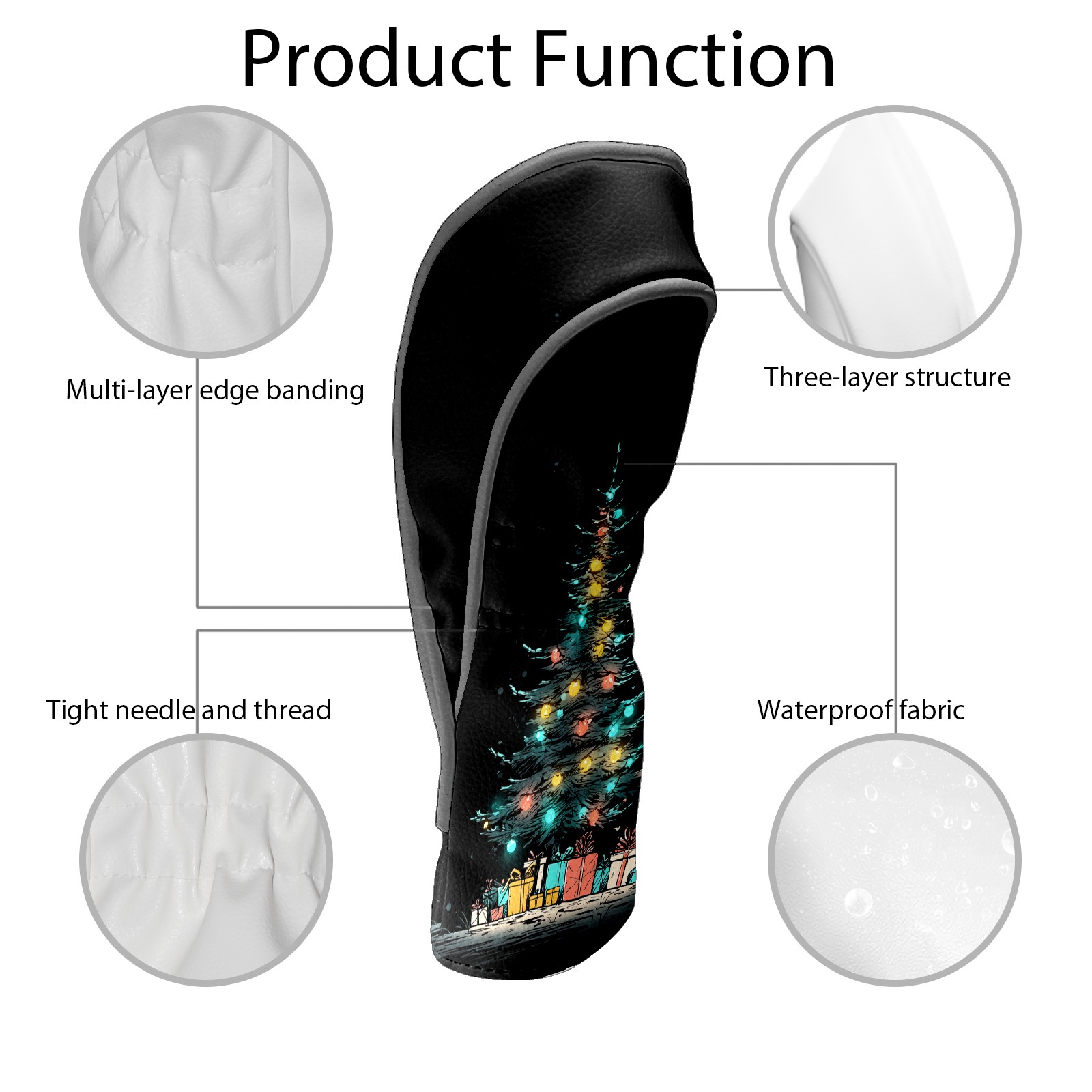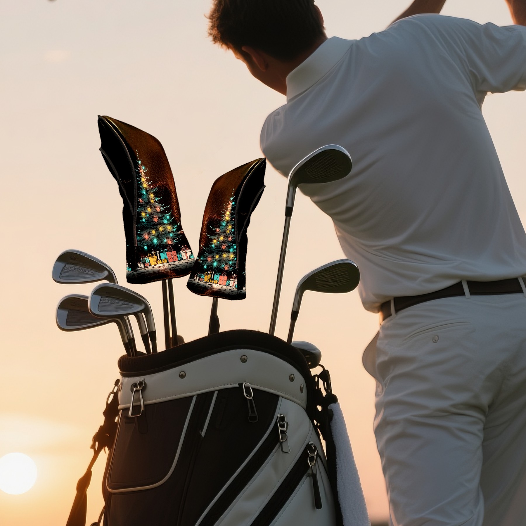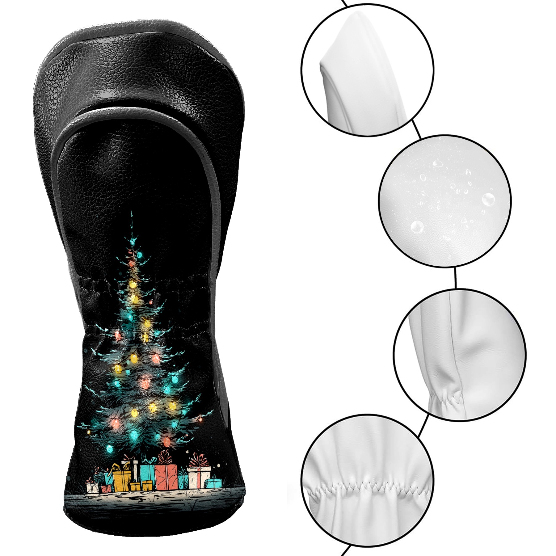 Golf Head Covers Christmas Tree Black for Driver & Fairway Woods | Waterproof PU Leather & Plush Lining | Stylish Gift for Men/Women