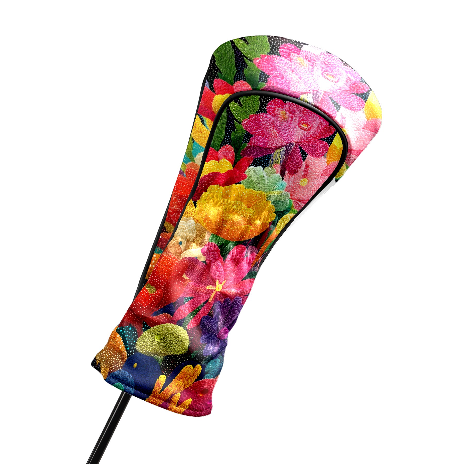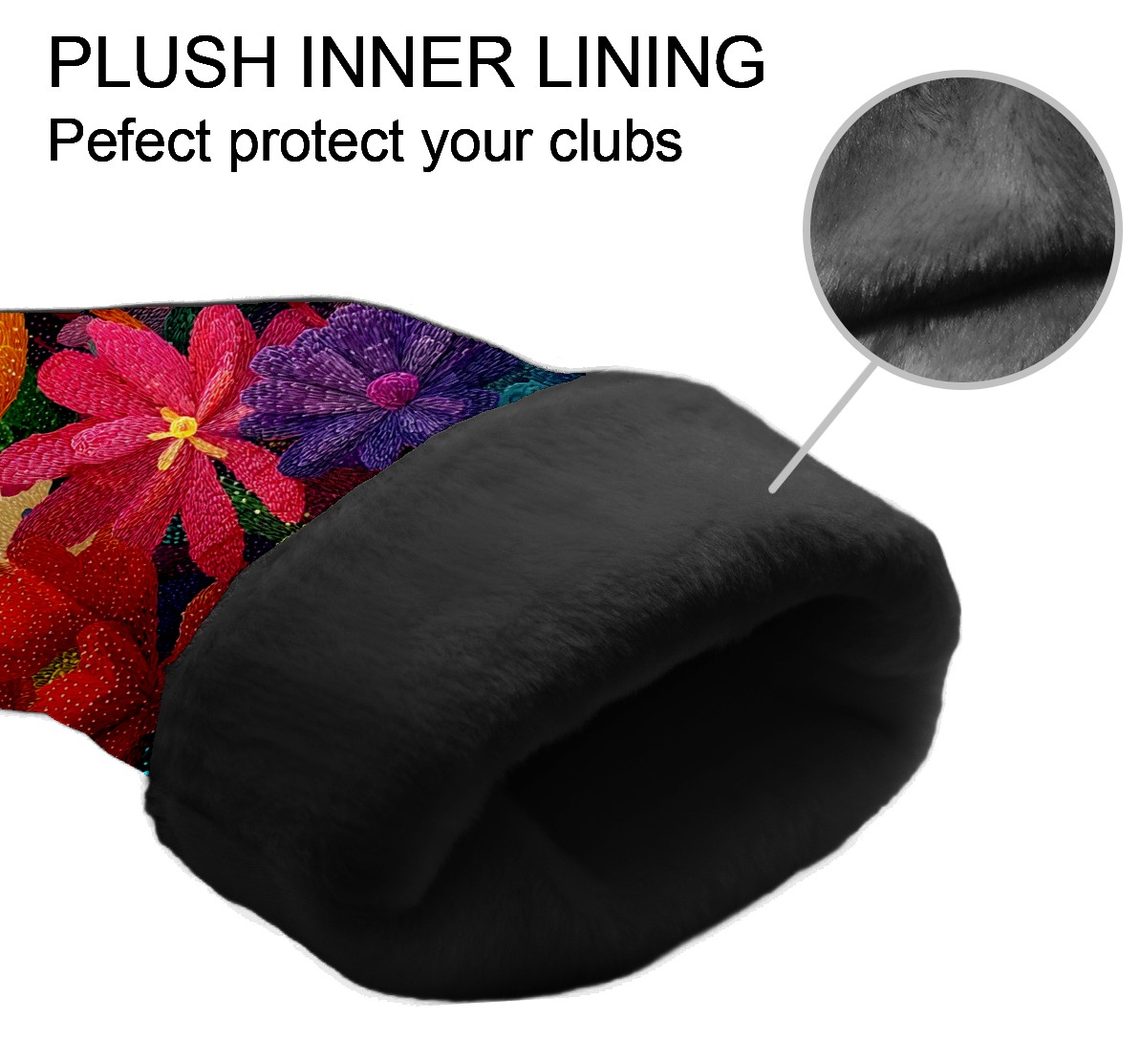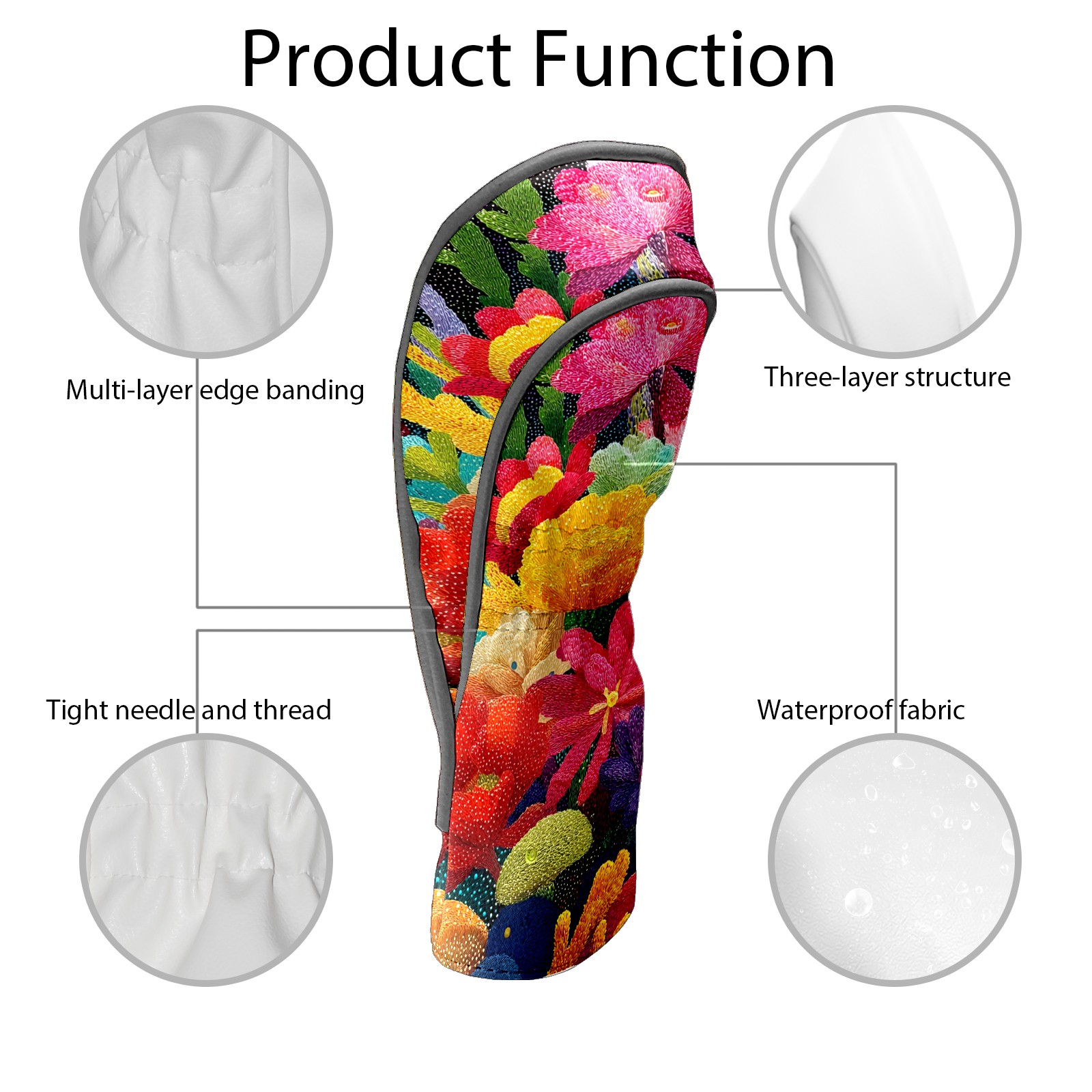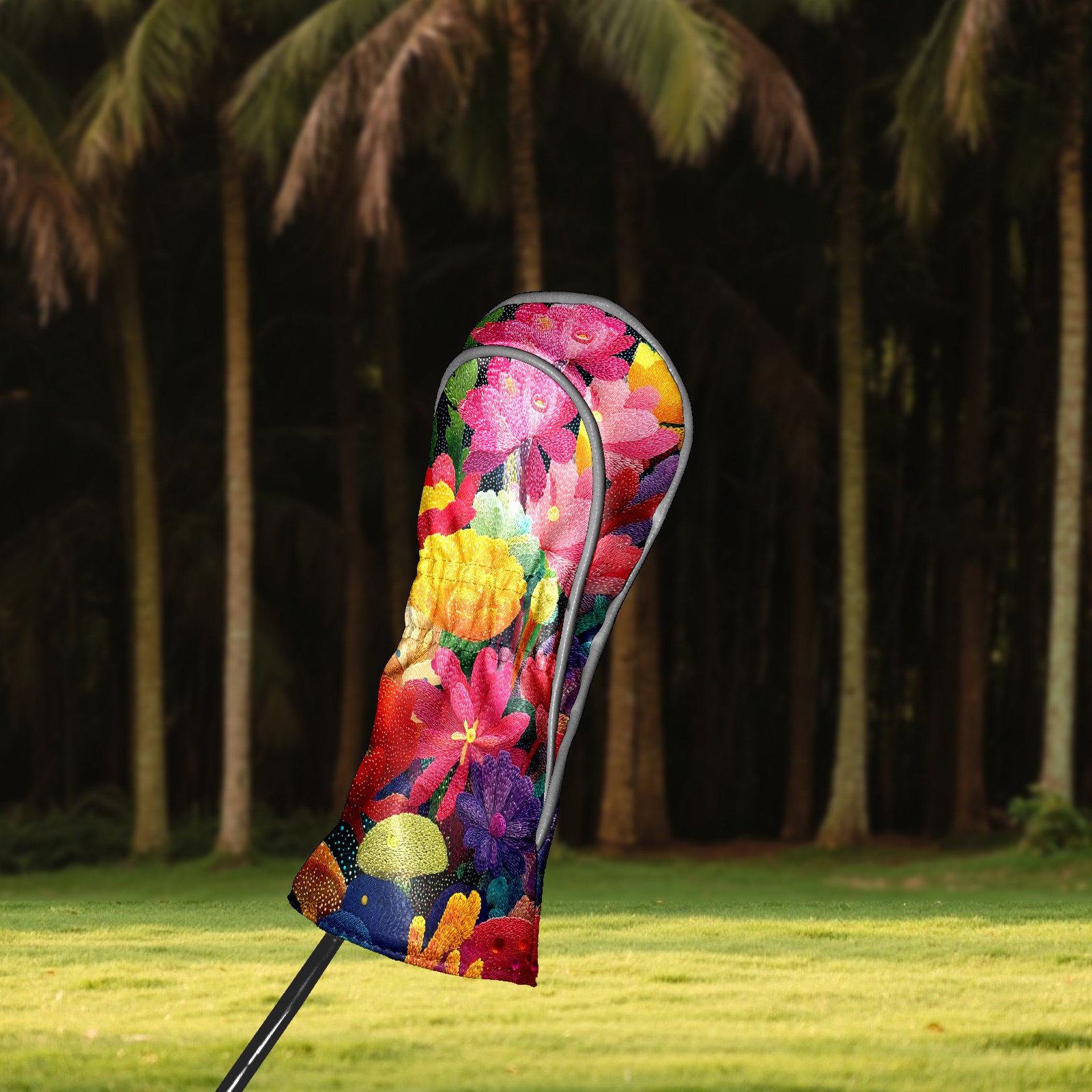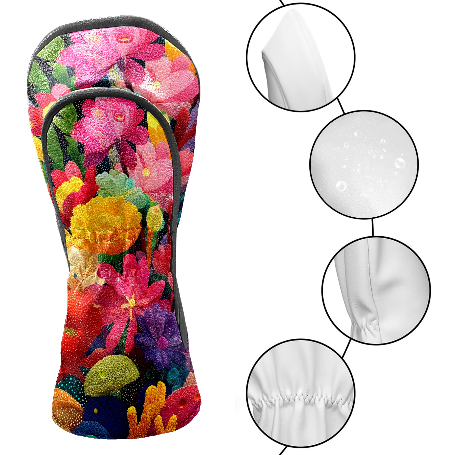 Golf Head Covers Colorful Flower Multi for Driver & Fairway Woods | Waterproof PU Leather & Plush Lining | Stylish Gift for Men/Women