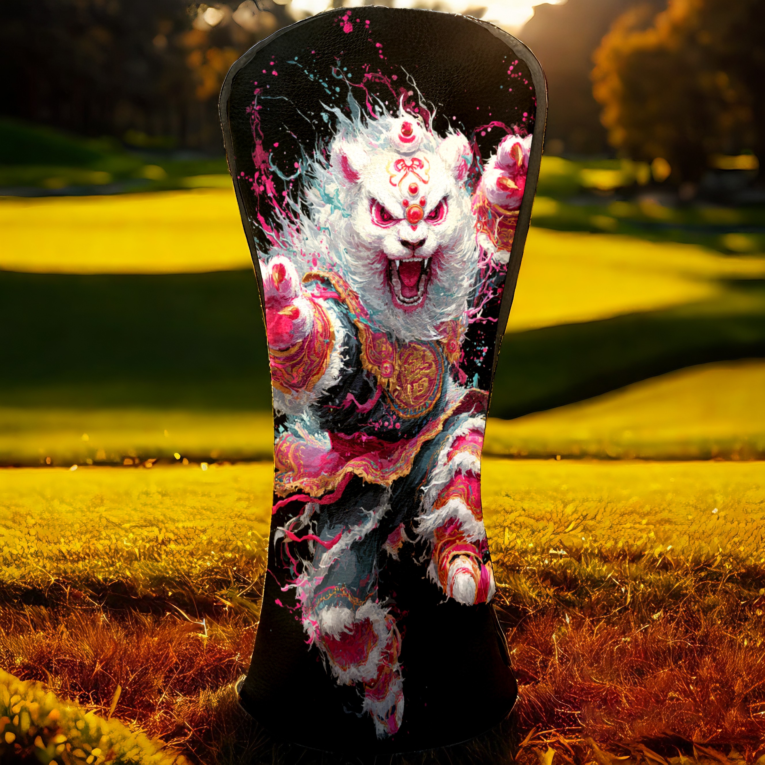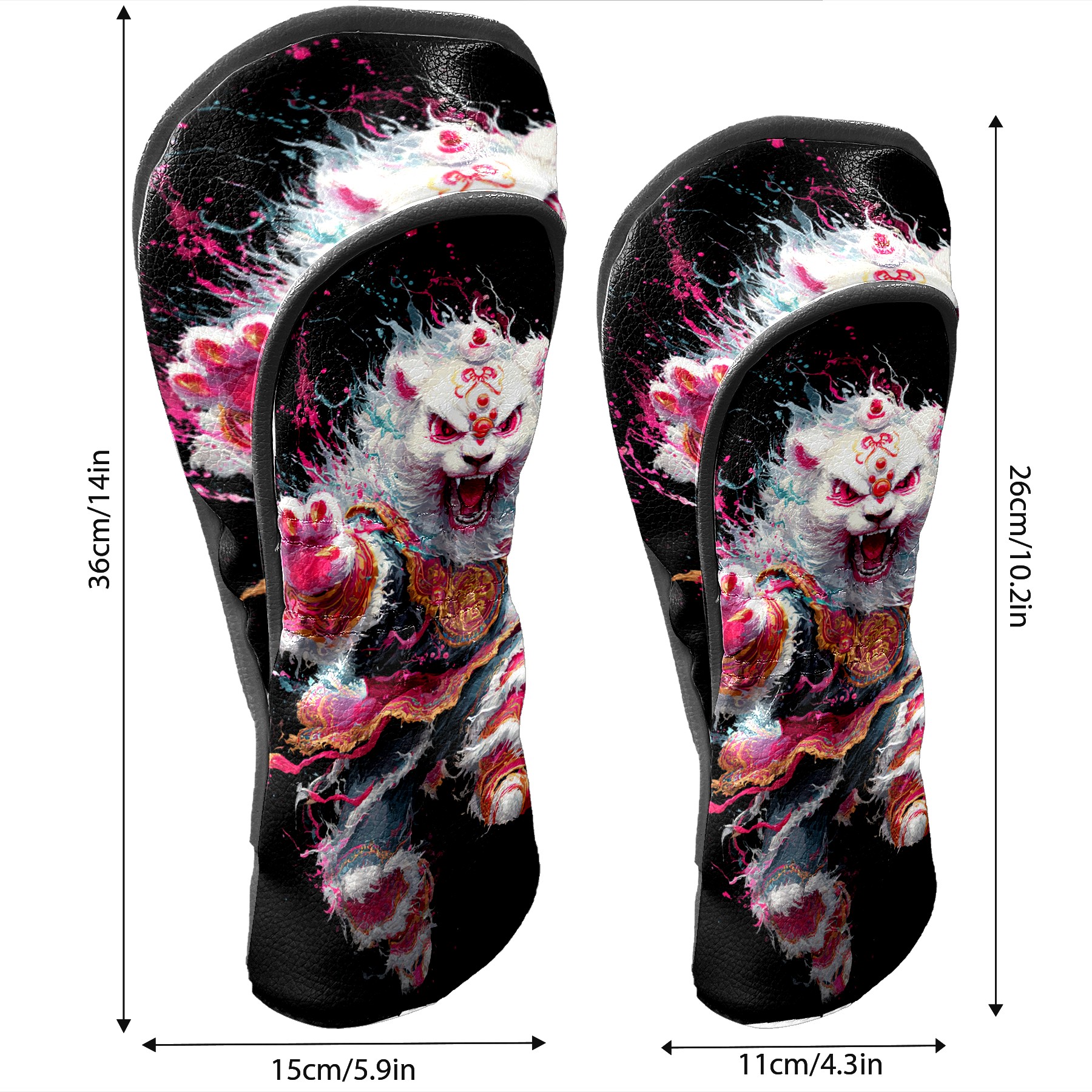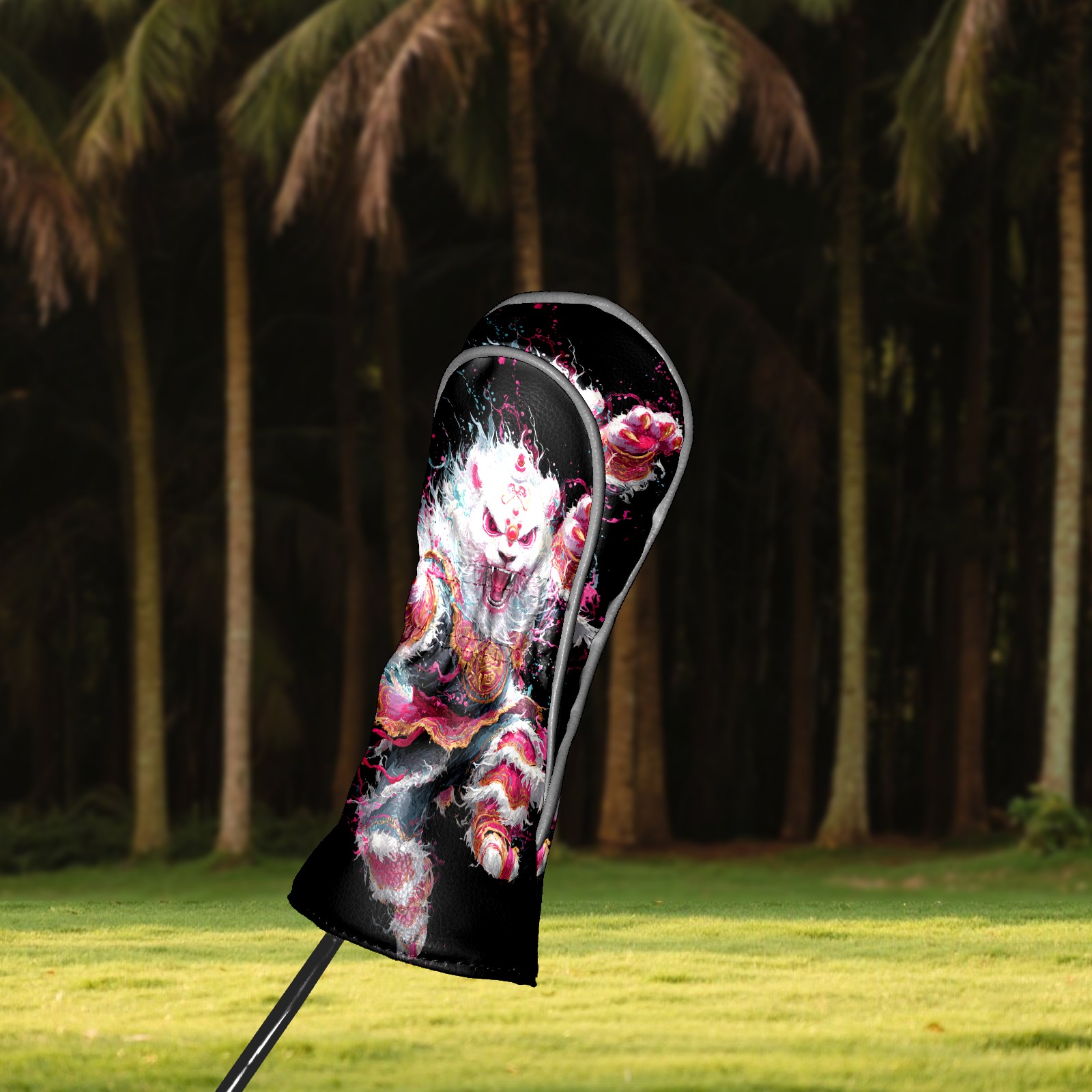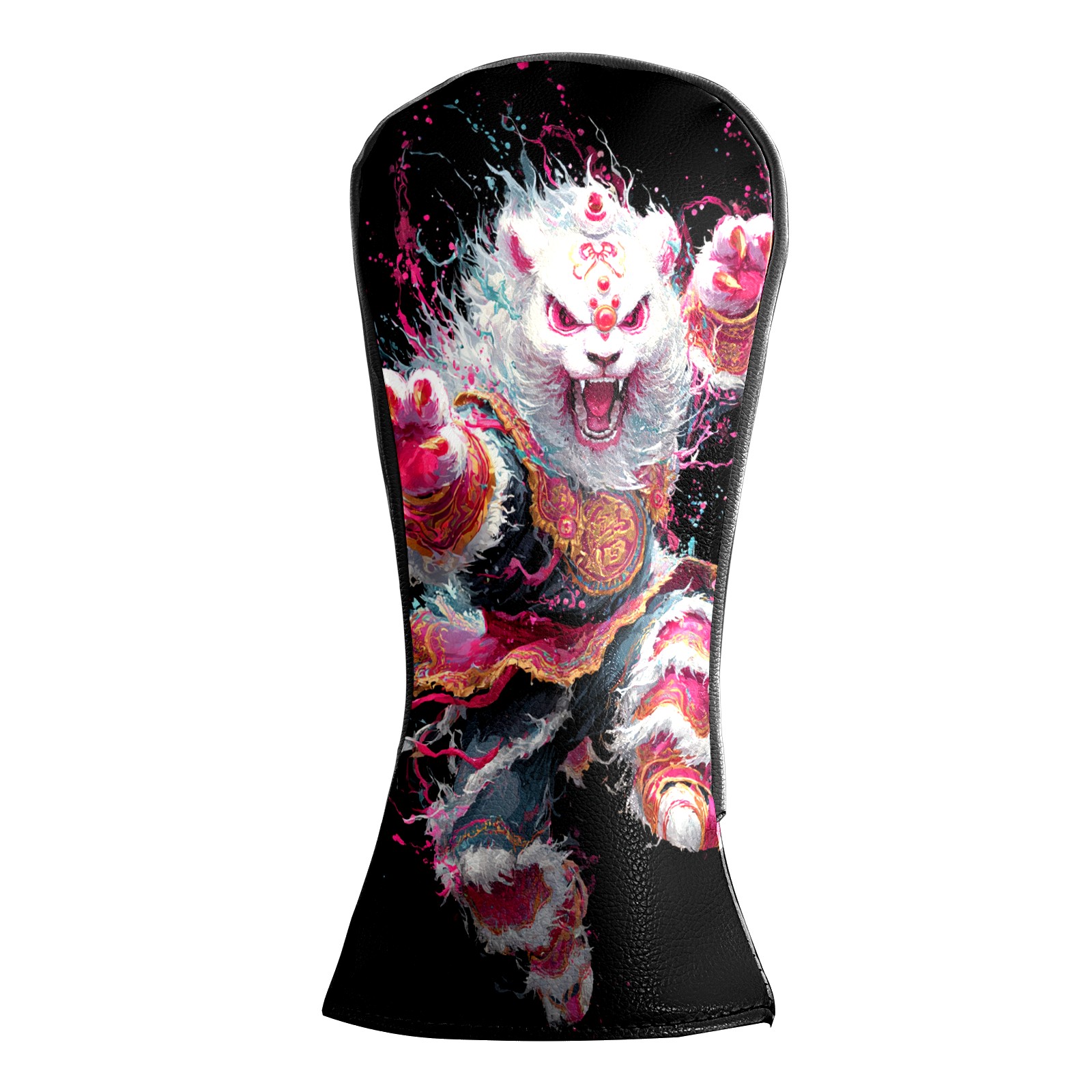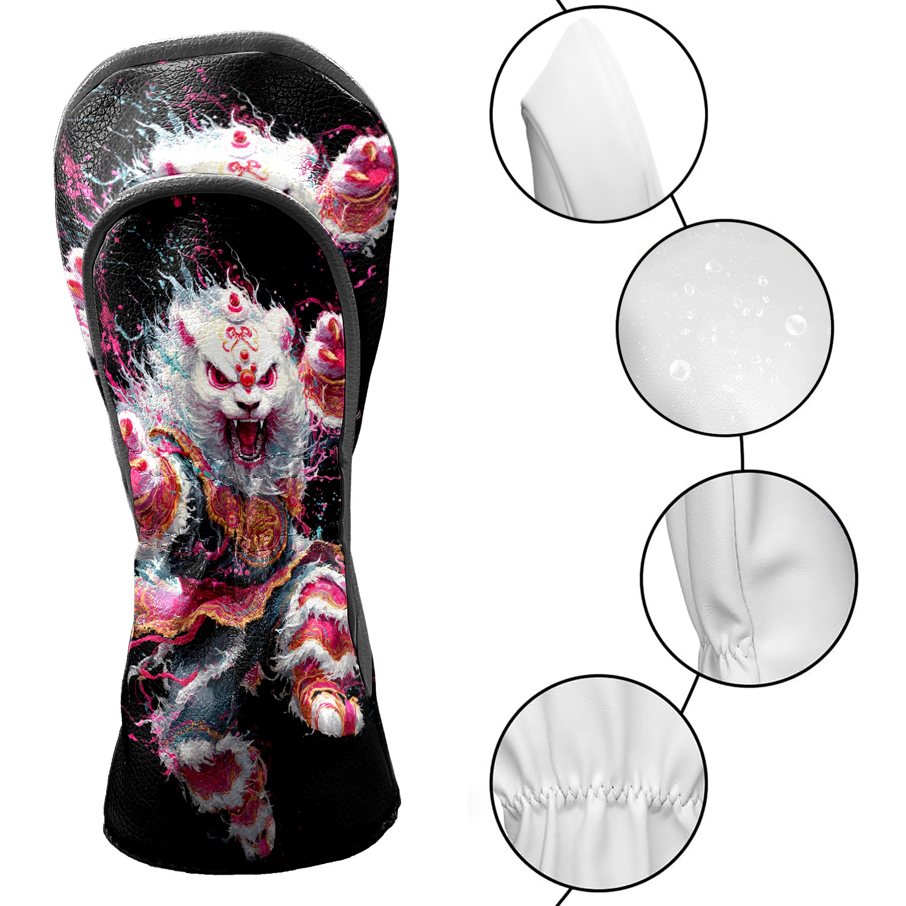Golf Head Covers Majestic Lion Dance Red for Driver & Fairway Woods | Waterproof PU Leather & Plush Lining | Stylish Gift for Men/Women