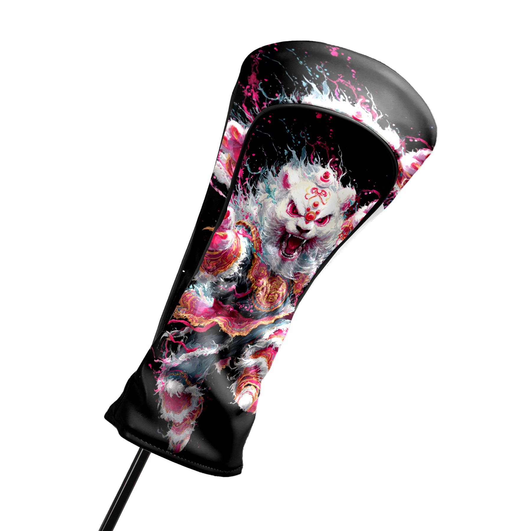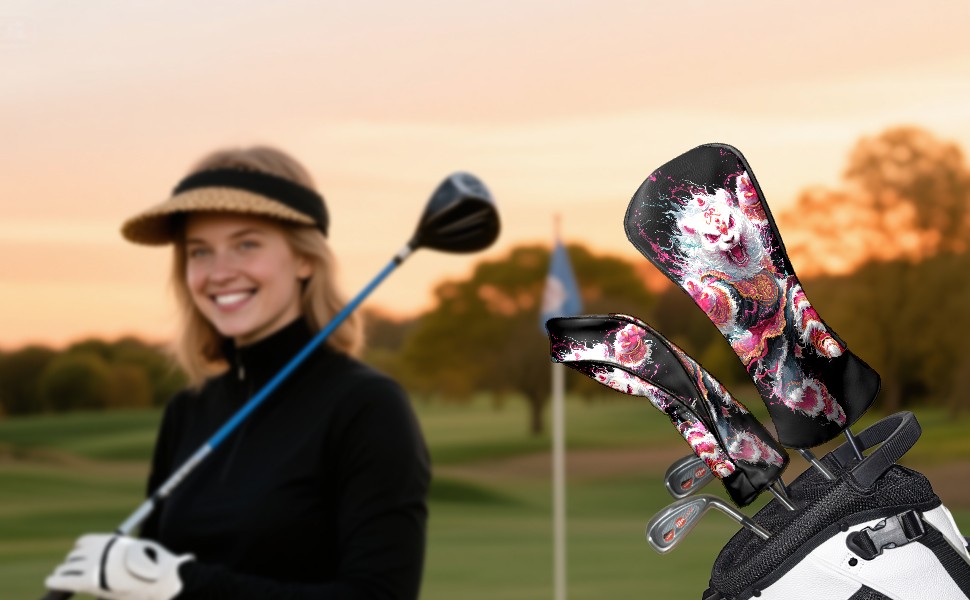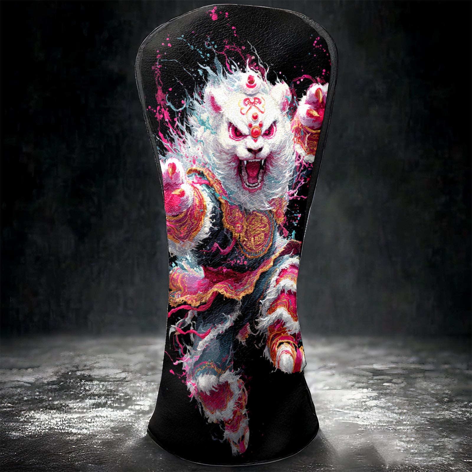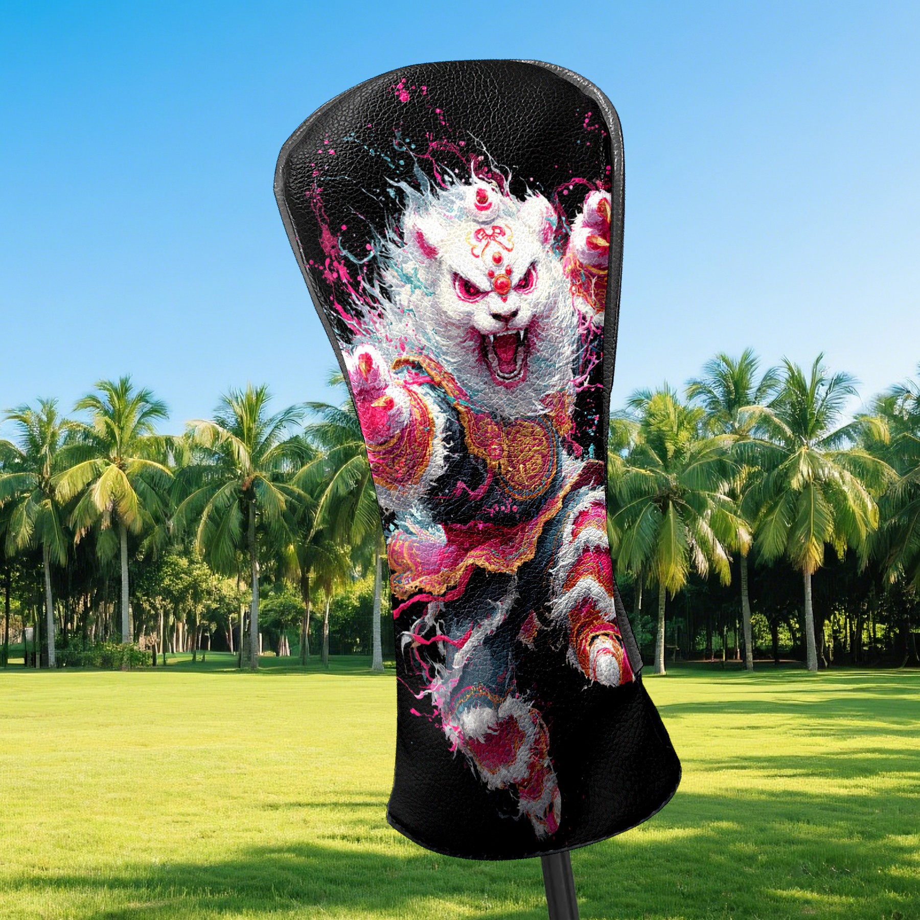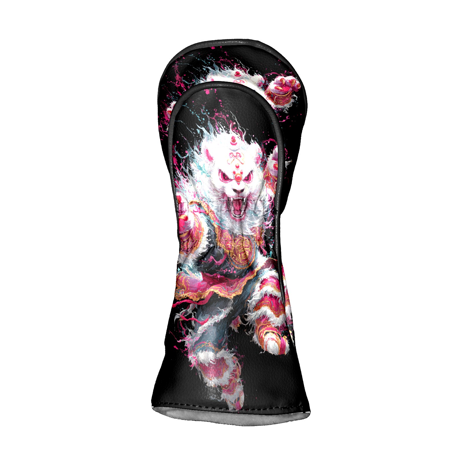 Golf Head Covers Majestic Lion Dance Red for Driver & Fairway Woods | Waterproof PU Leather & Plush Lining | Stylish Gift for Men/Women