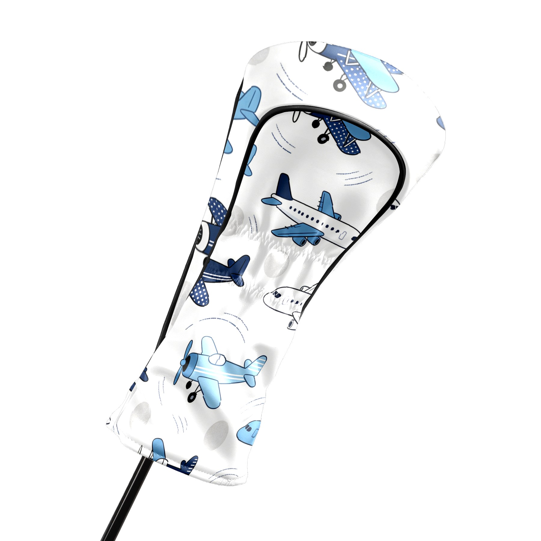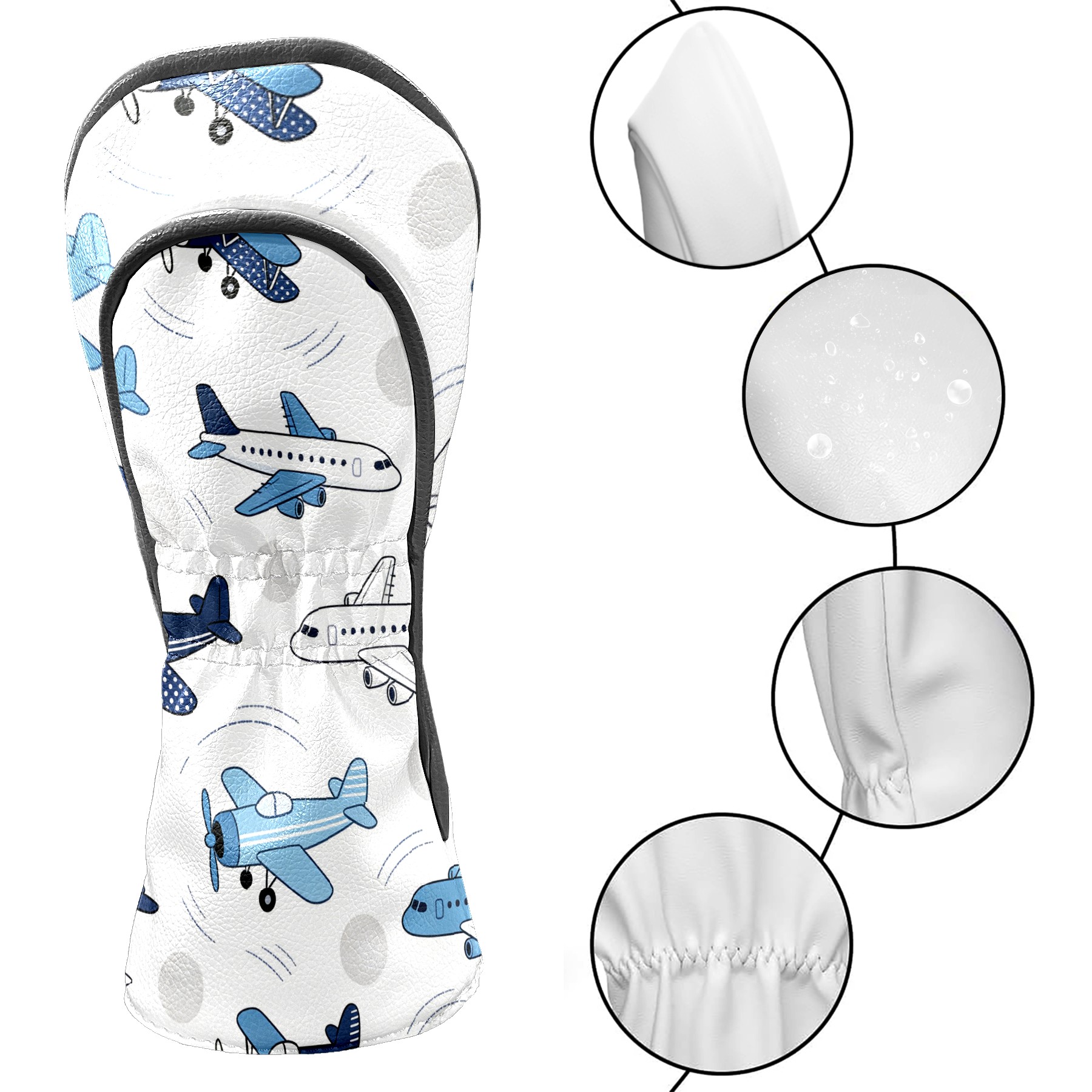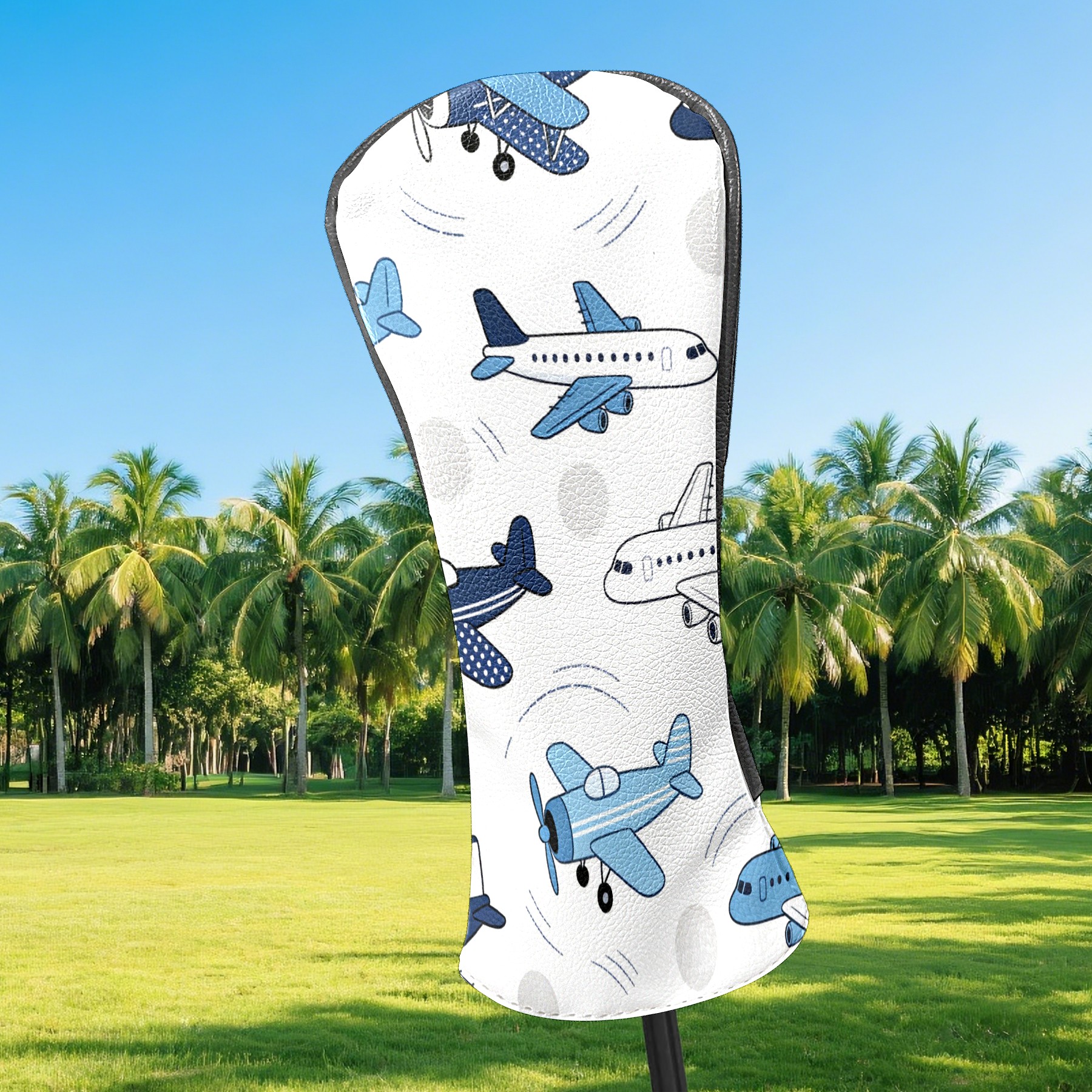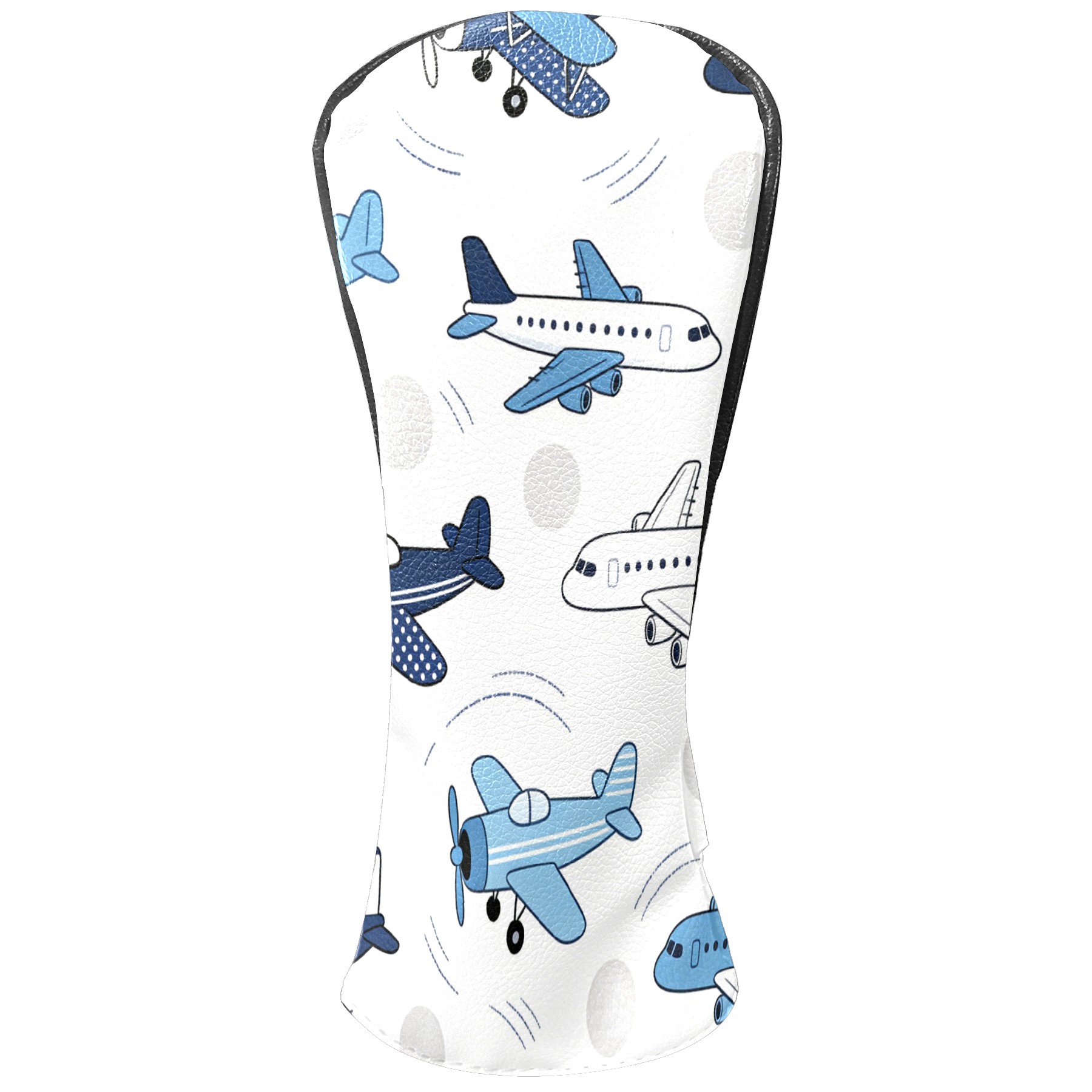 Golf Club Head Cover, High Quality PU Leather Driver and Wood Club Head Cover with Anti-Scratch Lining, Blue White Airplane Universal Gift for Men and Women