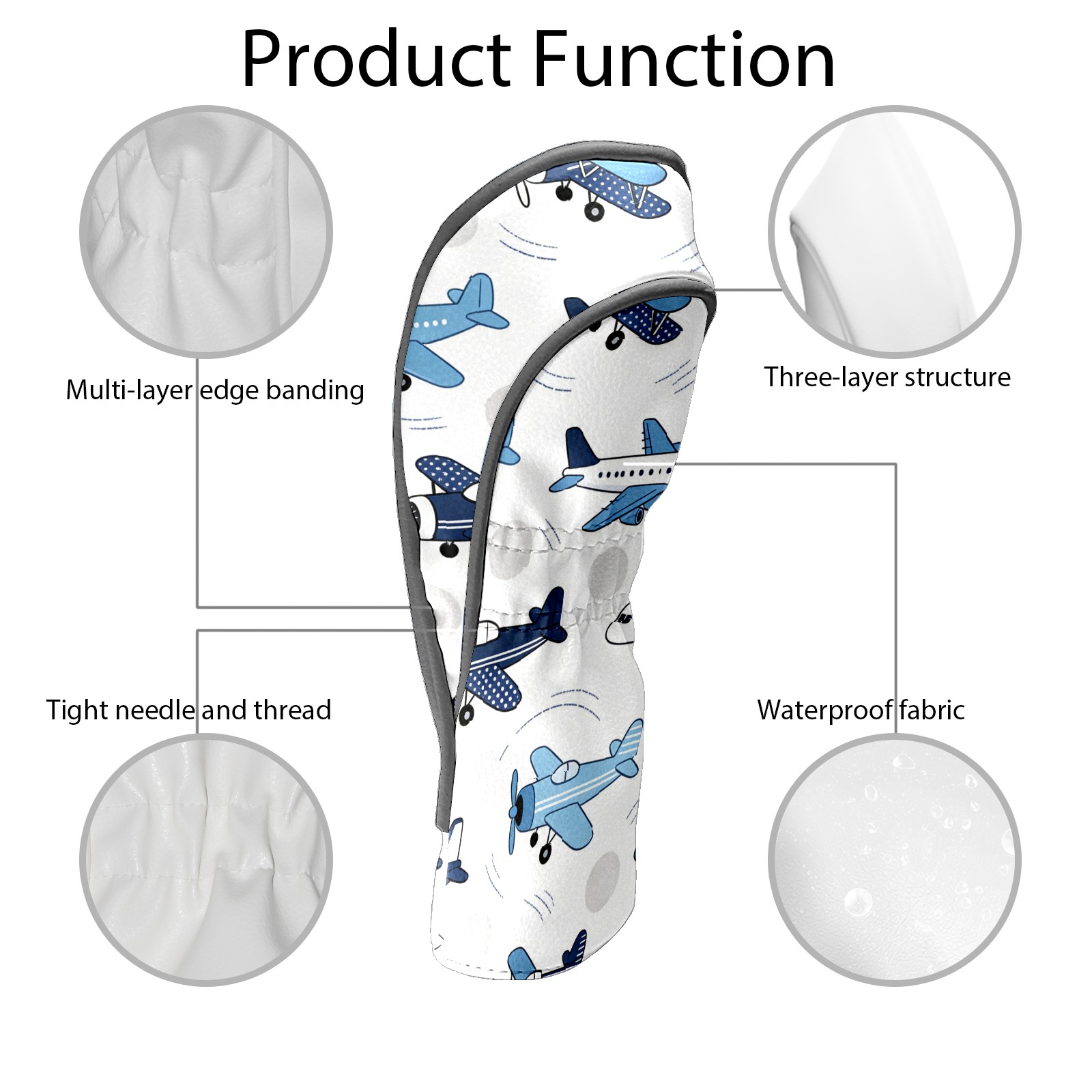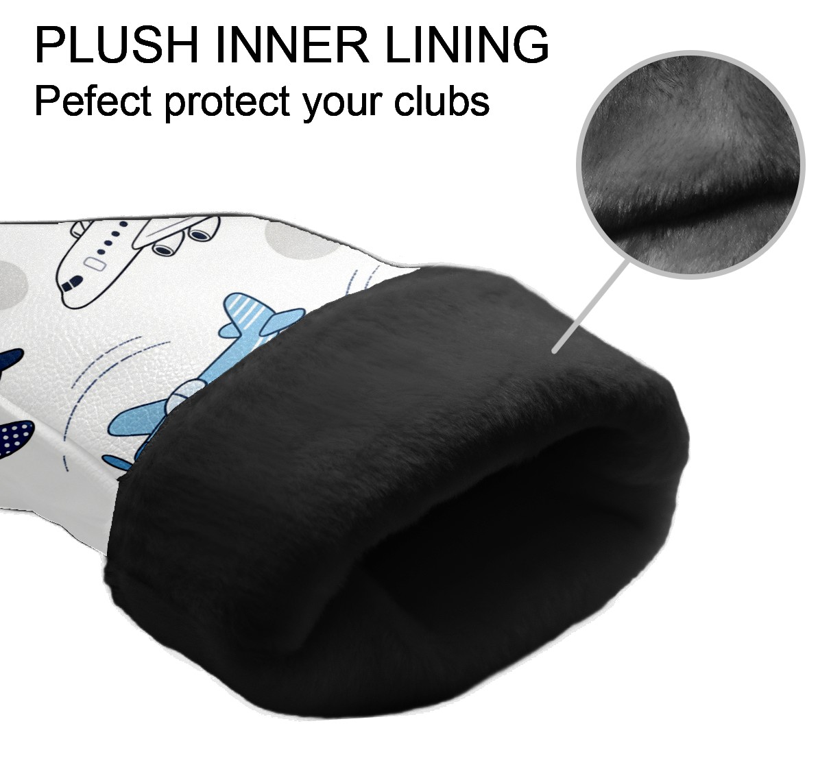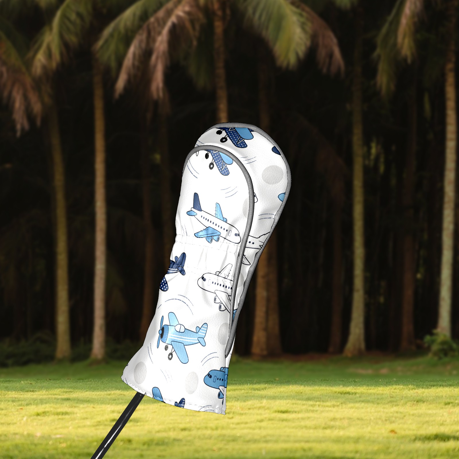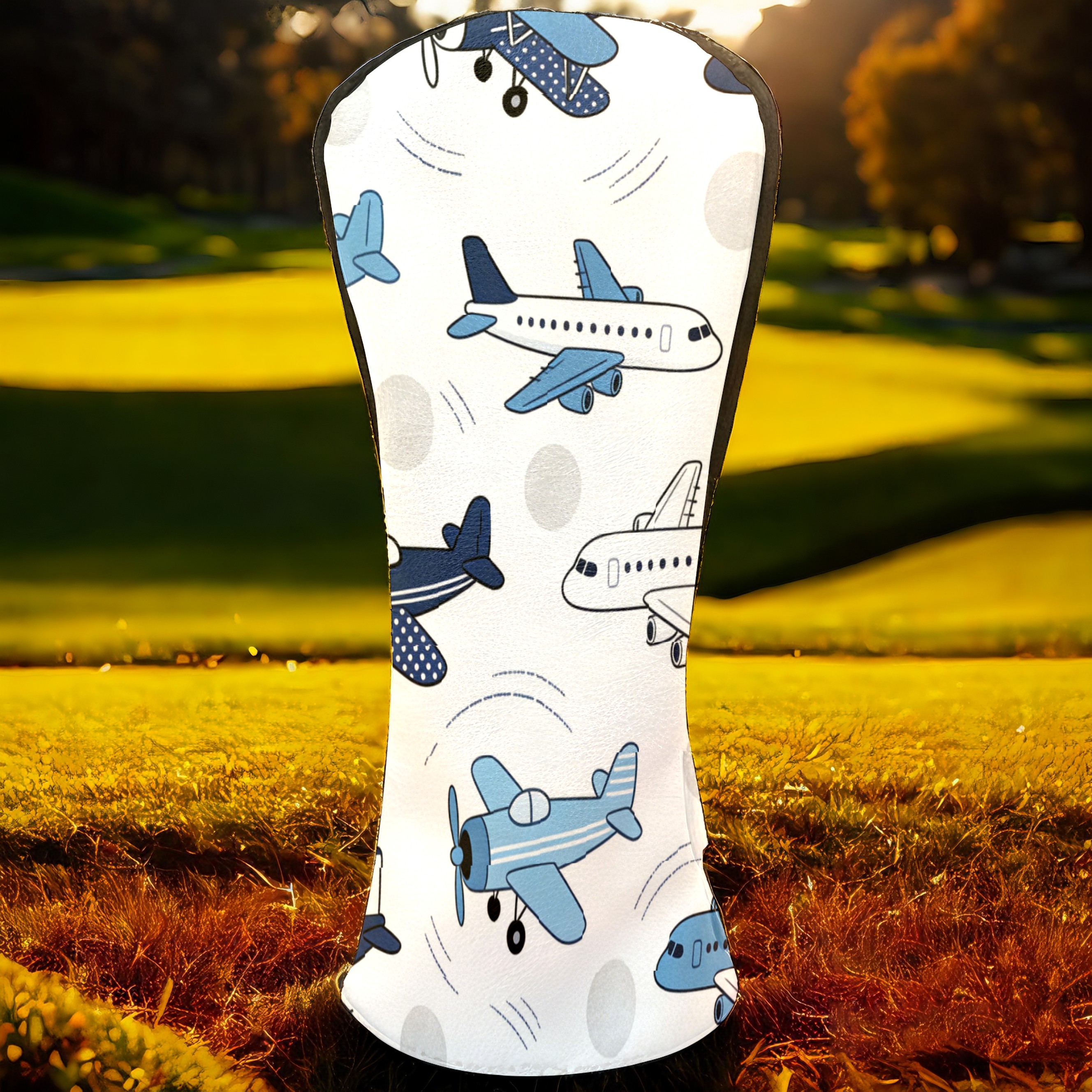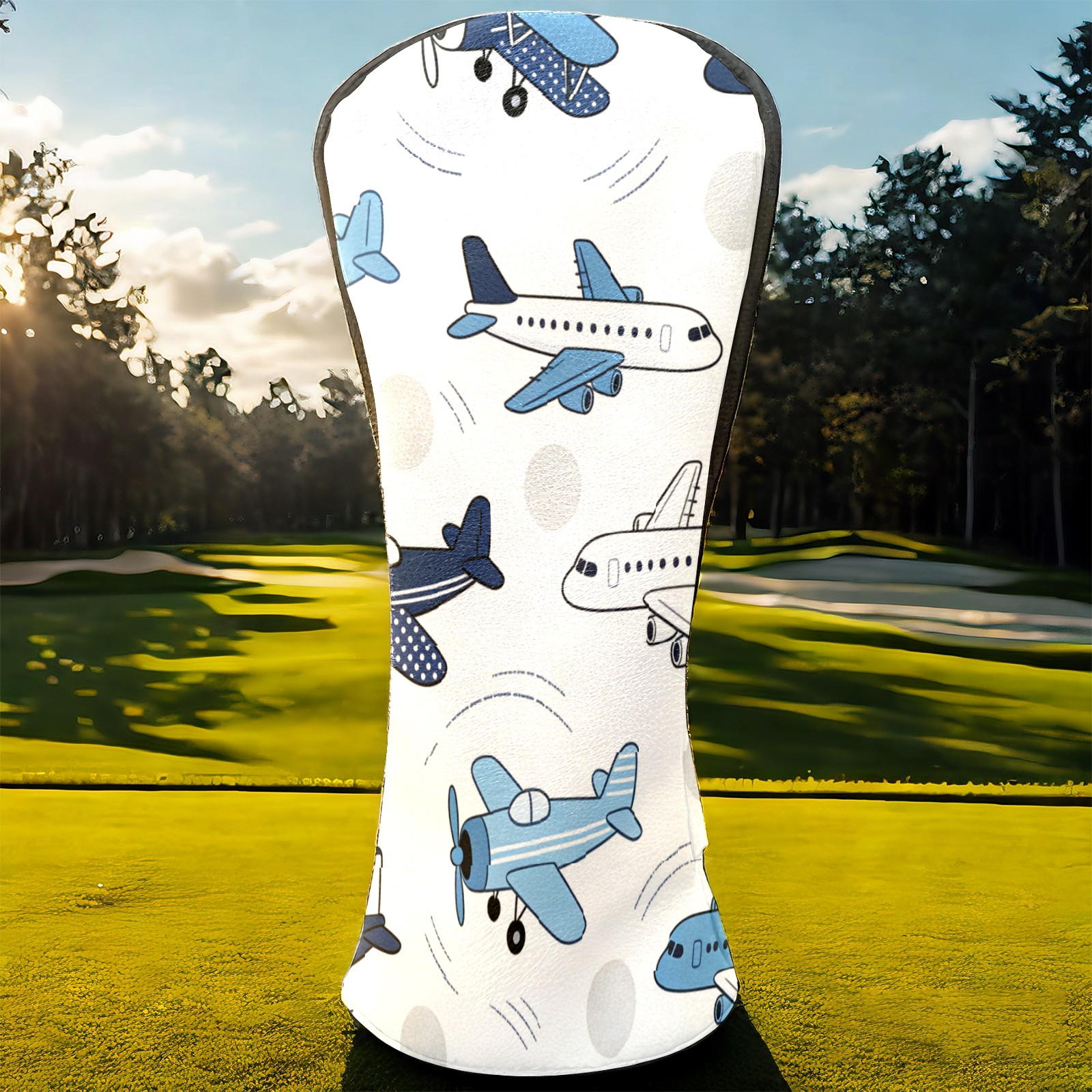 Golf Club Head Cover, High Quality PU Leather Driver and Wood Club Head Cover with Anti-Scratch Lining, Blue White Airplane Universal Gift for Men and Women