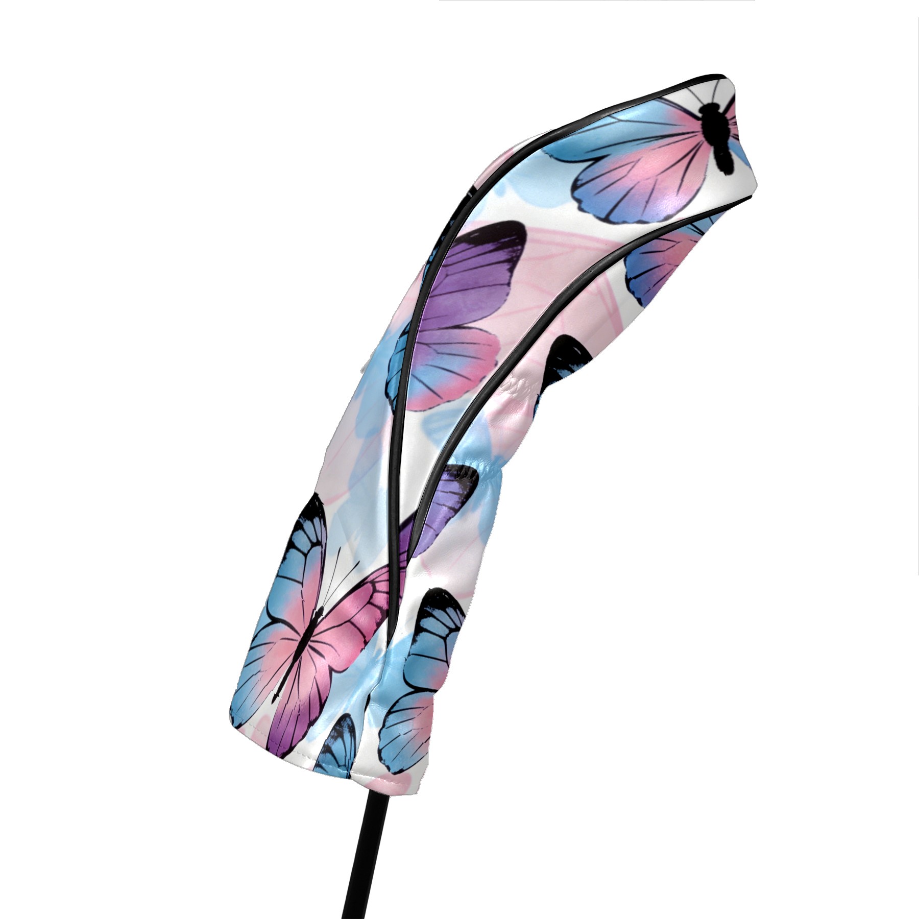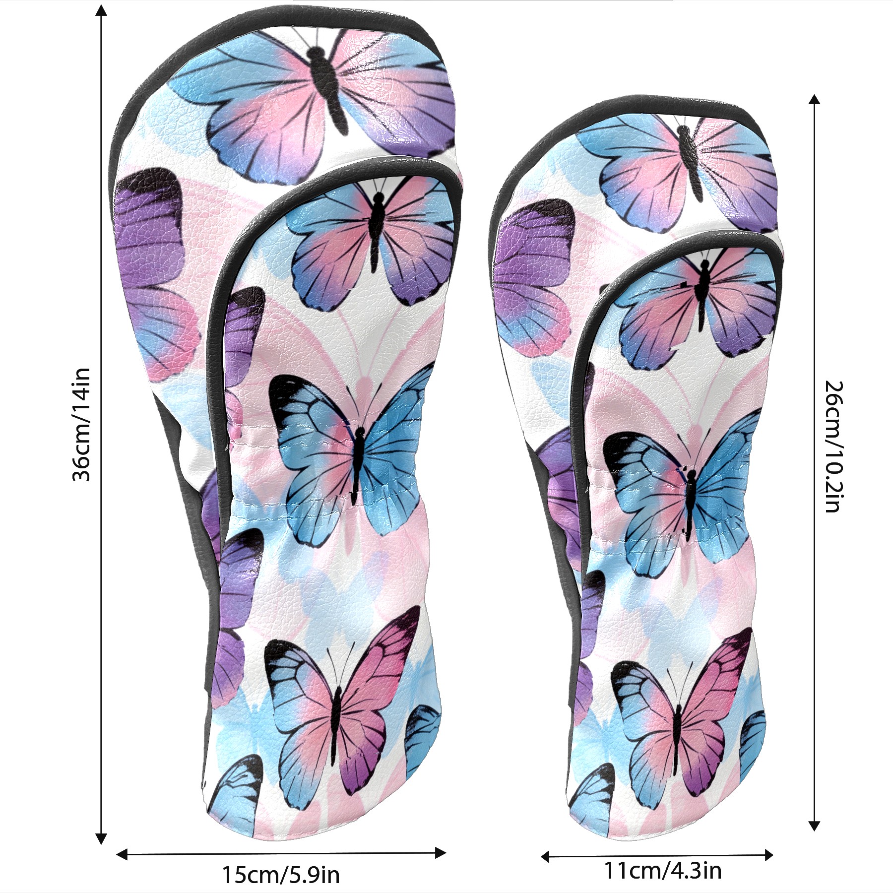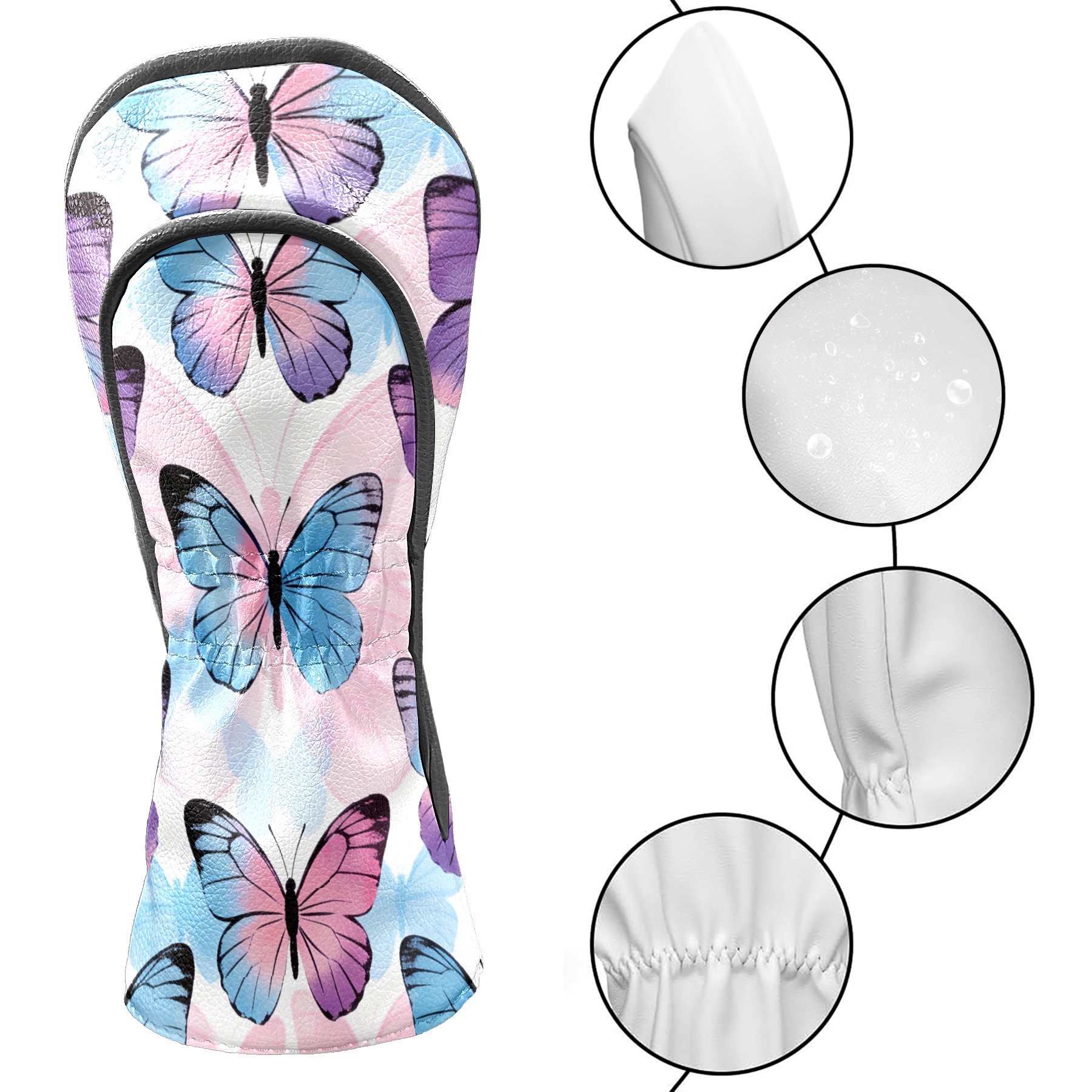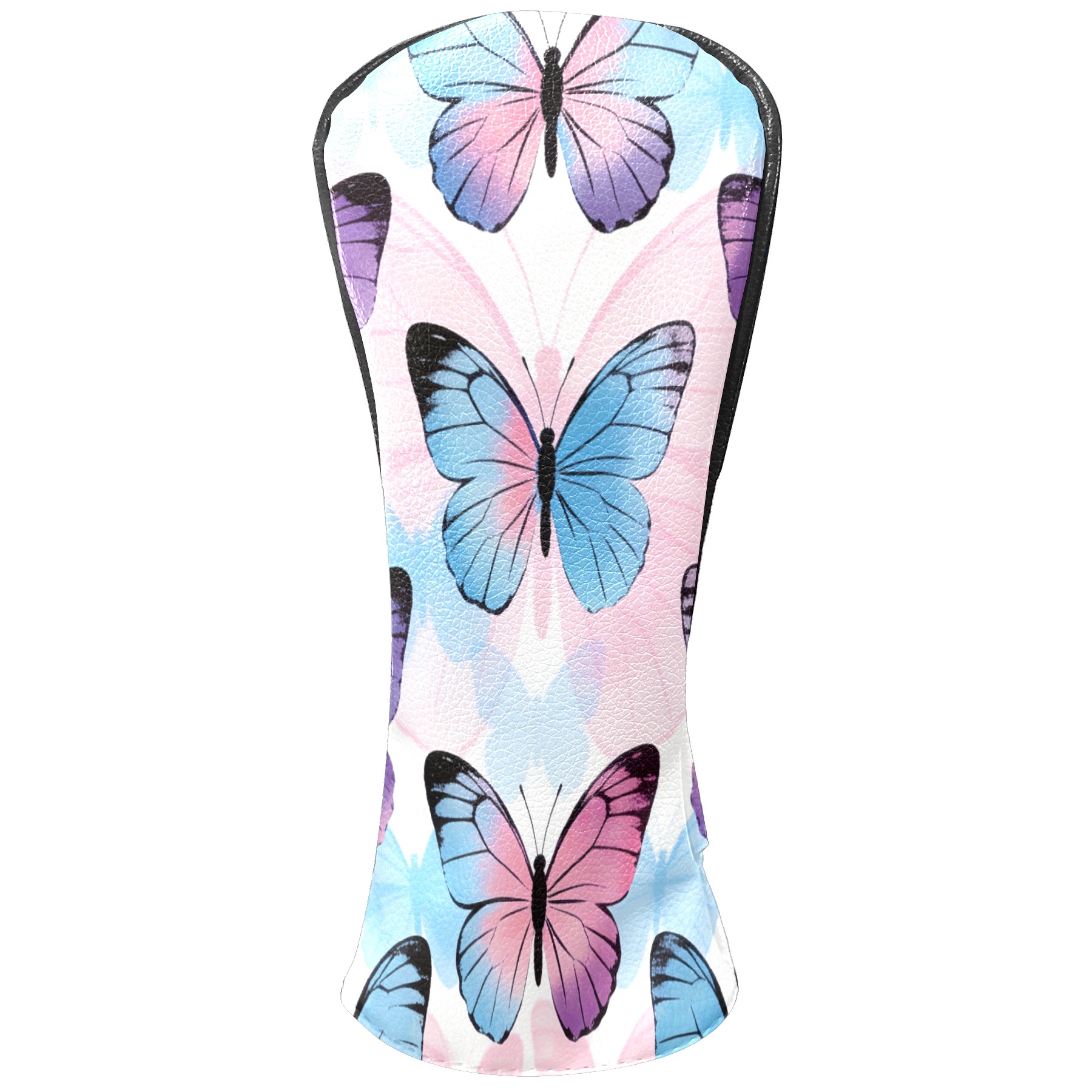 Golf Club Head Cover, High Quality PU Leather Driver and Wood Club Head Cover with Anti-Scratch Lining, Watercolor Butterfly 1 Universal Gift for Men and Women
