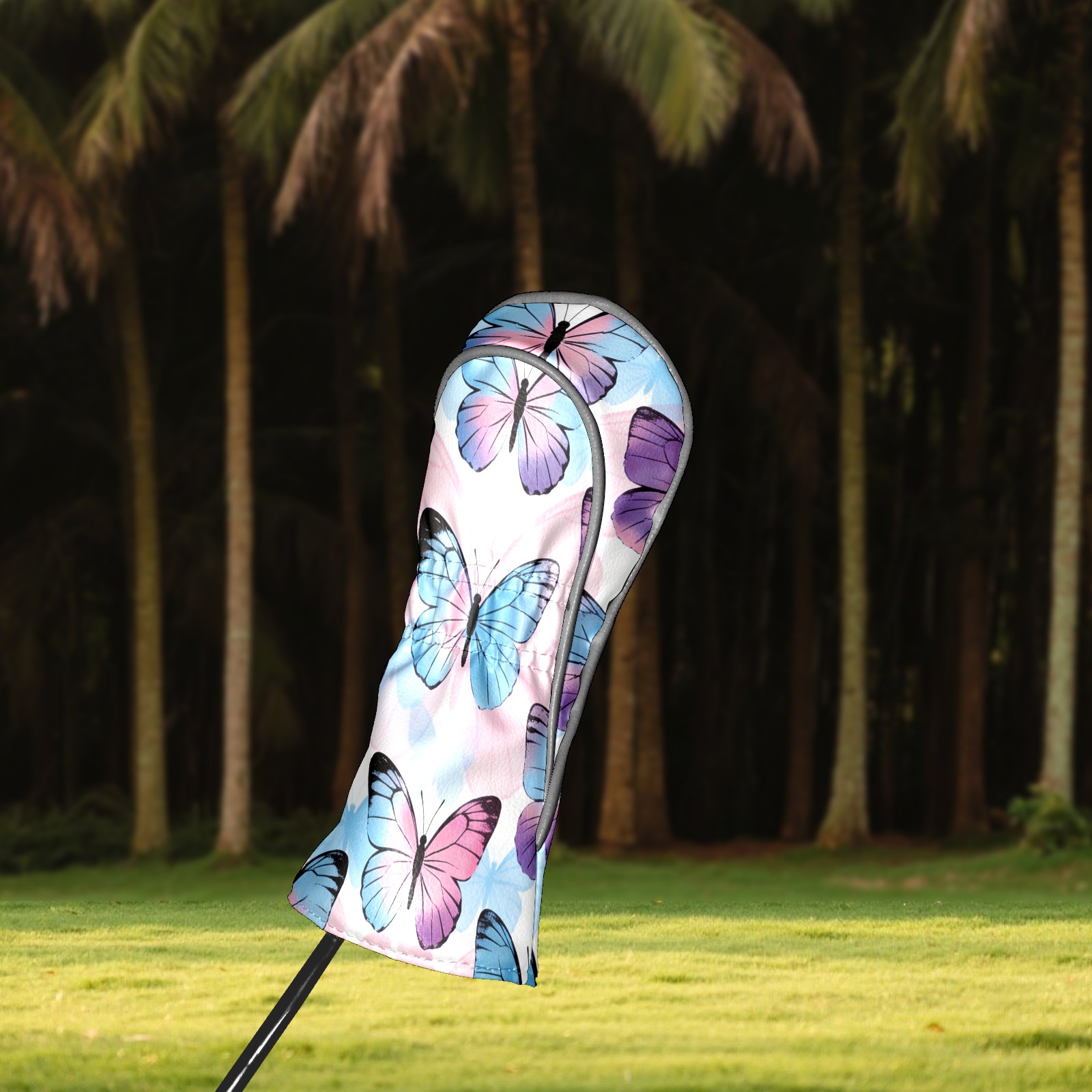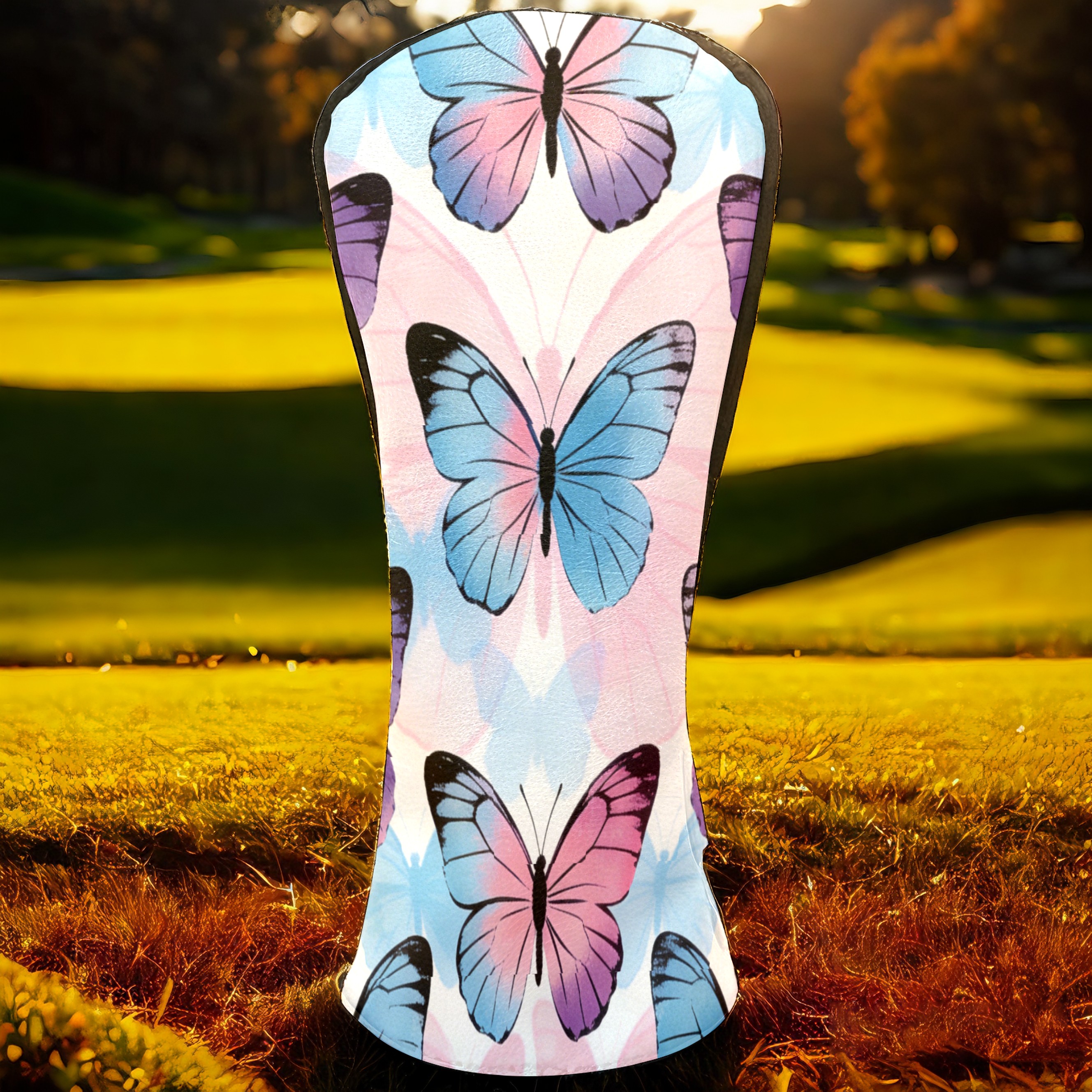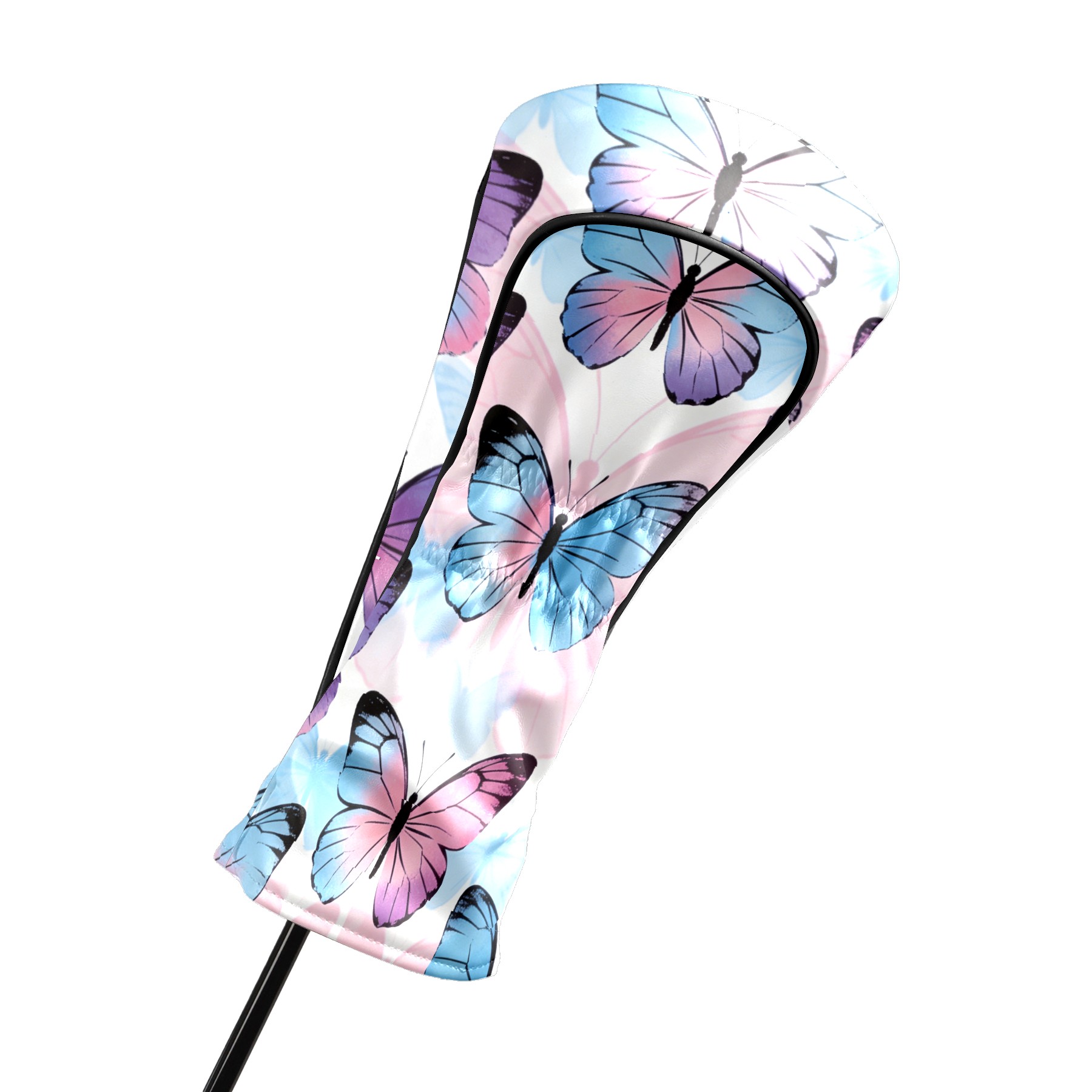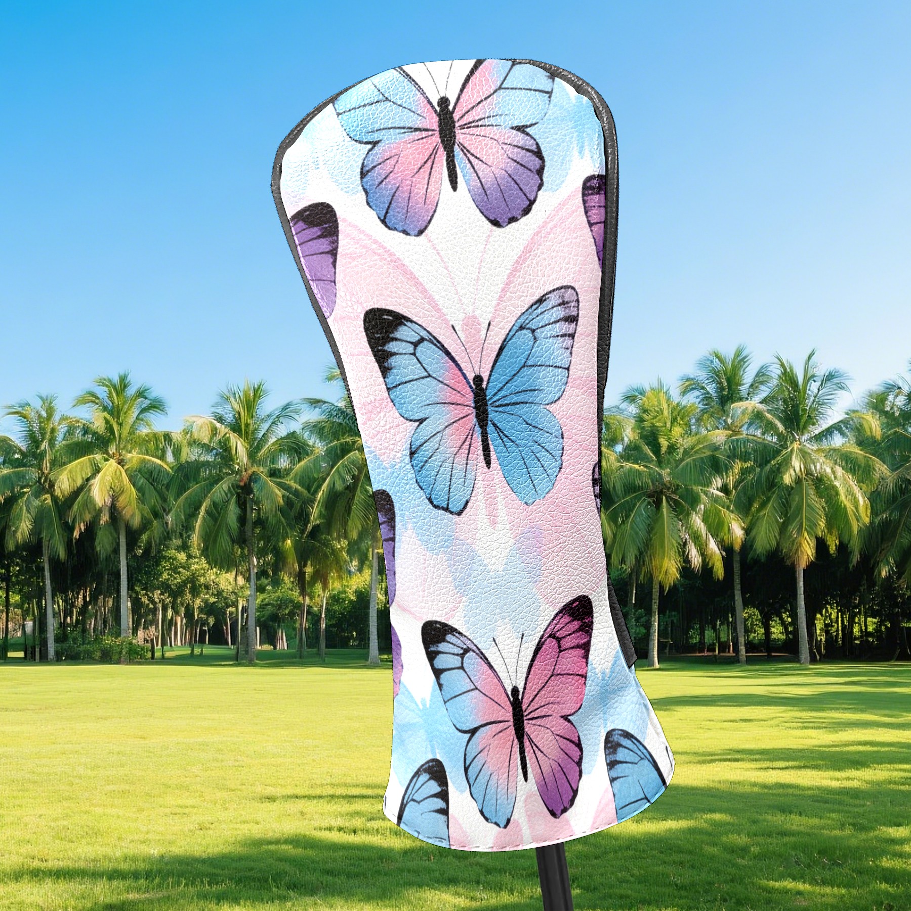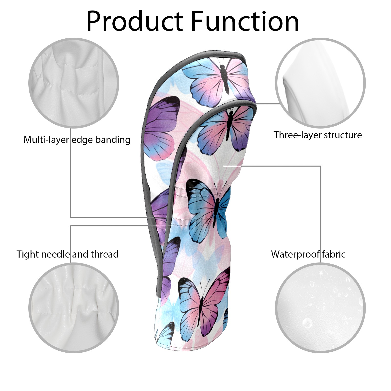 Golf Club Head Cover, High Quality PU Leather Driver and Wood Club Head Cover with Anti-Scratch Lining, Watercolor Butterfly 1 Universal Gift for Men and Women