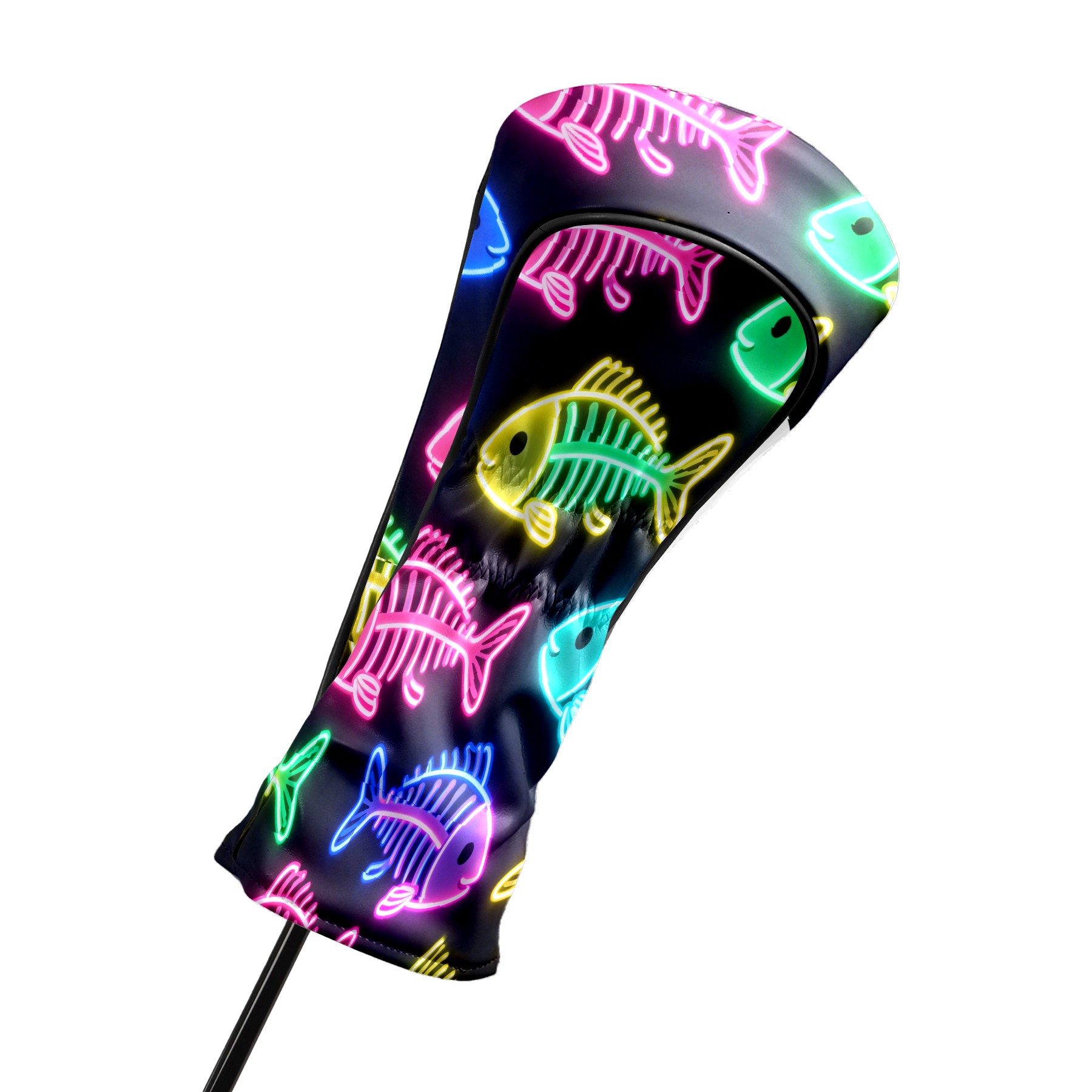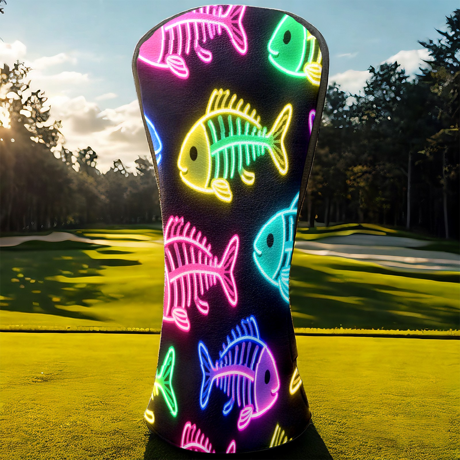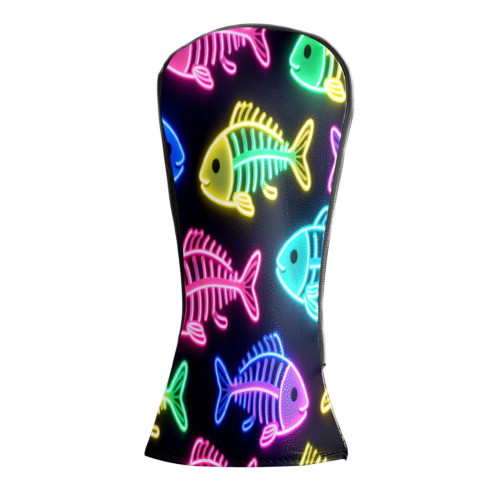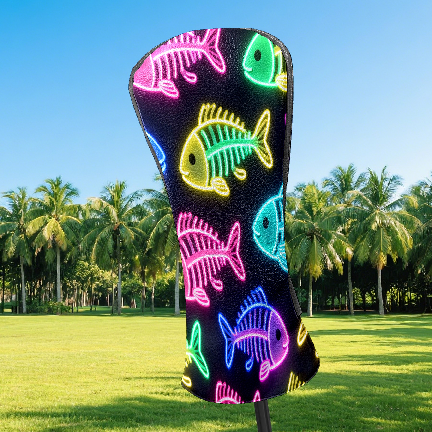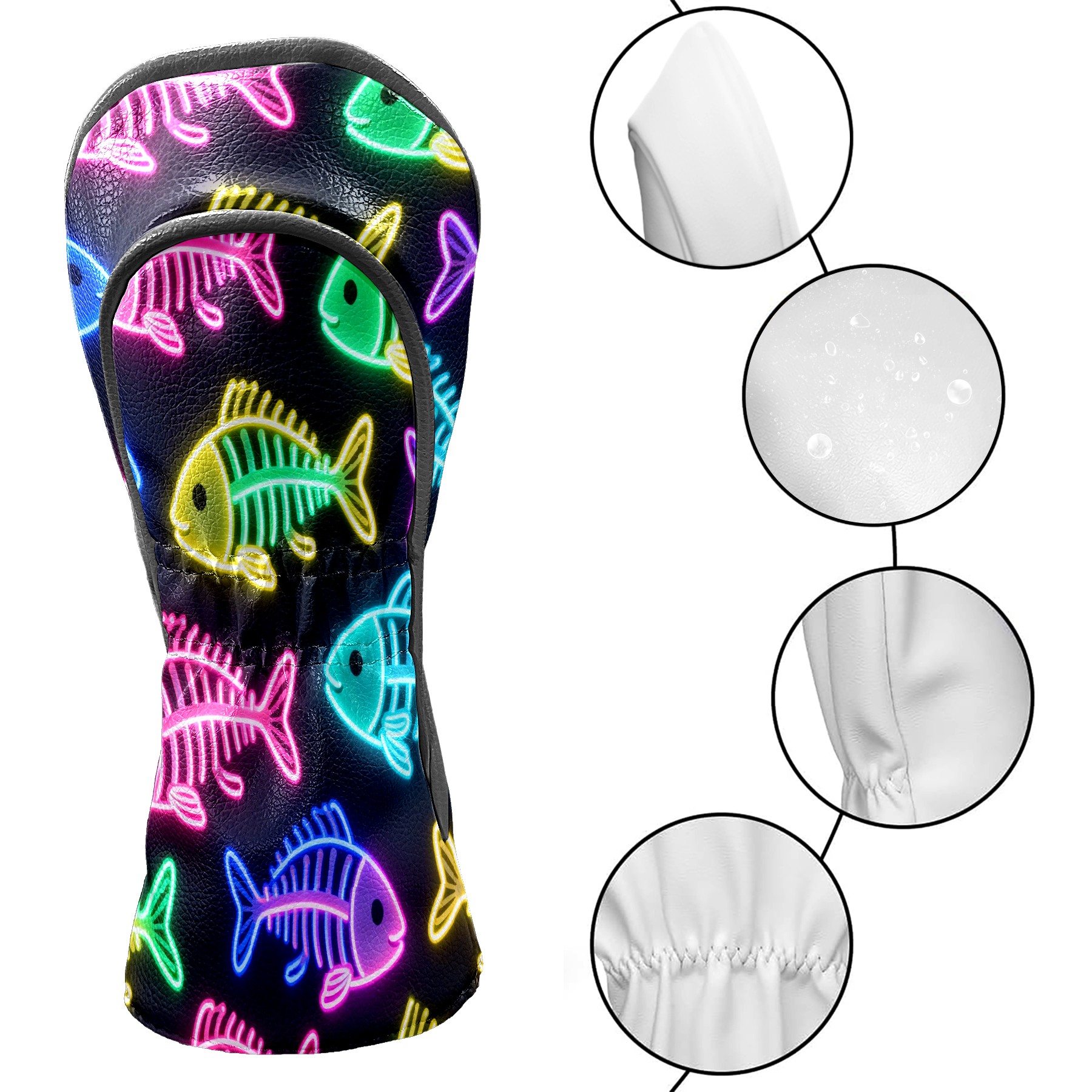 Golf Head Covers Leather Driver Head Cover, Premium Golf Club Covers with Anti-Scratch Lining for Women Men 1/3/5 Wood Cover for Golf Clubs (Neon Fish)