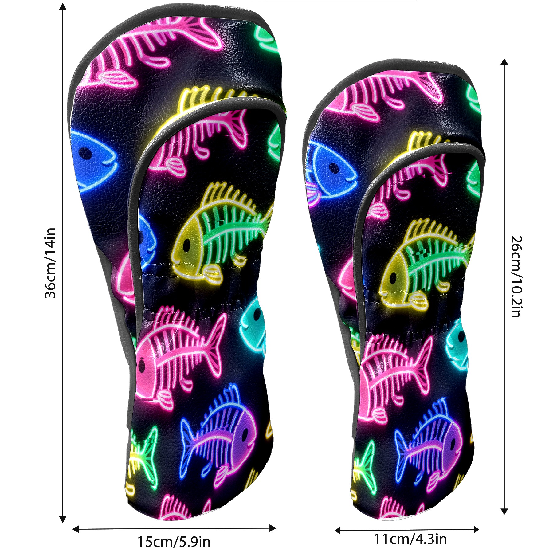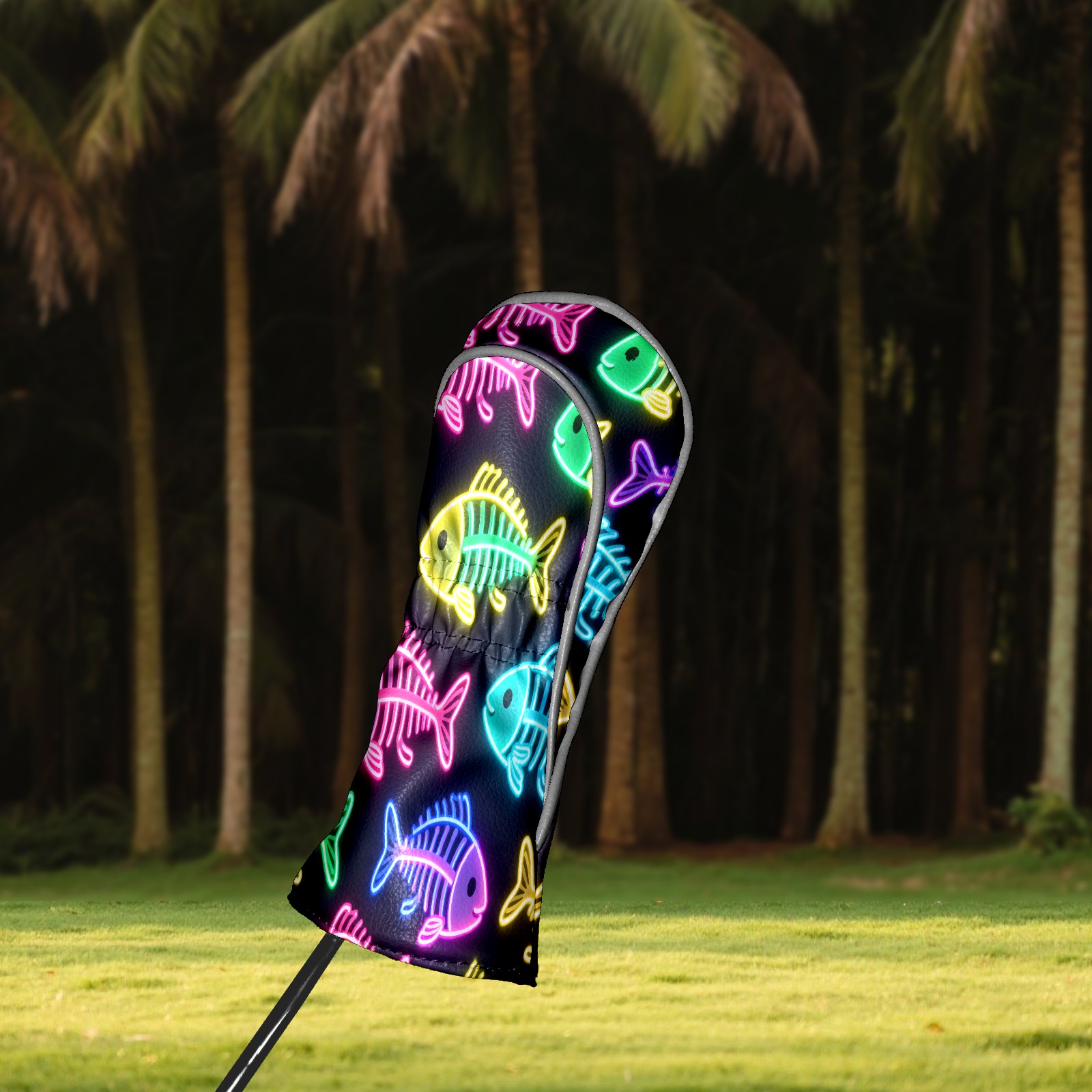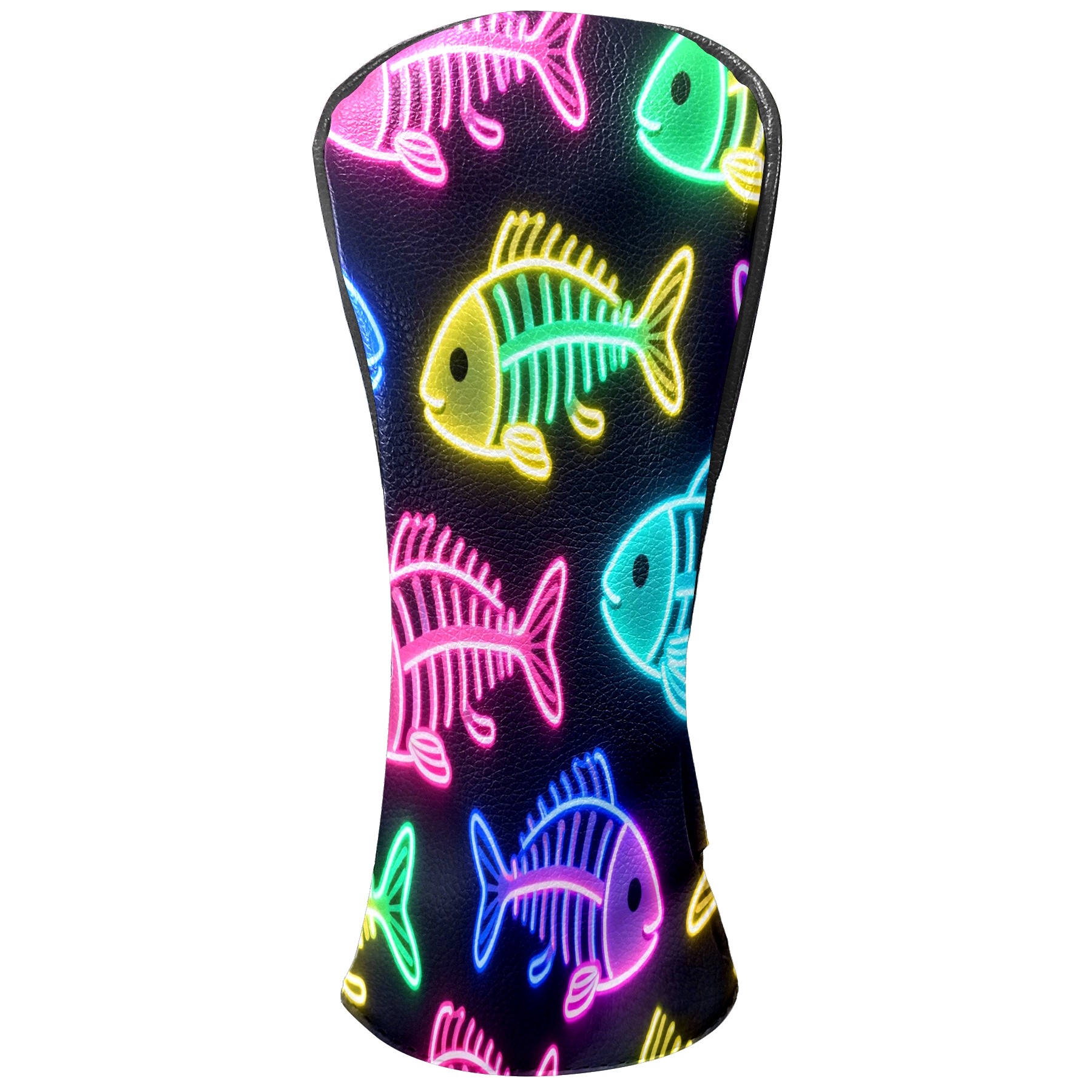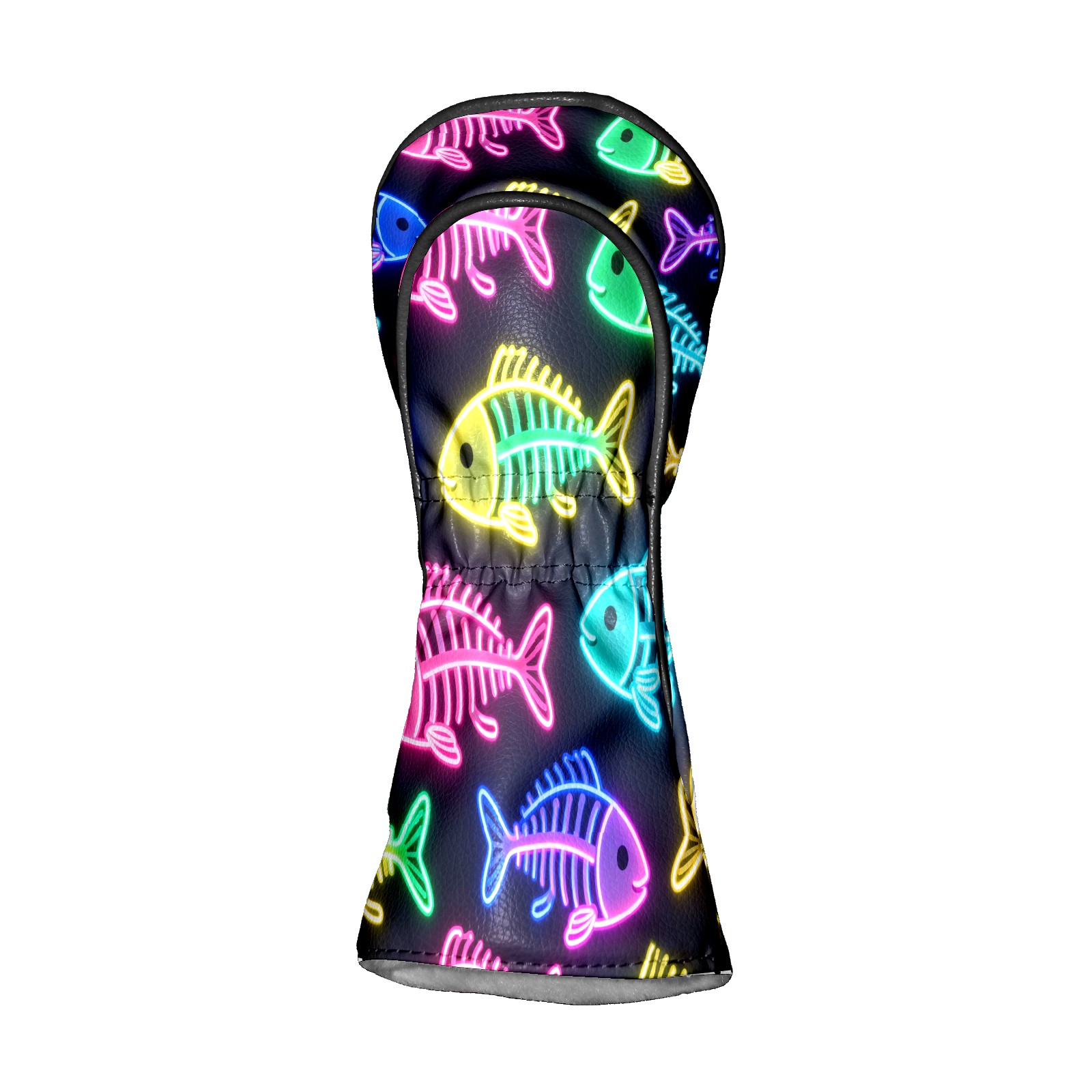 Golf Head Covers Leather Driver Head Cover, Premium Golf Club Covers with Anti-Scratch Lining for Women Men 1/3/5 Wood Cover for Golf Clubs (Neon Fish)