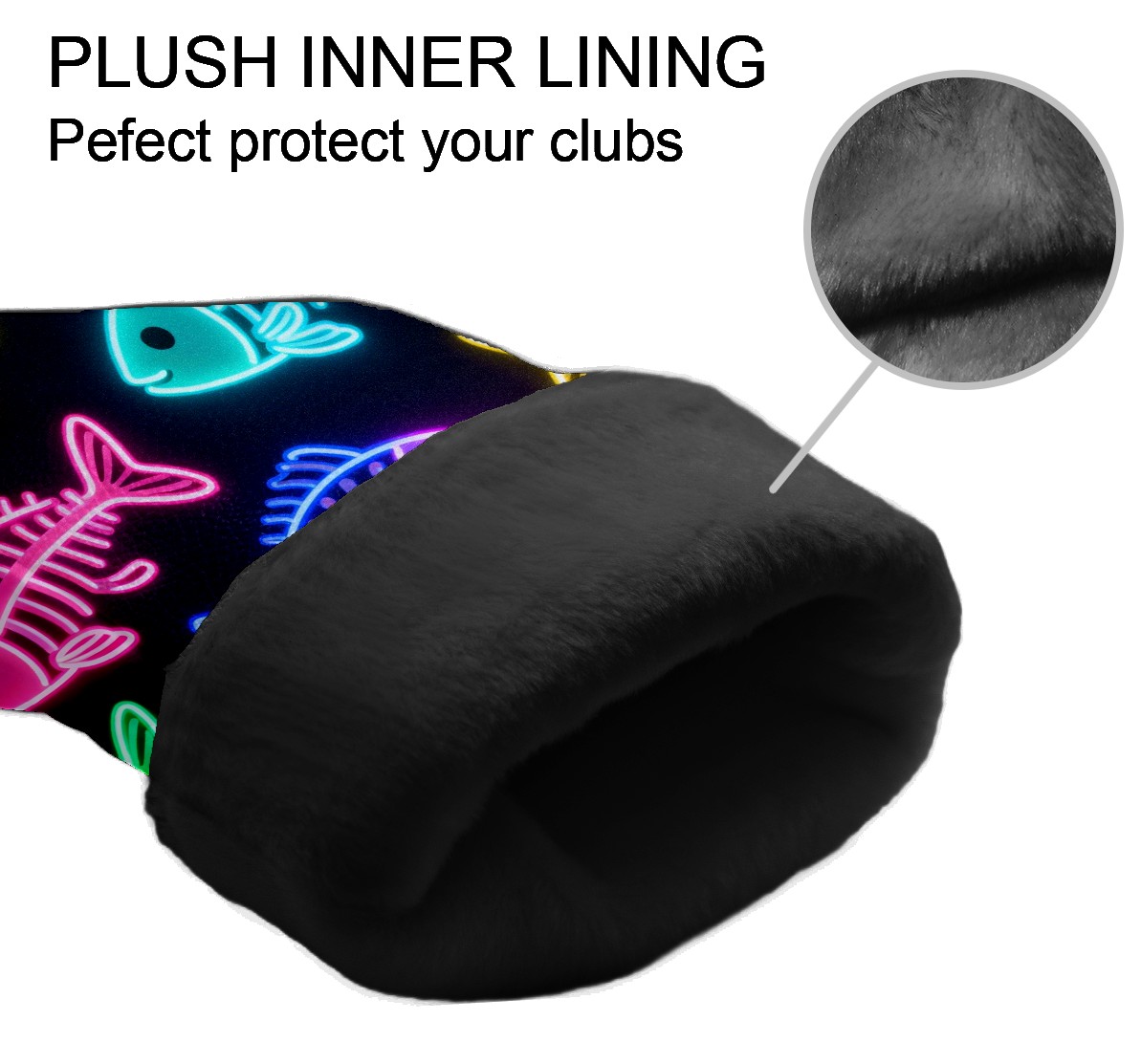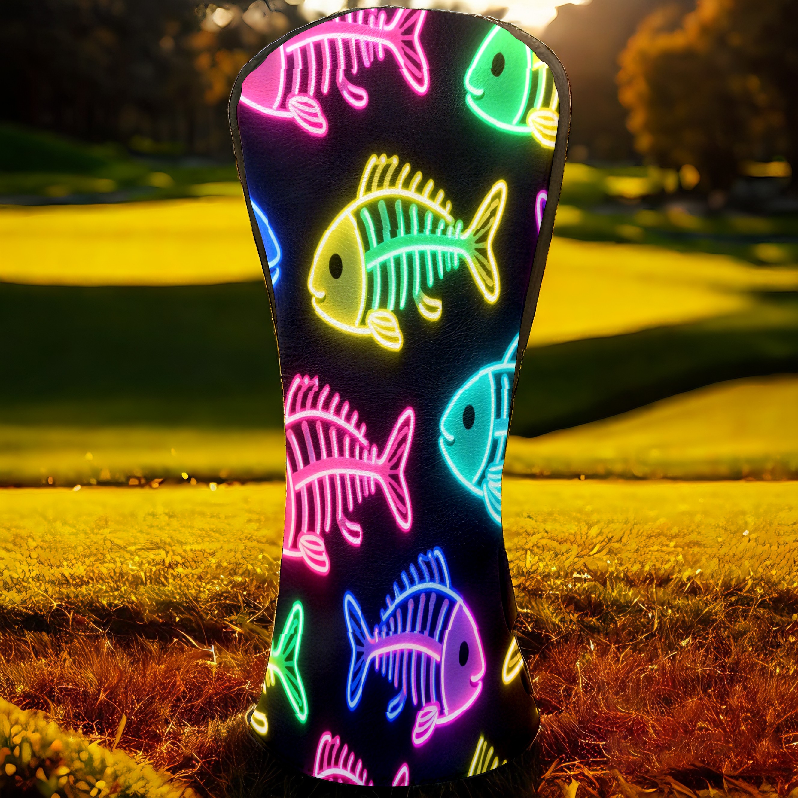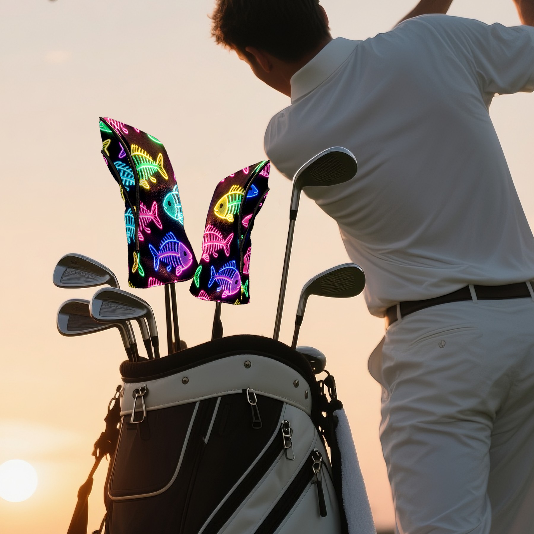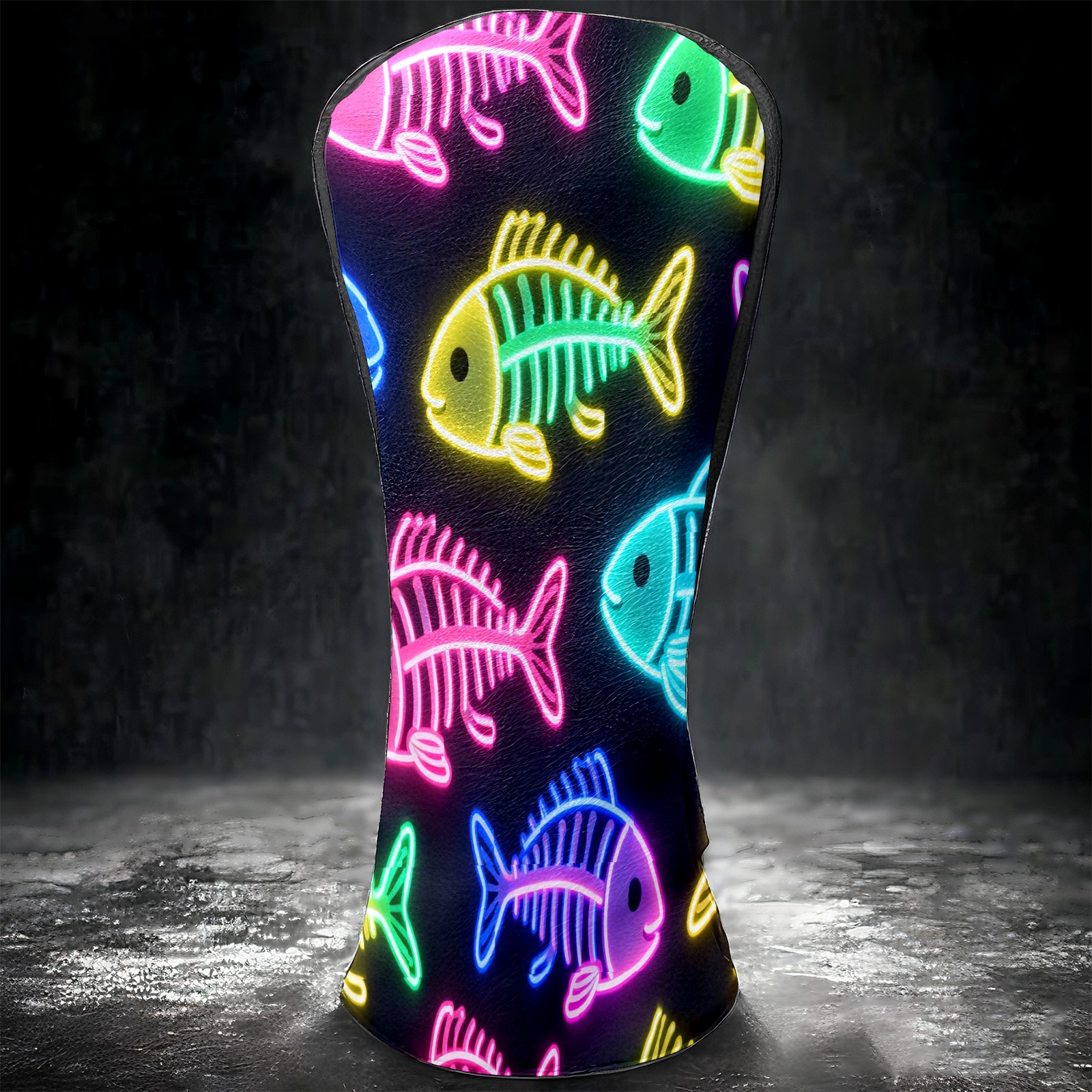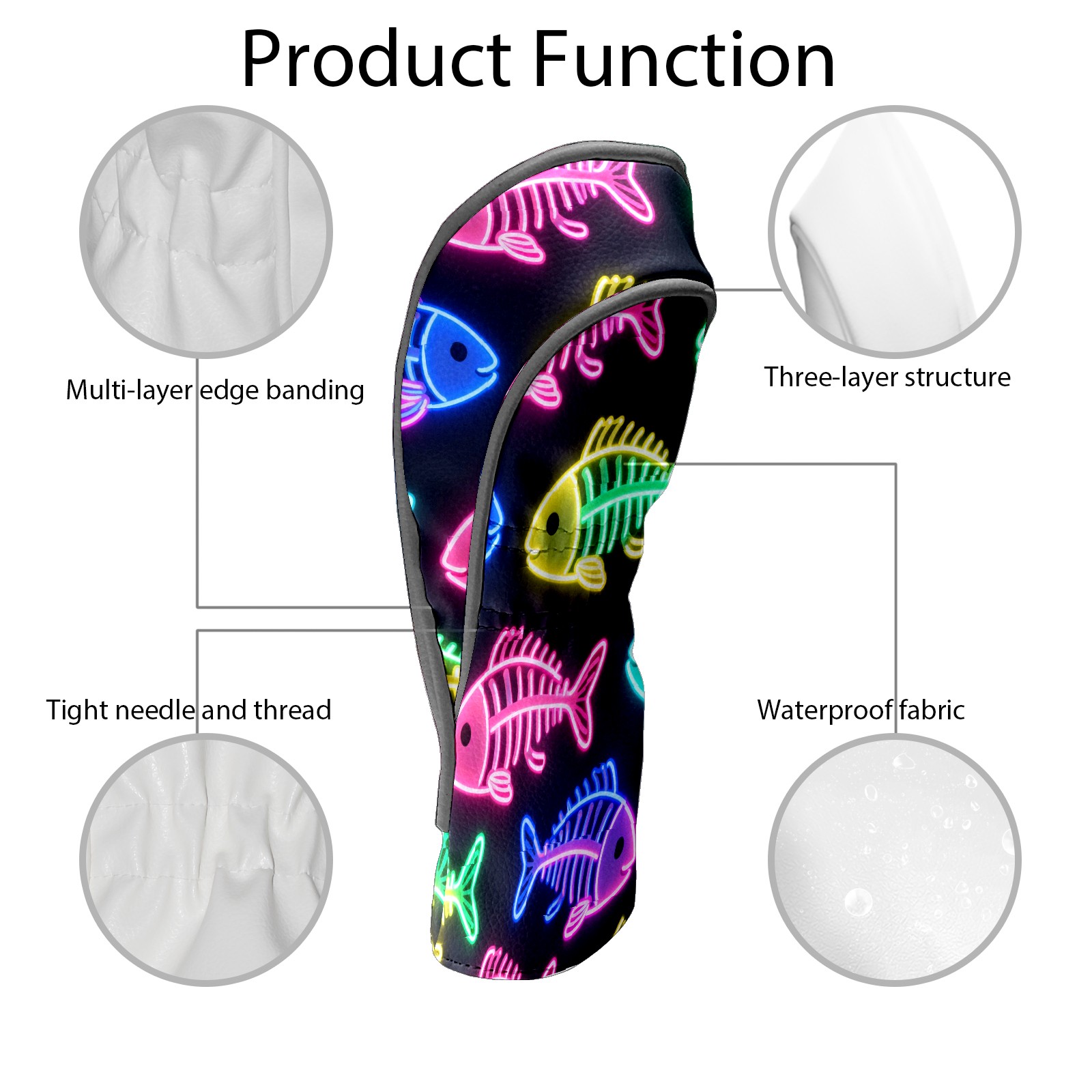 Golf Head Covers Leather Driver Head Cover, Premium Golf Club Covers with Anti-Scratch Lining for Women Men 1/3/5 Wood Cover for Golf Clubs (Neon Fish)