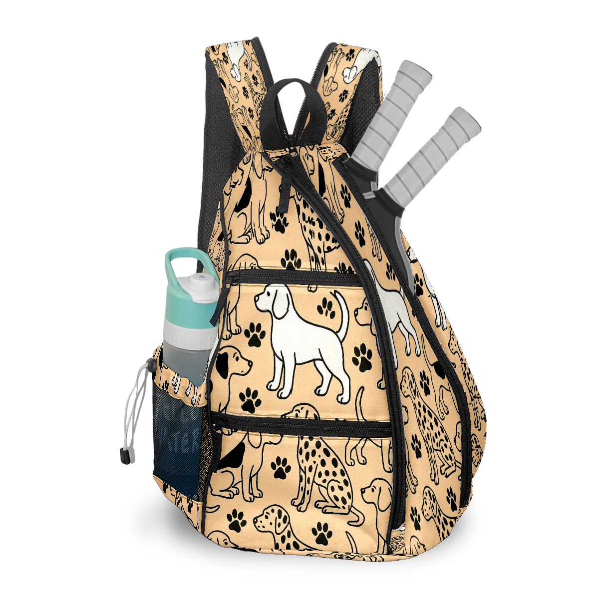 Pickleball Backpack - Convertible Shoulder Straps, Lightweight Breathable Fun Dog Leopard Brown Bag, Fits 2 Paddles, Balls & Gear (45x35x15cm)