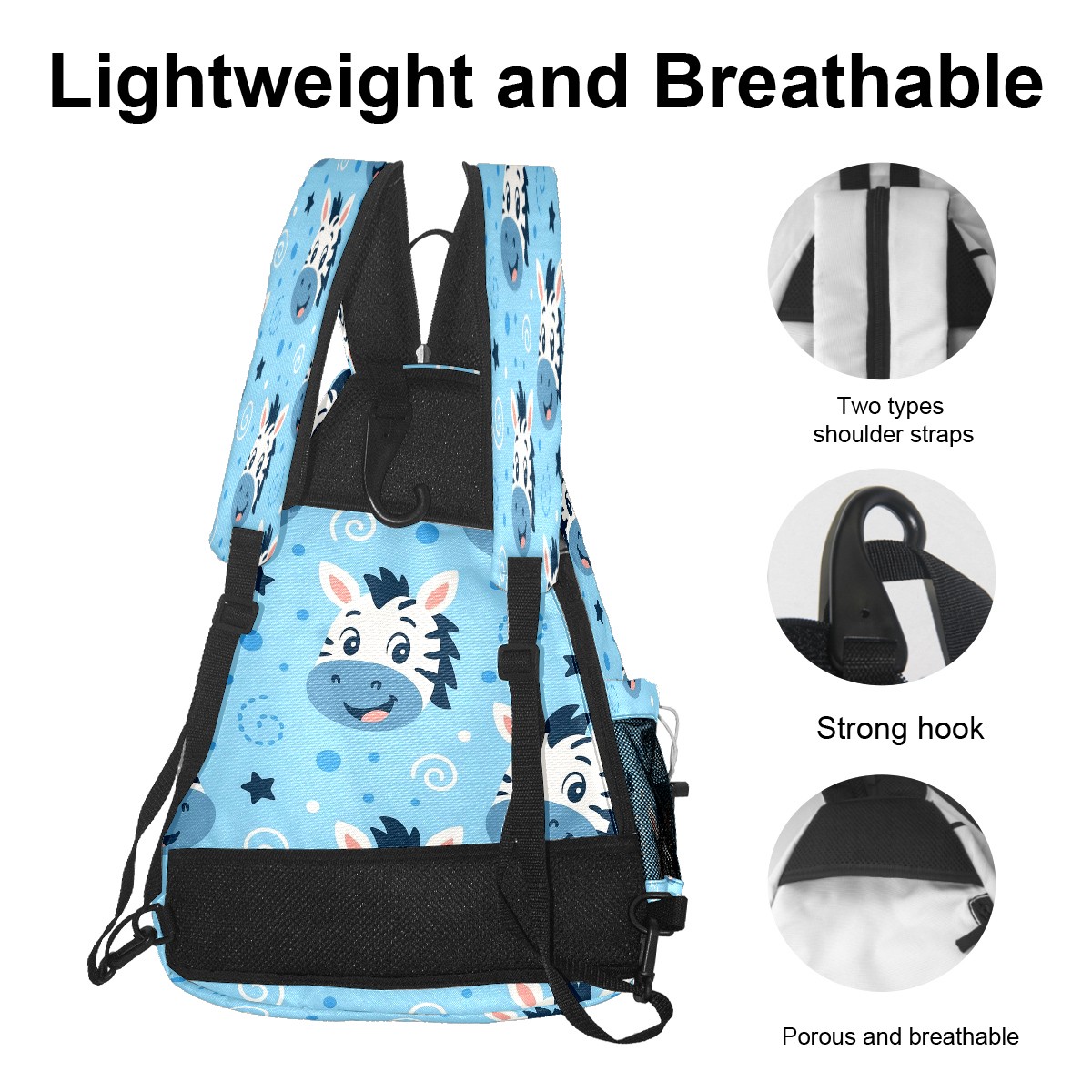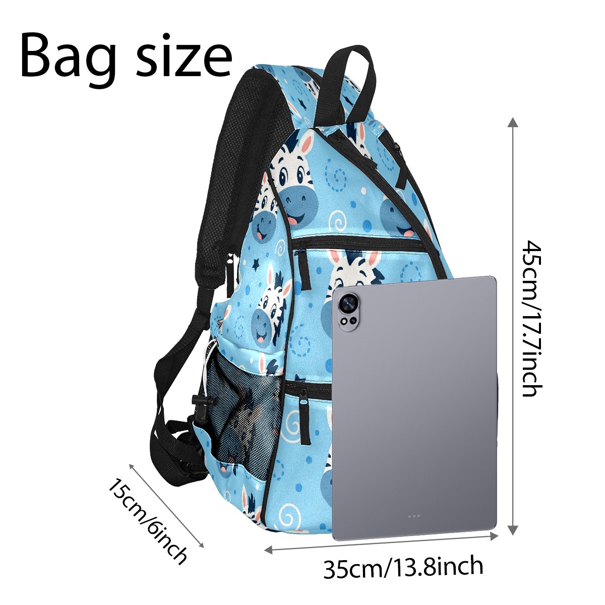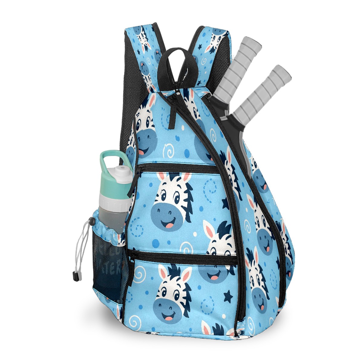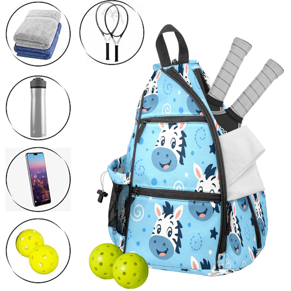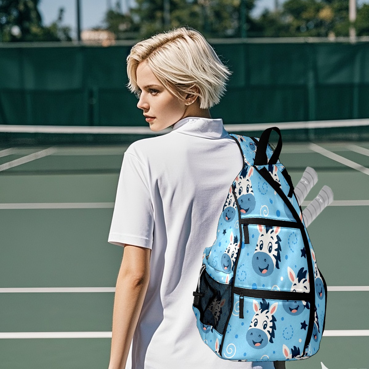 Pickleball Backpack - Convertible Shoulder Straps, Lightweight Breathable Cute Zebra Blue Bag, Fits 2 Paddles, Balls & Gear (45x35x15cm)