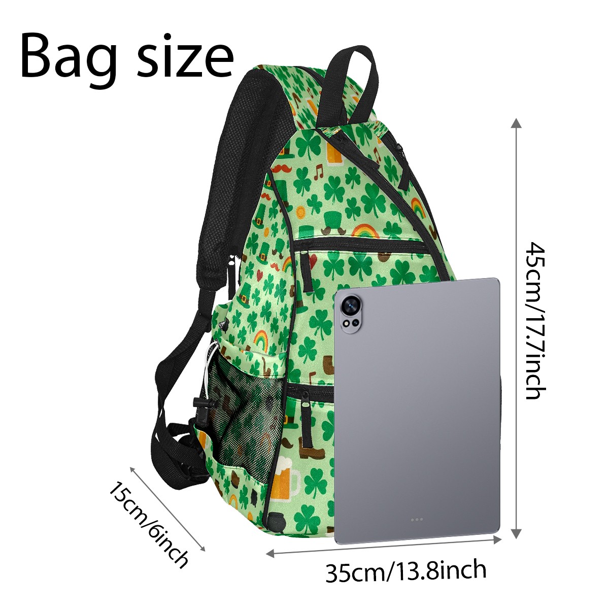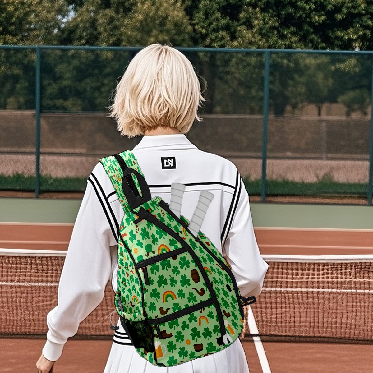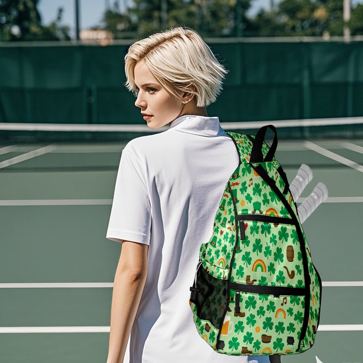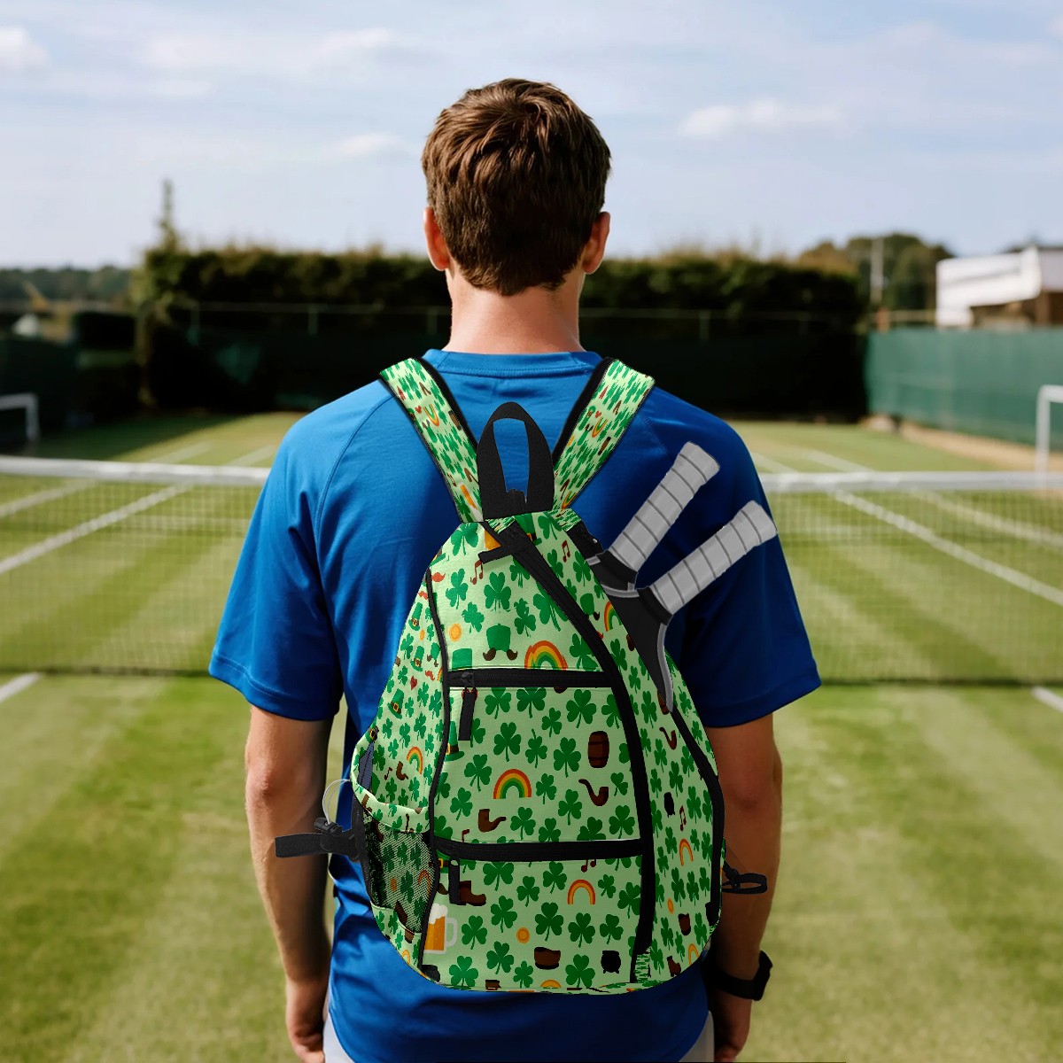 Pickleball Backpack - Convertible Shoulder Straps, Lightweight Breathable Lucky Clover Green Bag, Fits 2 Paddles, Balls & Gear (45x35x15cm)