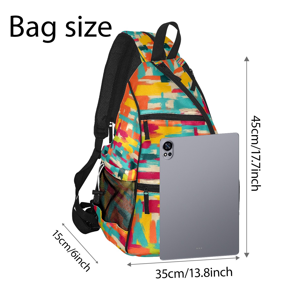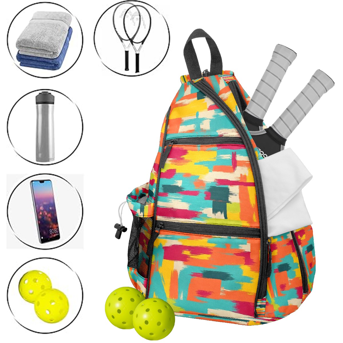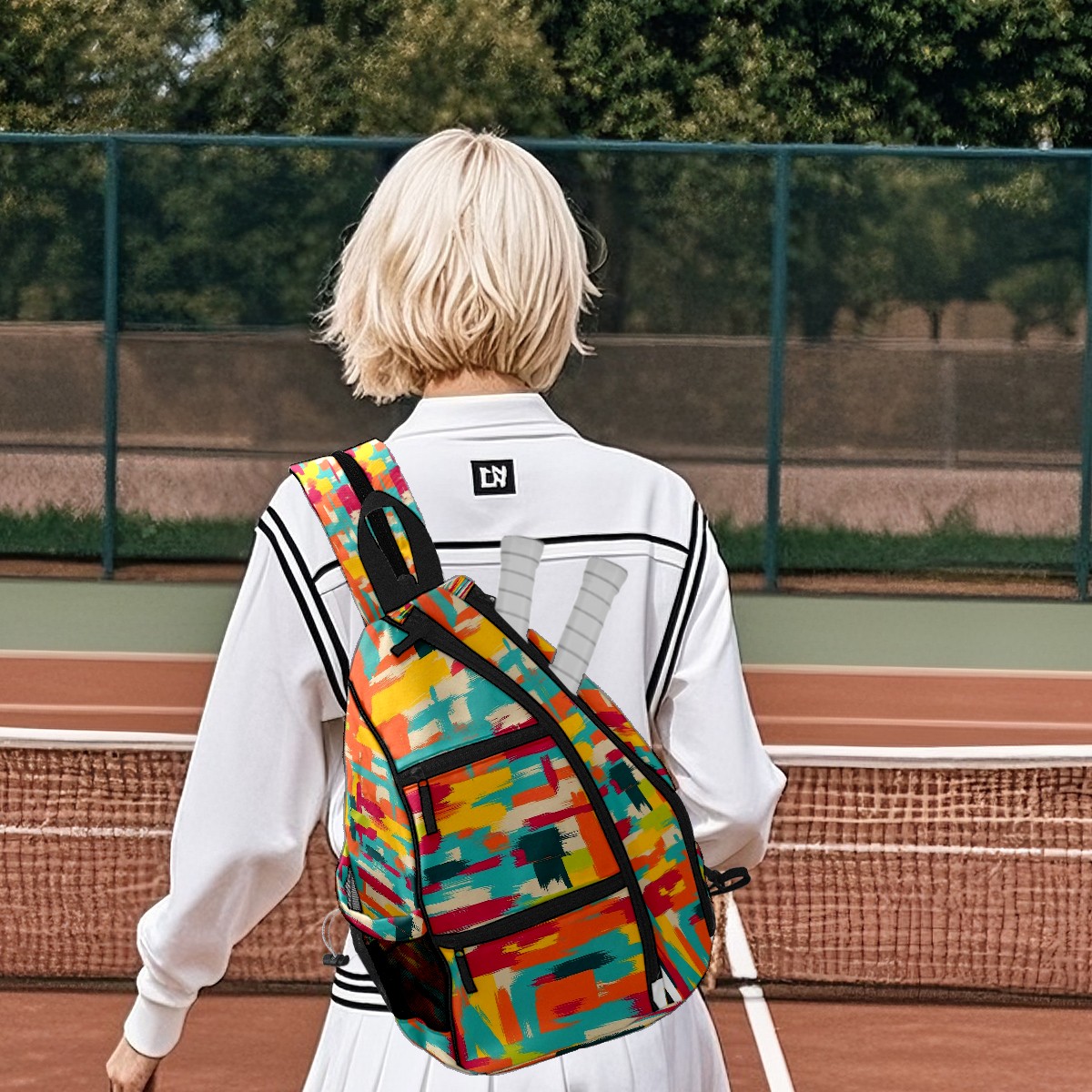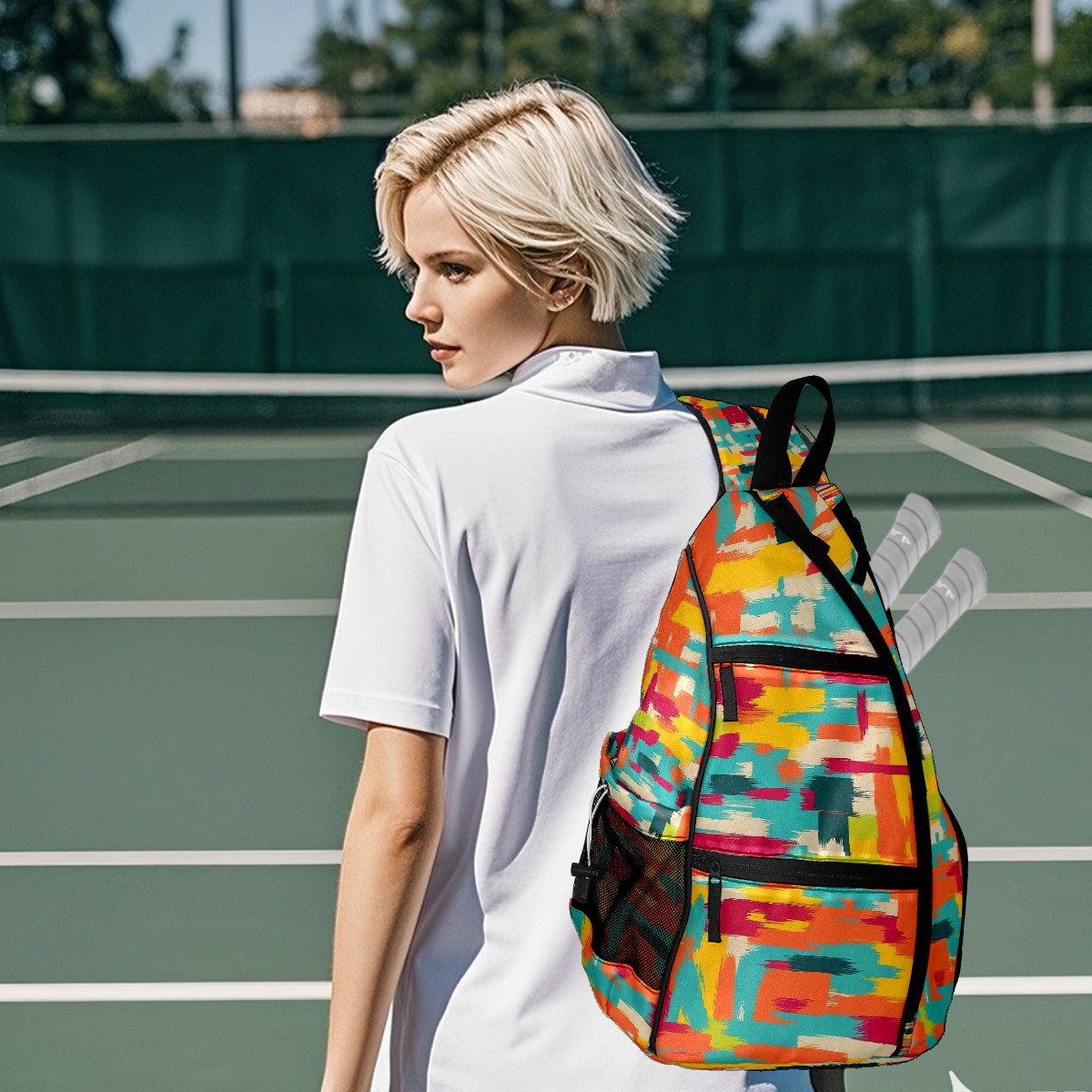 Pickleball Backpack - Convertible Shoulder Straps, Lightweight Breathable Vibrant Brushstroke Multi Bag, Fits 2 Paddles, Balls & Gear (45x35x15cm)