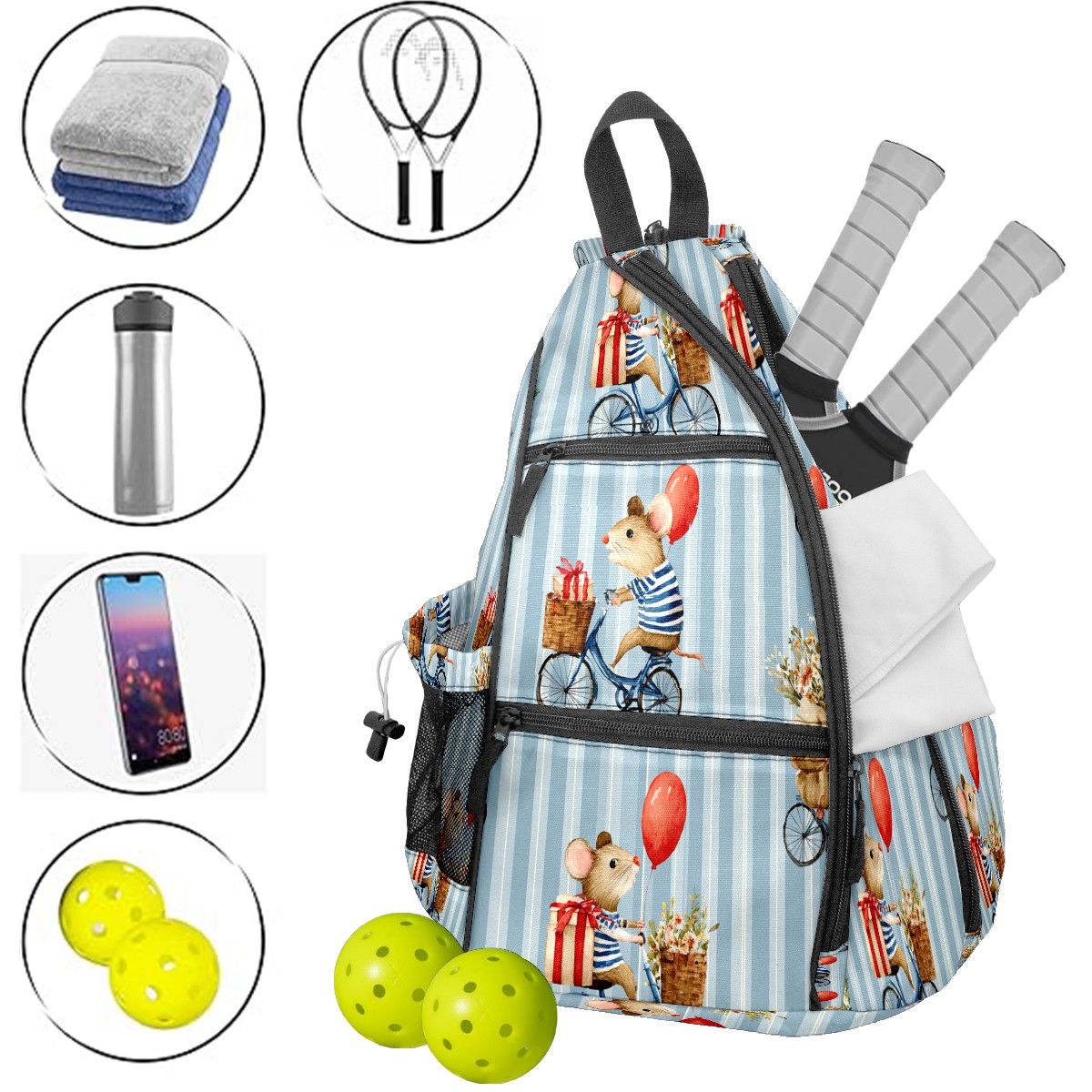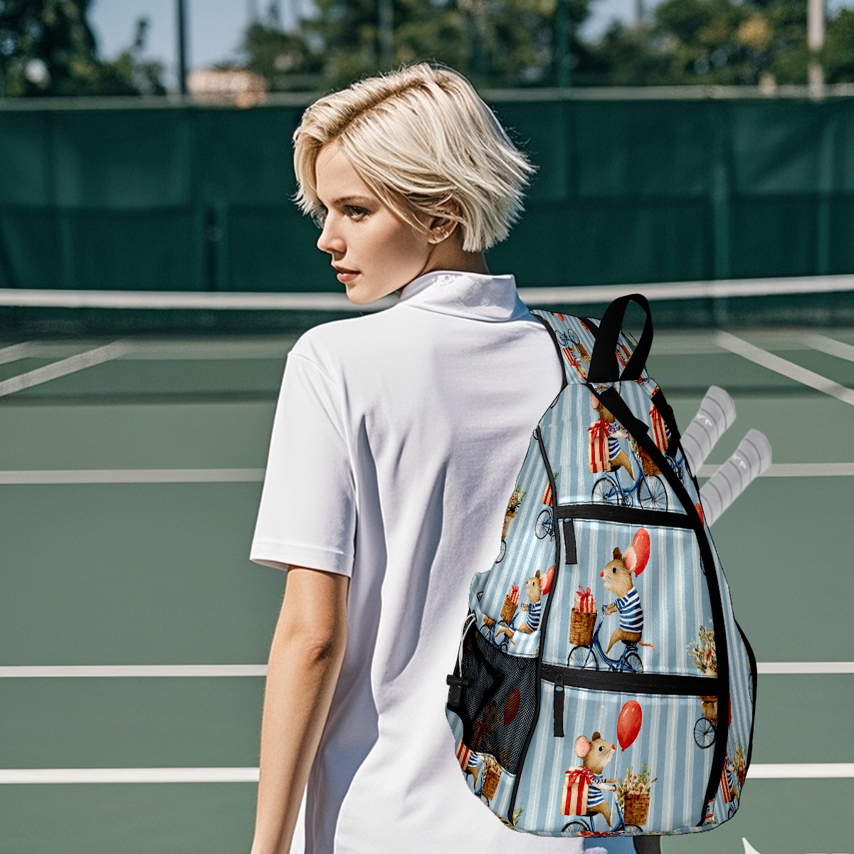 Pickleball Backpack - Convertible Shoulder Straps, Lightweight Breathable Warm Whimsy Blue Bag, Fits 2 Paddles, Balls & Gear (45x35x15cm)