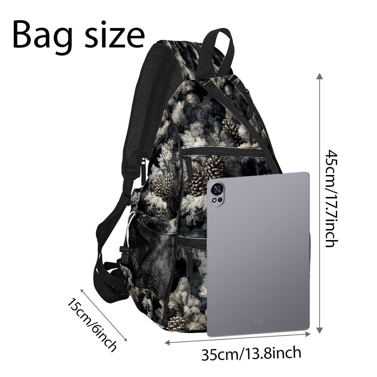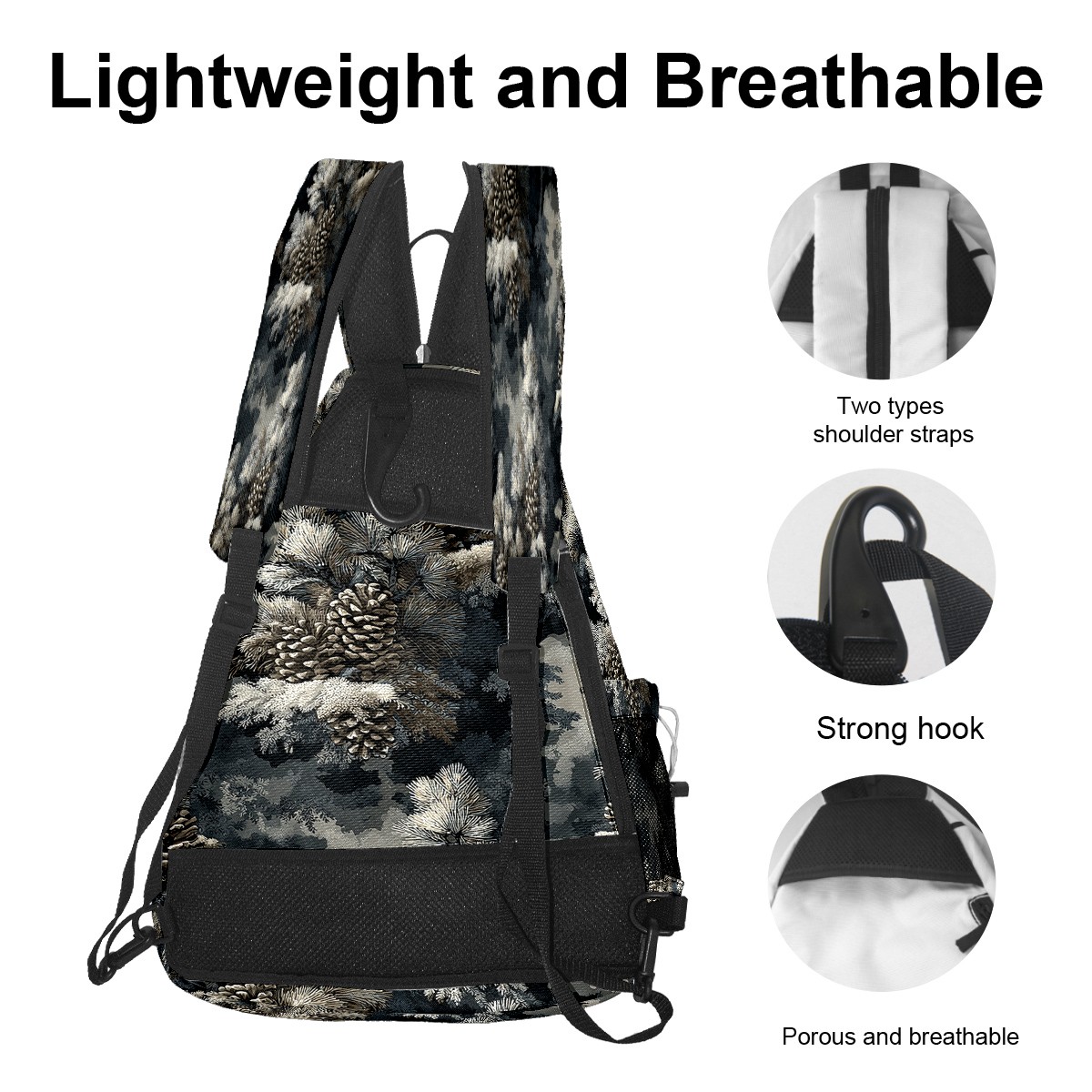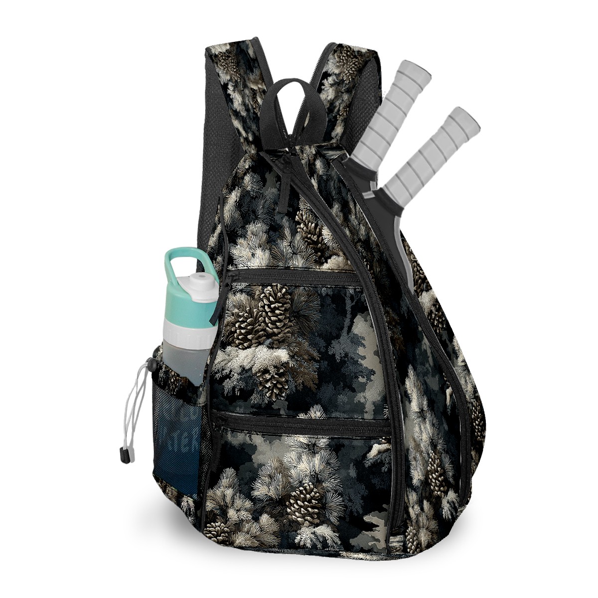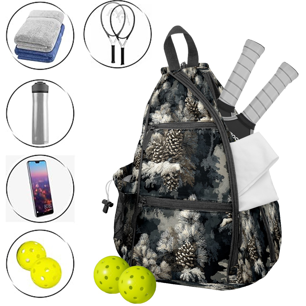 Pickleball Backpack - Convertible Shoulder Straps, Lightweight Breathable Quiet Pine Branch Gray Bag, Fits 2 Paddles, Balls & Gear (45x35x15cm)