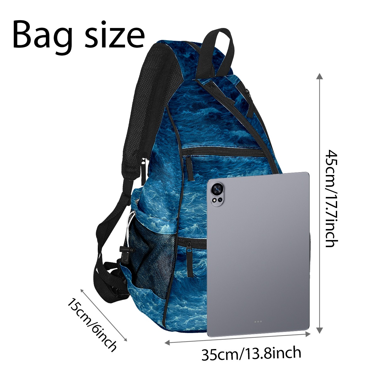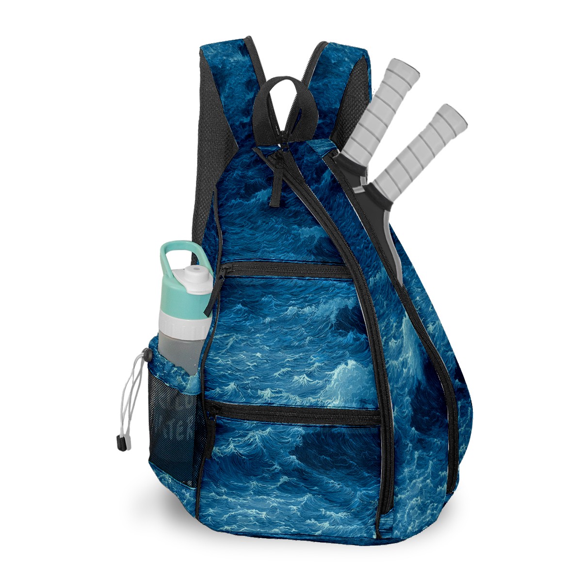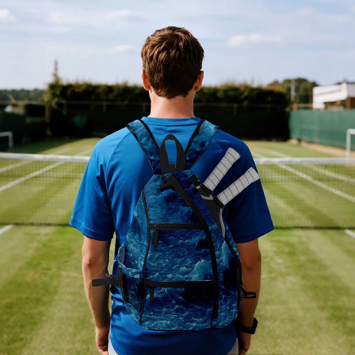 Pickleball Backpack - Convertible Shoulder Straps, Lightweight Breathable Turbo Wave Blue Bag, Fits 2 Paddles, Balls & Gear (45x35x15cm)