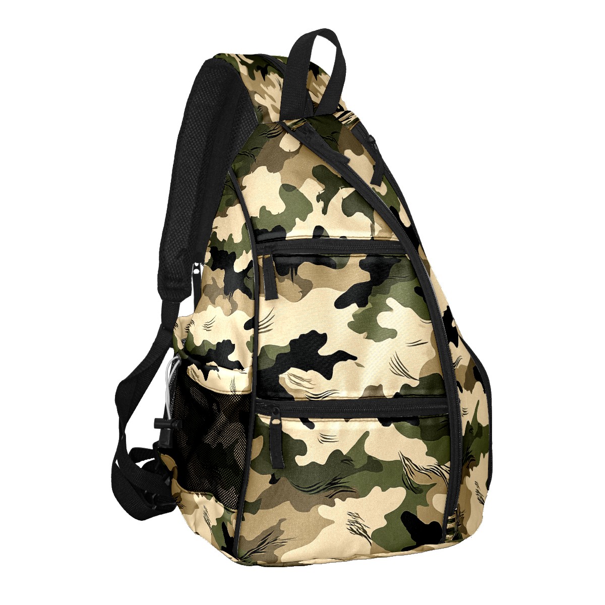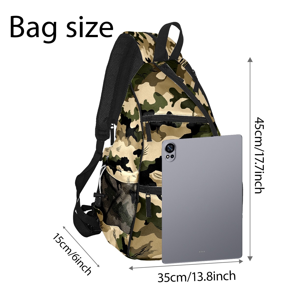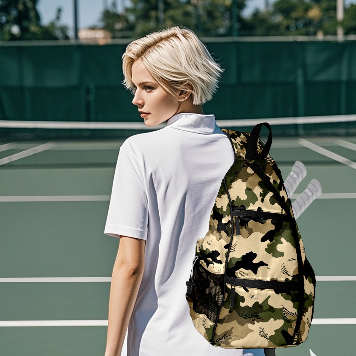 Pickleball Backpack - Convertible Shoulder Straps, Lightweight Breathable Simple Camouflage Brown Bag, Fits 2 Paddles, Balls & Gear (45x35x15cm)