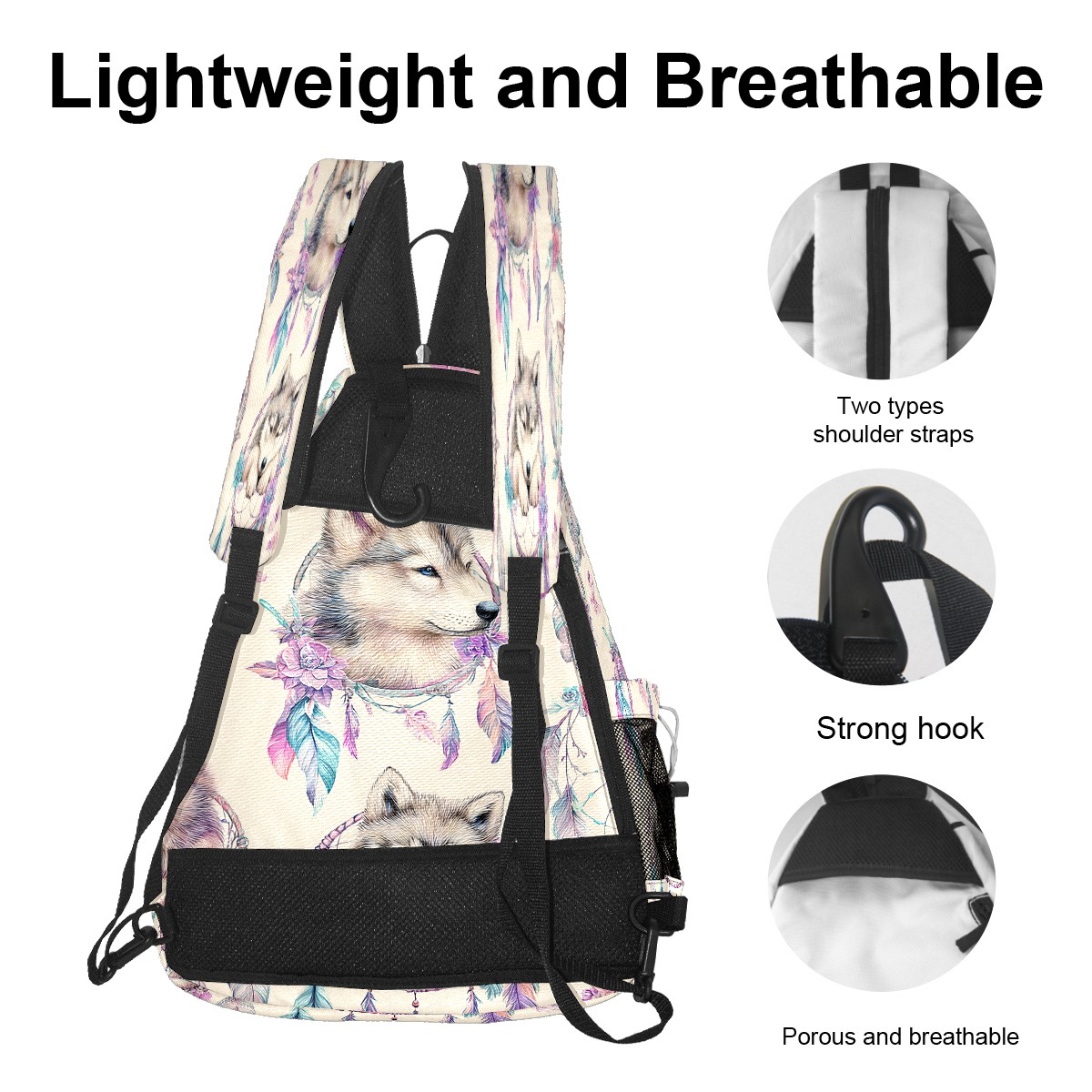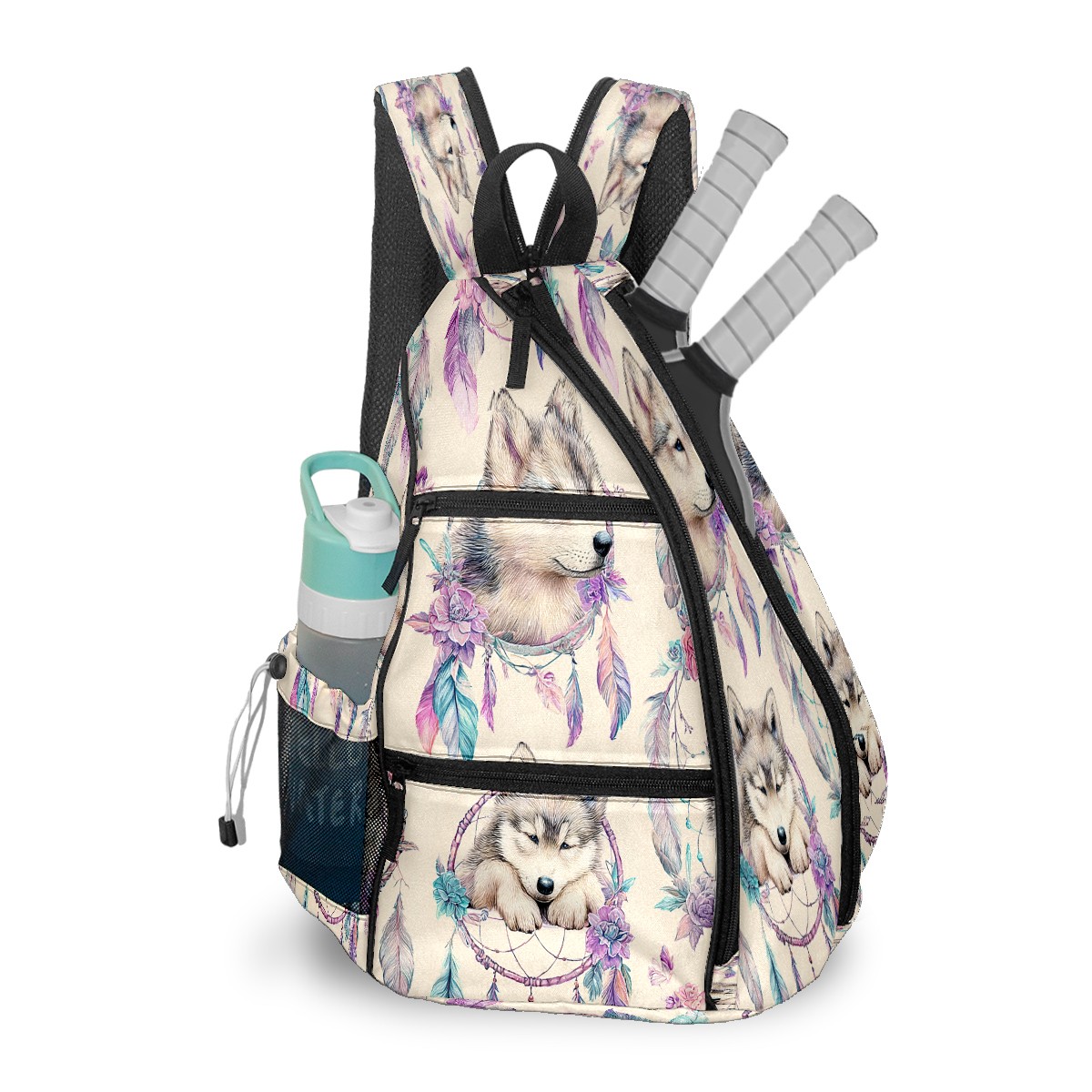 Pickleball Backpack - Convertible Shoulder Straps, Lightweight Breathable Aesthetic Wolf Purple Bag, Fits 2 Paddles, Balls & Gear (45x35x15cm)