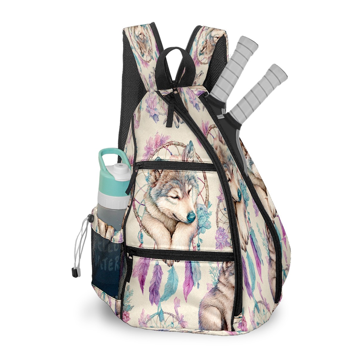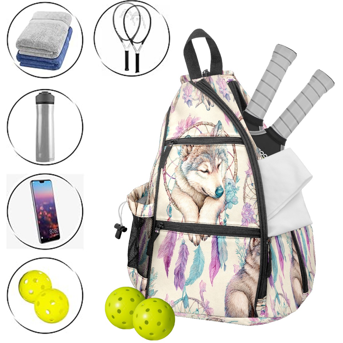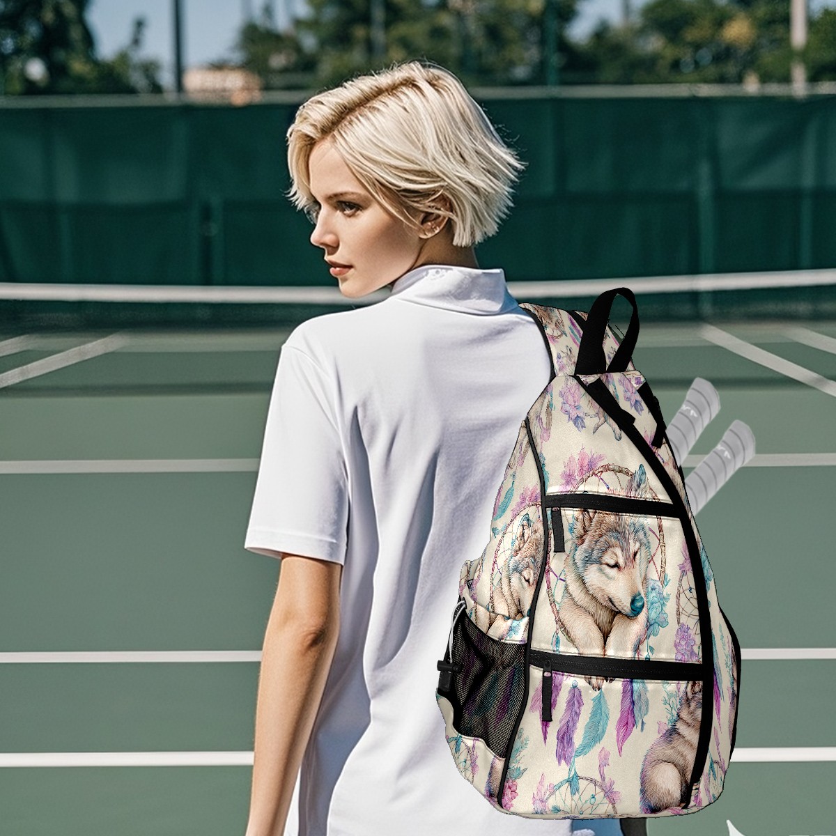 Pickleball Backpack - Convertible Shoulder Straps, Lightweight Breathable Gentle Wolf Beige Bag, Fits 2 Paddles, Balls & Gear (45x35x15cm)