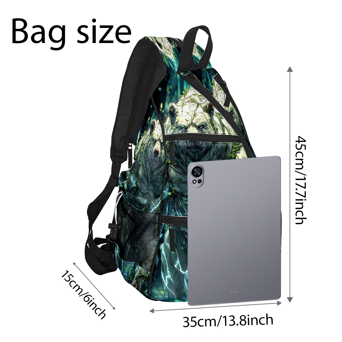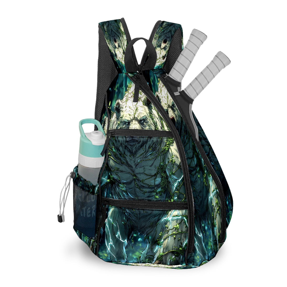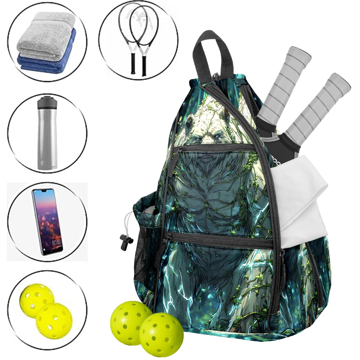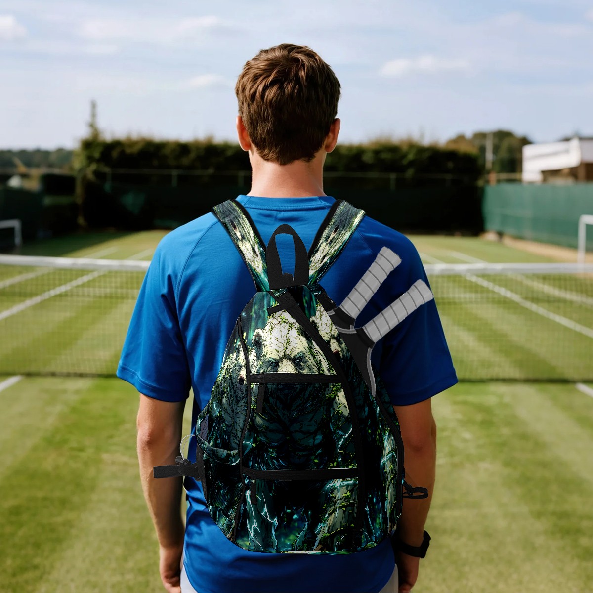 Pickleball Backpack - Convertible Shoulder Straps, Lightweight Breathable Ancient Bear Green Bag, Fits 2 Paddles, Balls & Gear (45x35x15cm)
