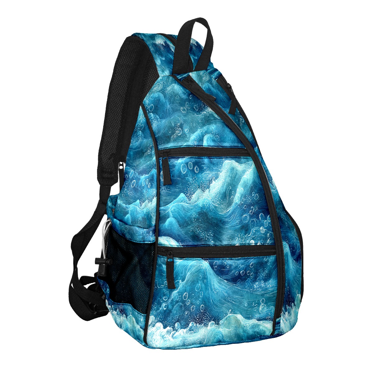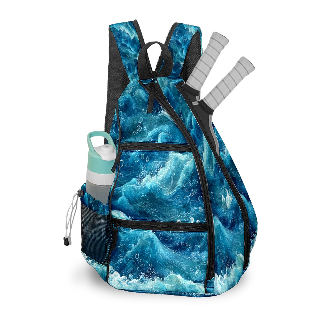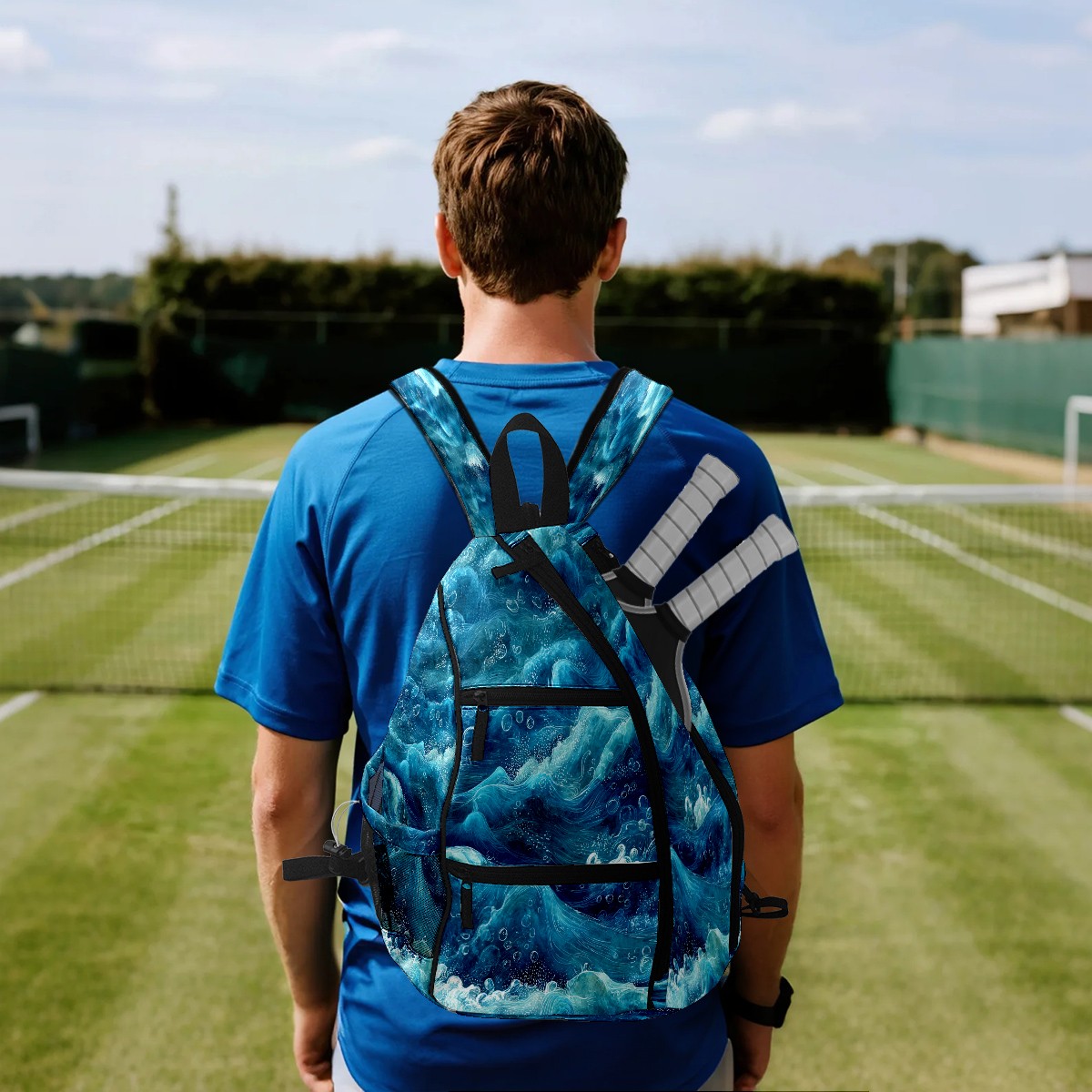 Pickleball Backpack - Convertible Shoulder Straps, Lightweight Breathable Turbo Wave Blue Bag, Fits 2 Paddles, Balls & Gear (45x35x15cm)