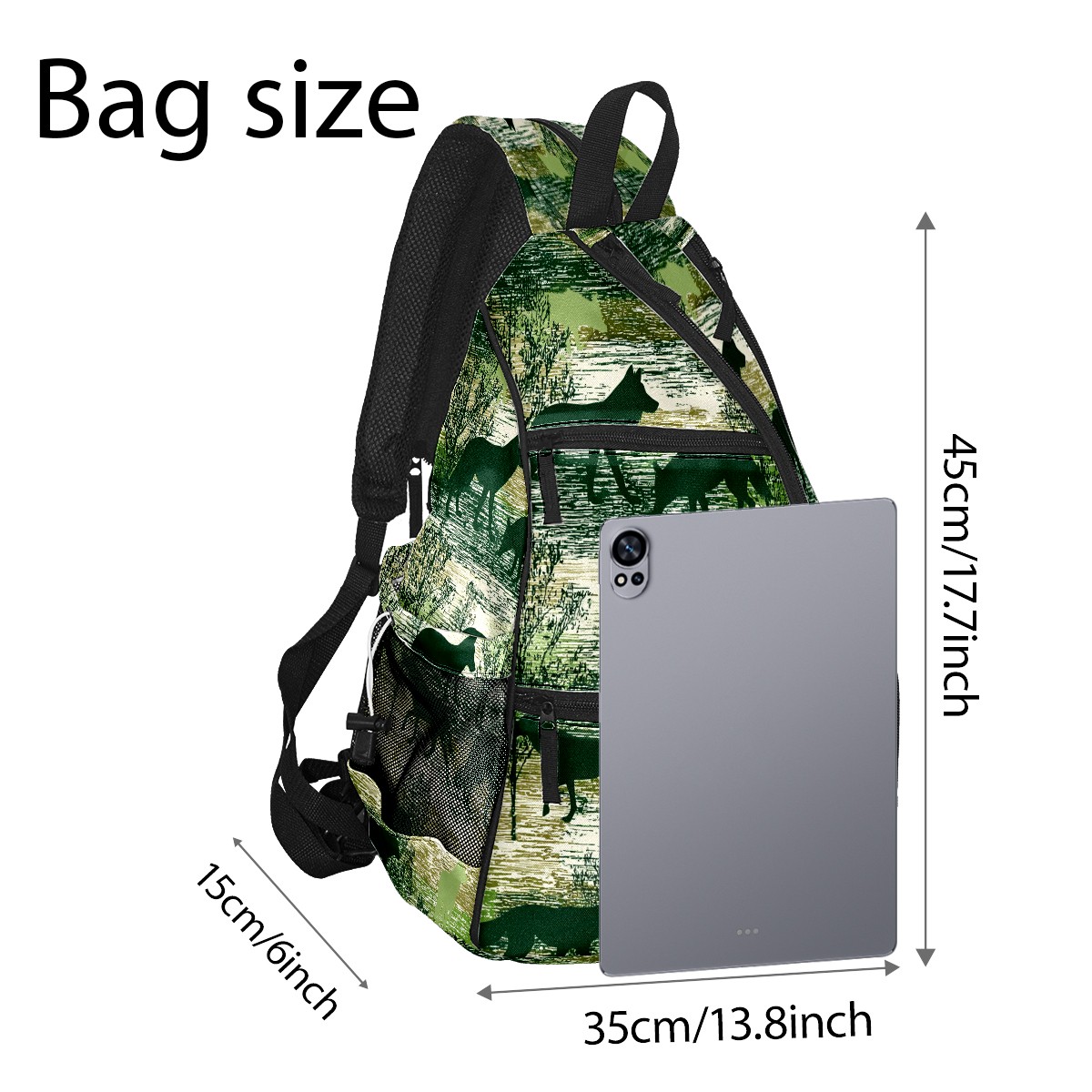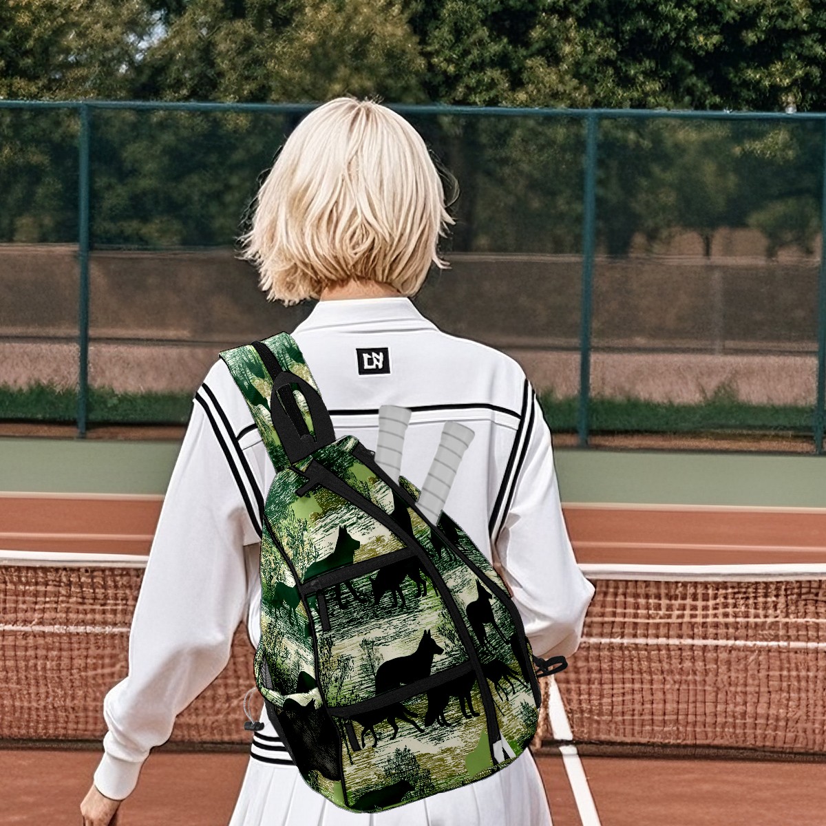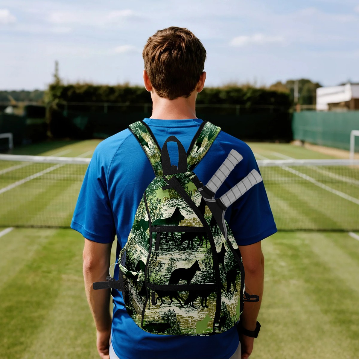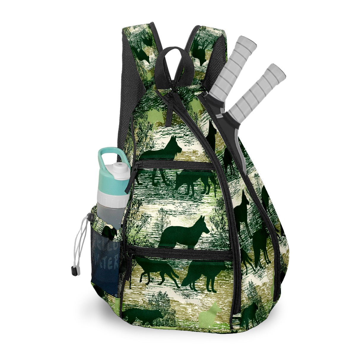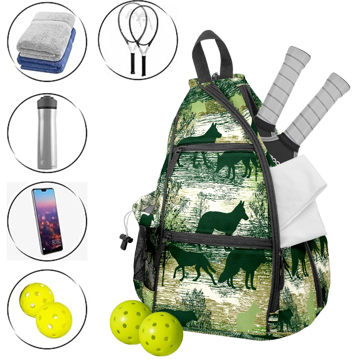 Pickleball Backpack - Convertible Shoulder Straps, Lightweight Breathable Wild Wolf Green Bag, Fits 2 Paddles, Balls & Gear (45x35x15cm)