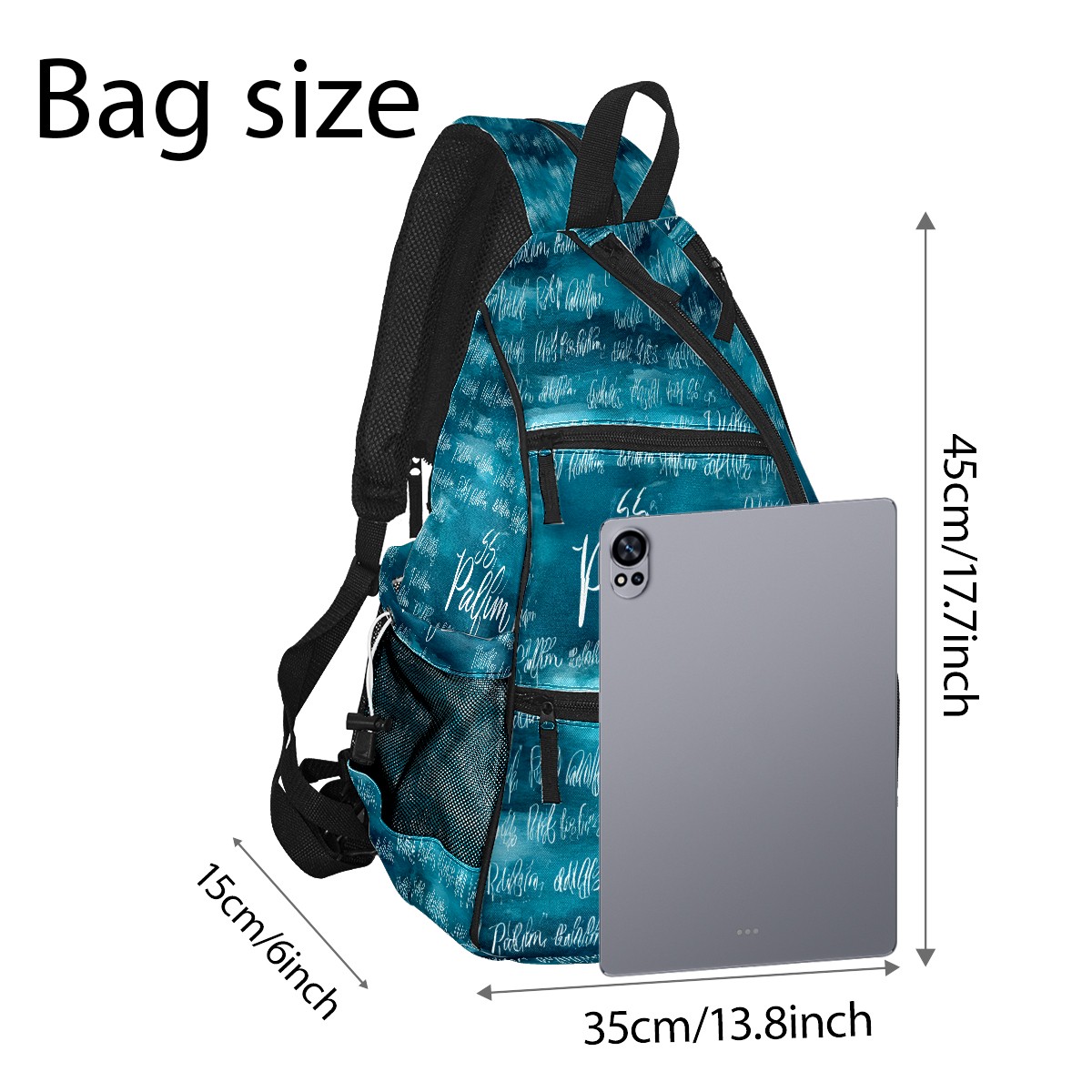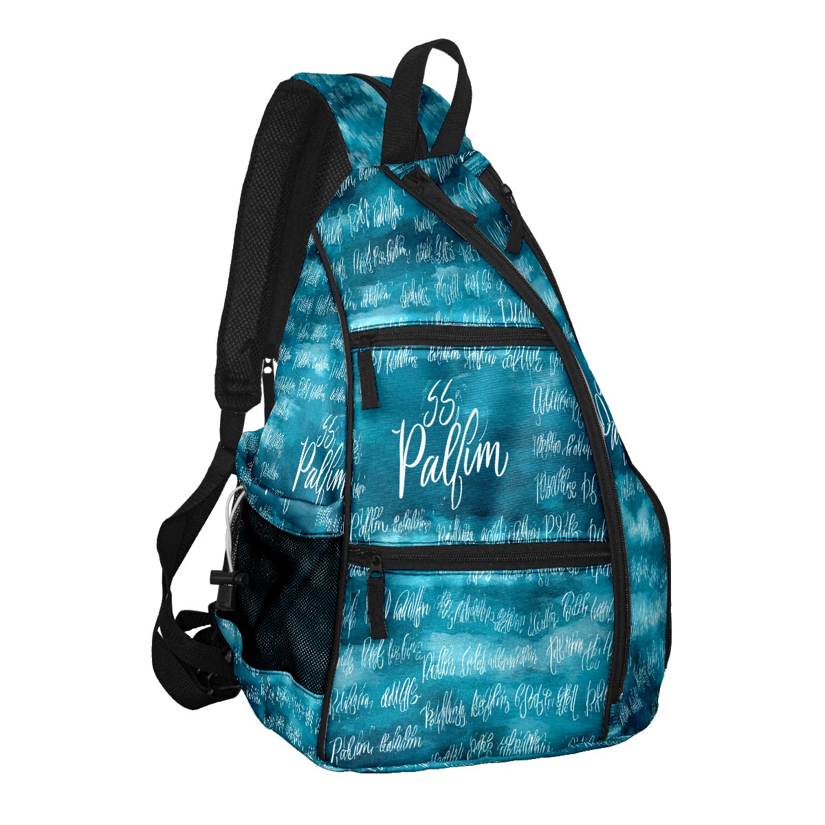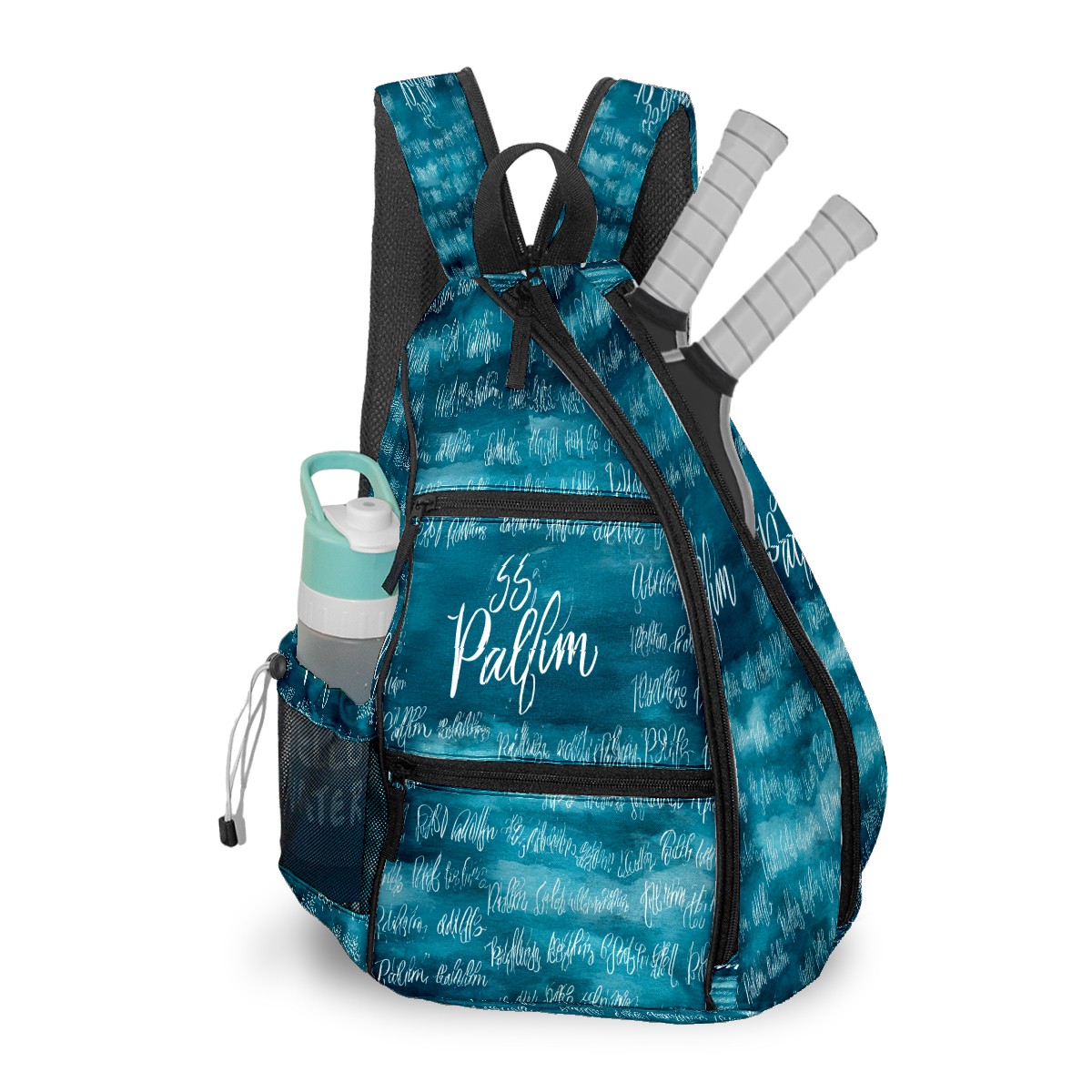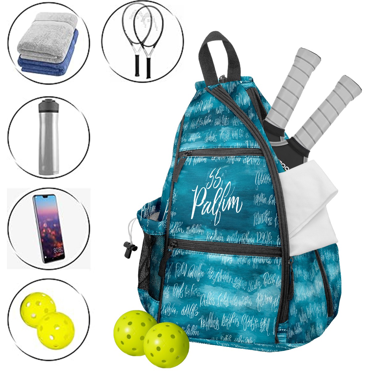 Pickleball Backpack - Convertible Shoulder Straps, Lightweight Breathable Artistic Text Blue Bag, Fits 2 Paddles, Balls & Gear (45x35x15cm)