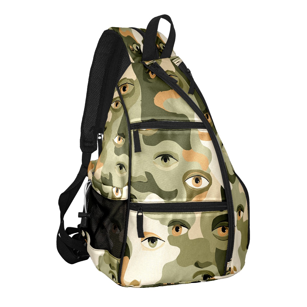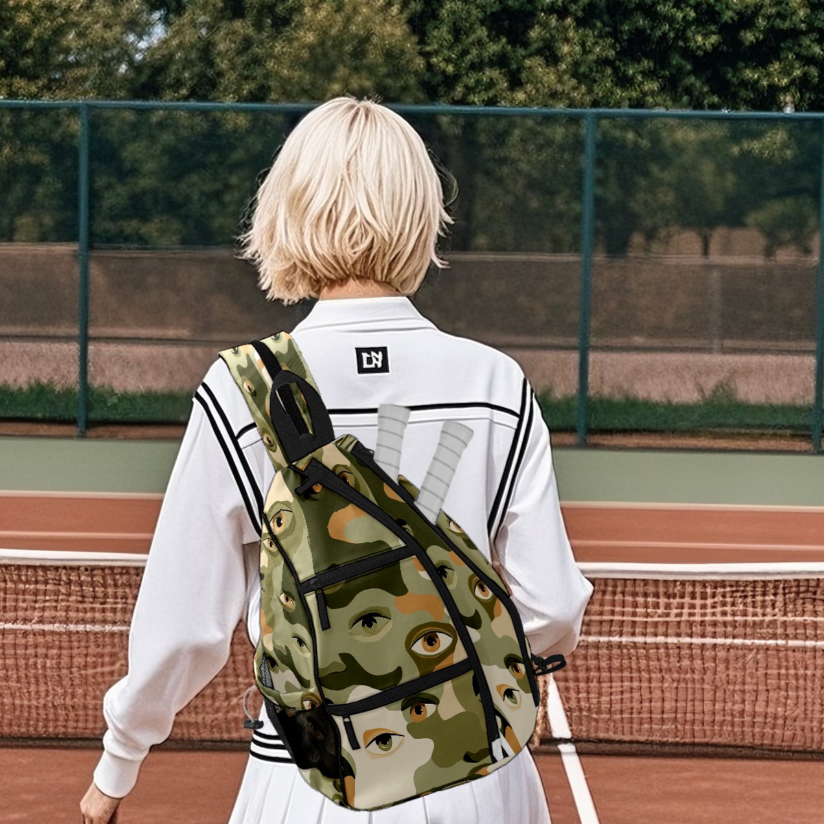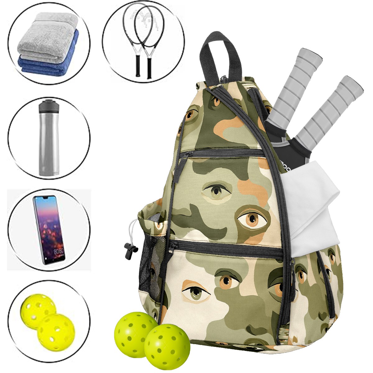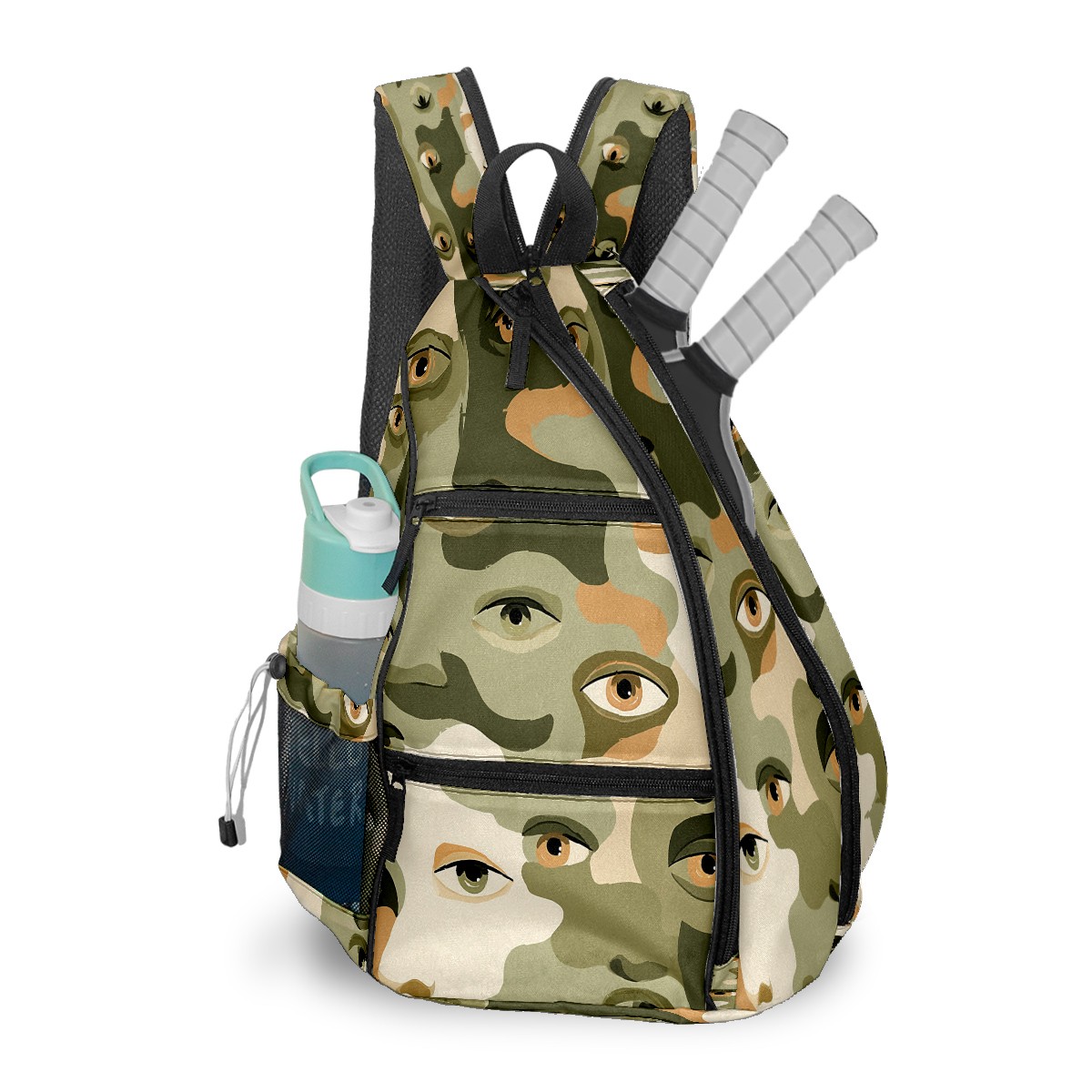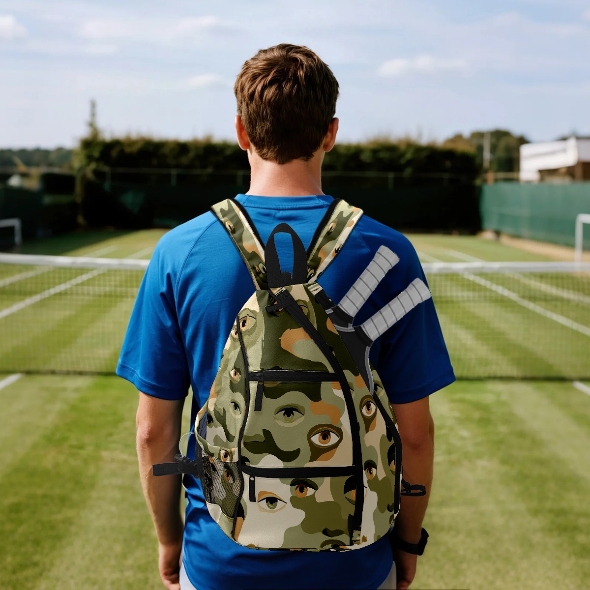 Pickleball Backpack - Convertible Shoulder Straps, Lightweight Breathable Eye Camouflage Bag, Fits 2 Paddles, Balls & Gear (45x35x15cm)