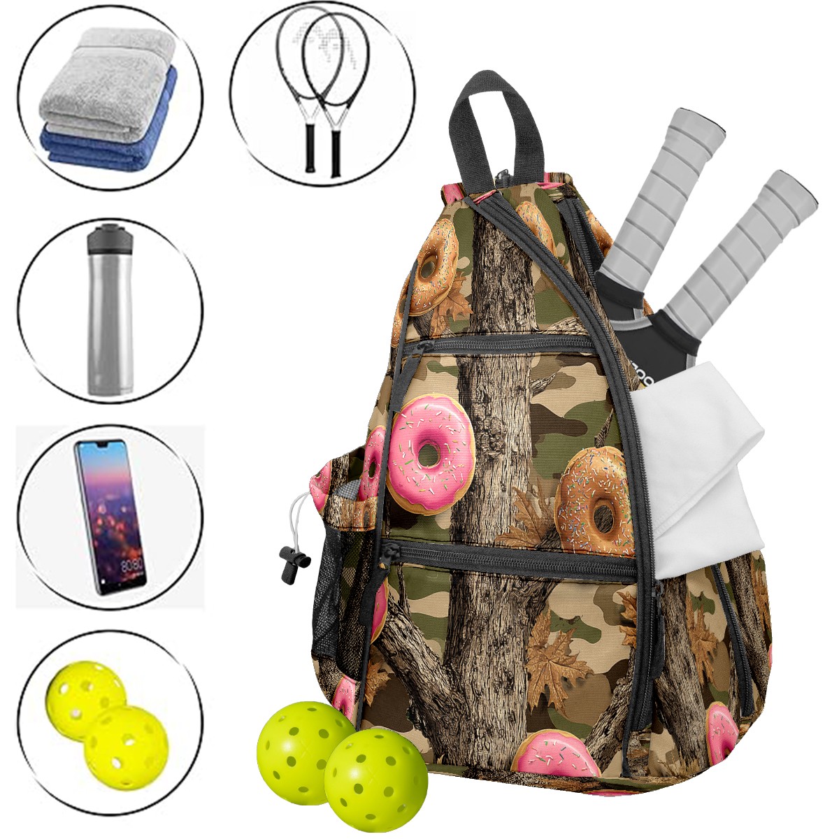 Pickleball Backpack - Convertible Shoulder Straps, Lightweight Breathable Sweet Donut Pink Bag, Fits 2 Paddles, Balls & Gear (45x35x15cm)