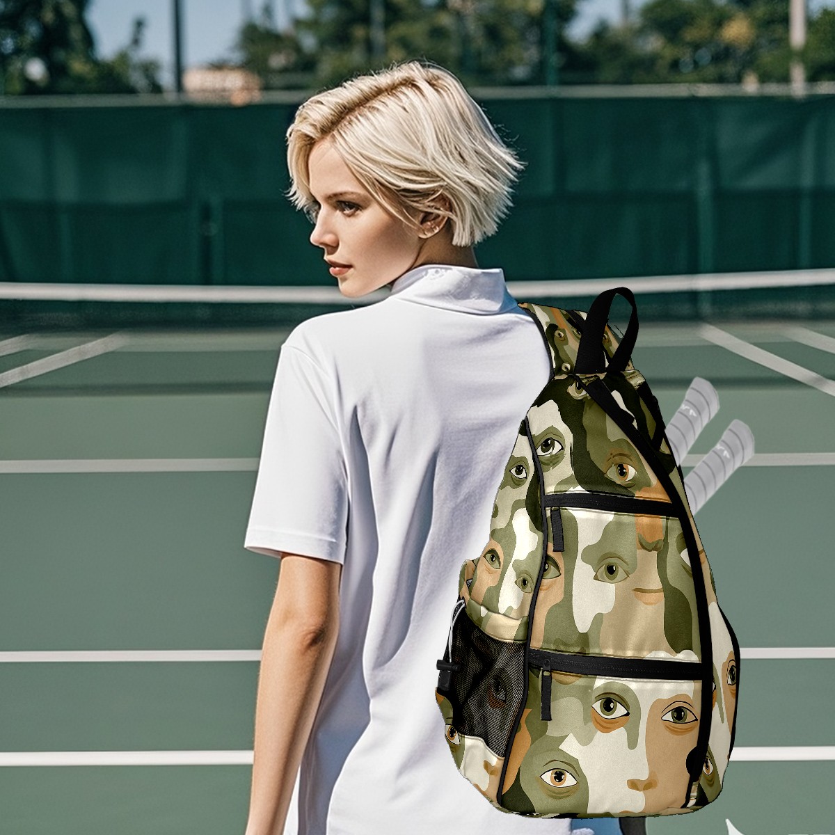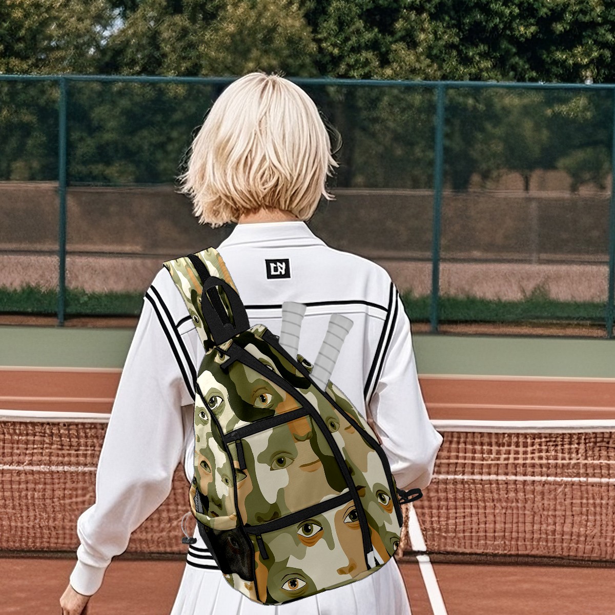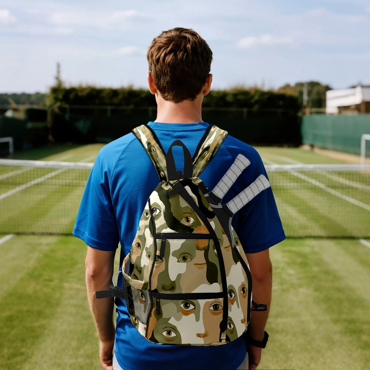 Pickleball Backpack - Convertible Shoulder Straps, Lightweight Breathable Mysterious Camouflage Bag, Fits 2 Paddles, Balls & Gear (45x35x15cm)