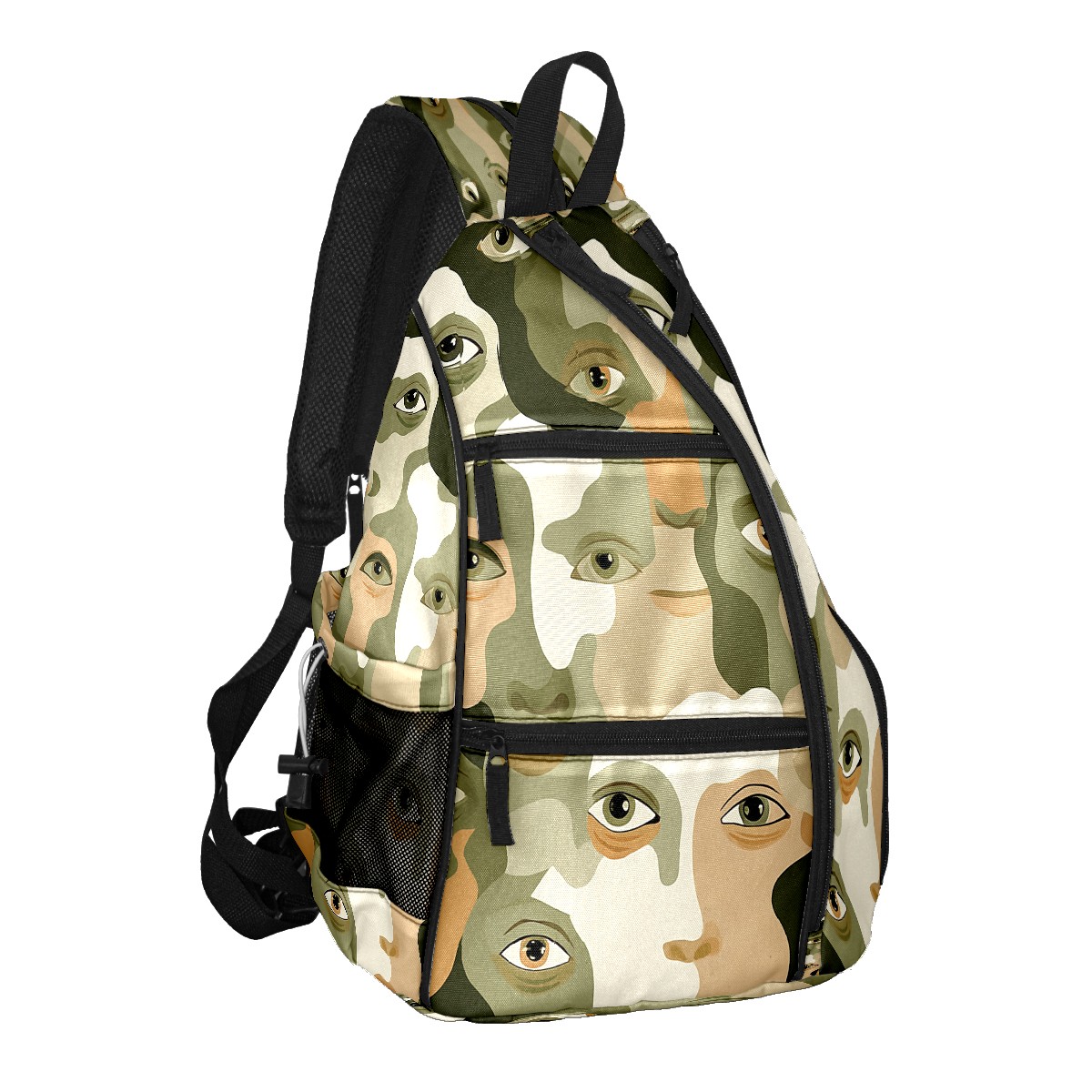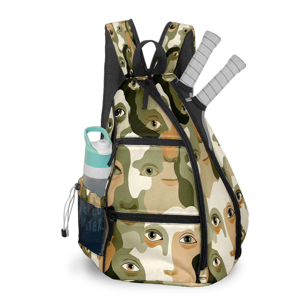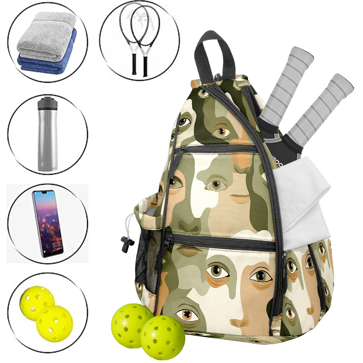 Pickleball Backpack - Convertible Shoulder Straps, Lightweight Breathable Mysterious Camouflage Bag, Fits 2 Paddles, Balls & Gear (45x35x15cm)