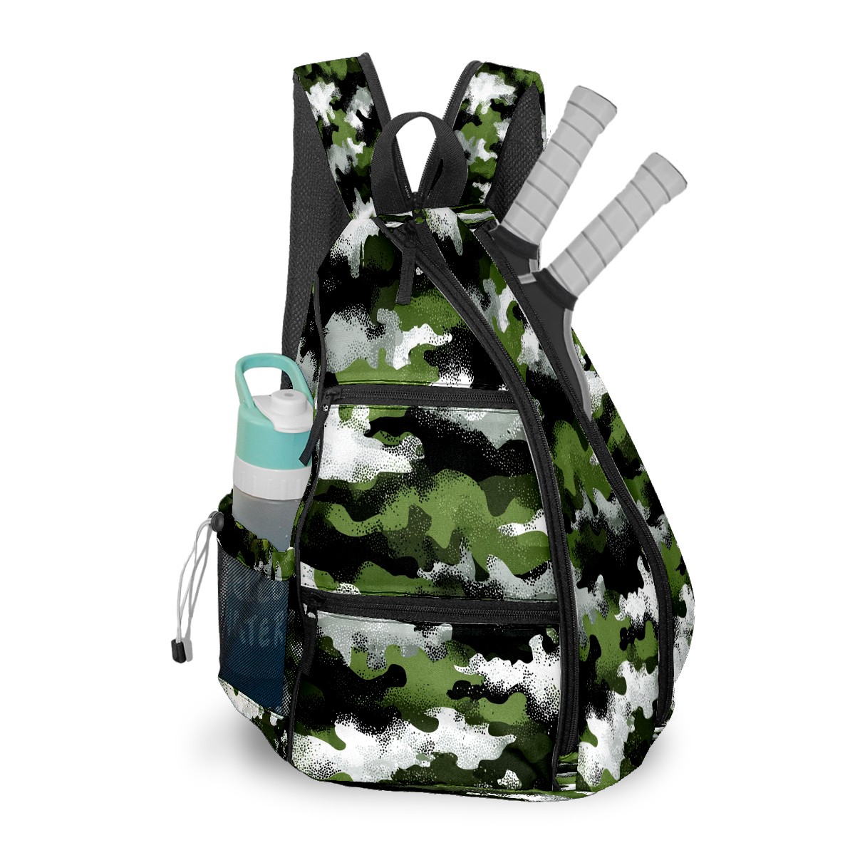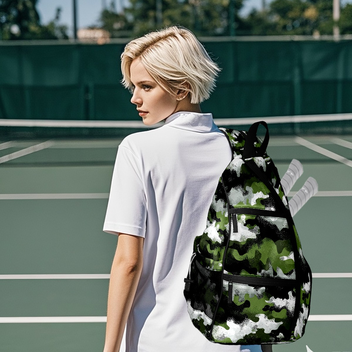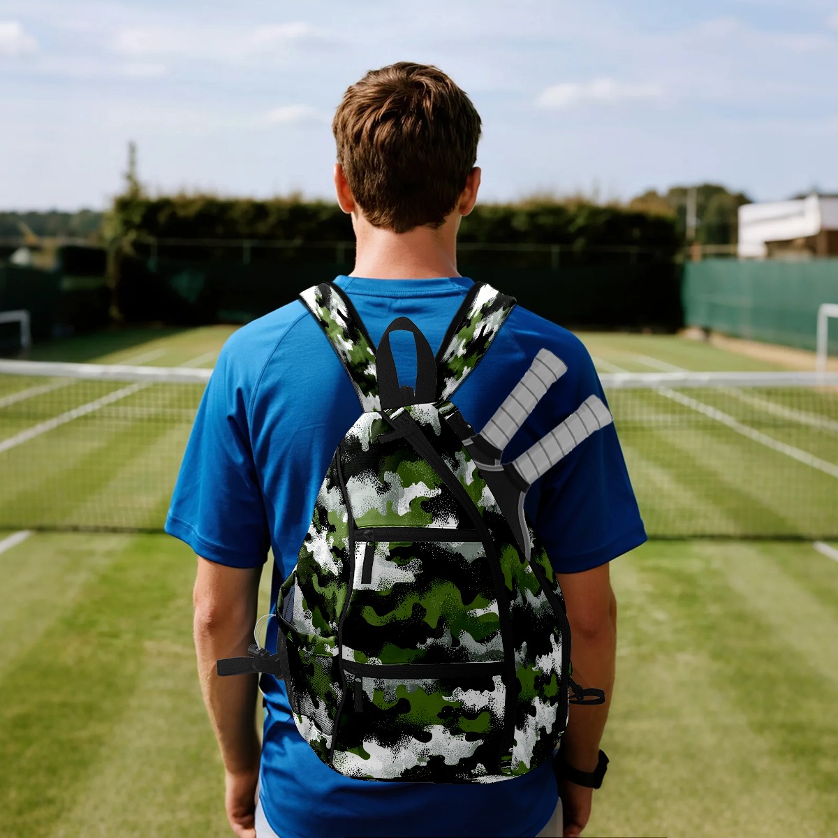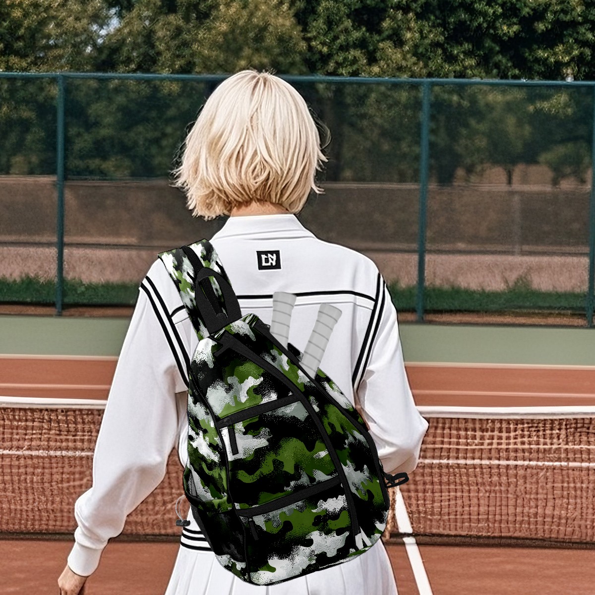 Pickleball Backpack - Convertible Shoulder Straps, Lightweight Breathable Chilly Camouflage Green Bag, Fits 2 Paddles, Balls & Gear (45x35x15cm)