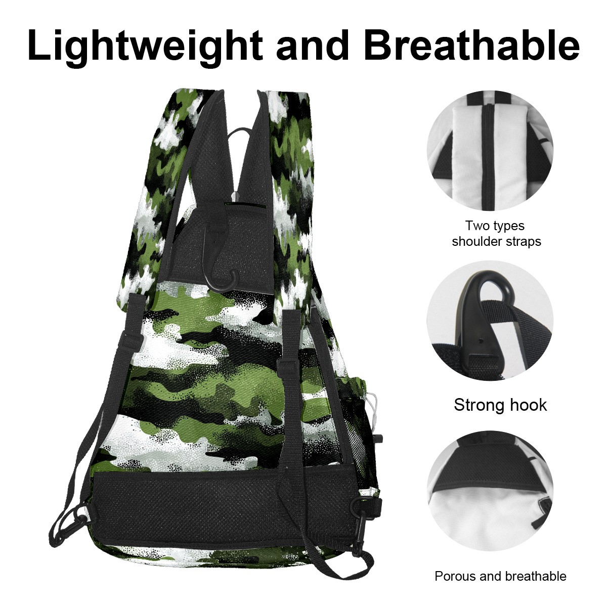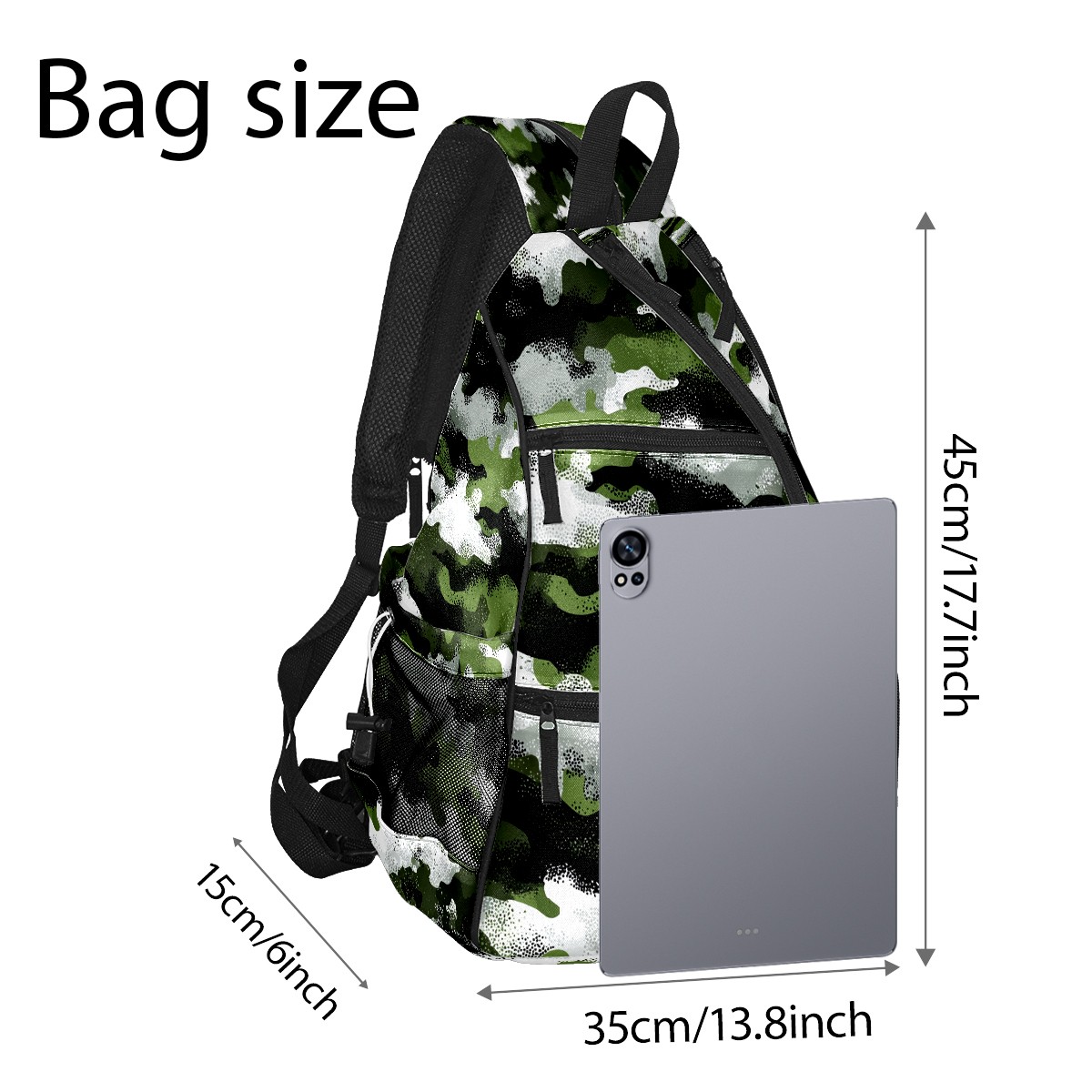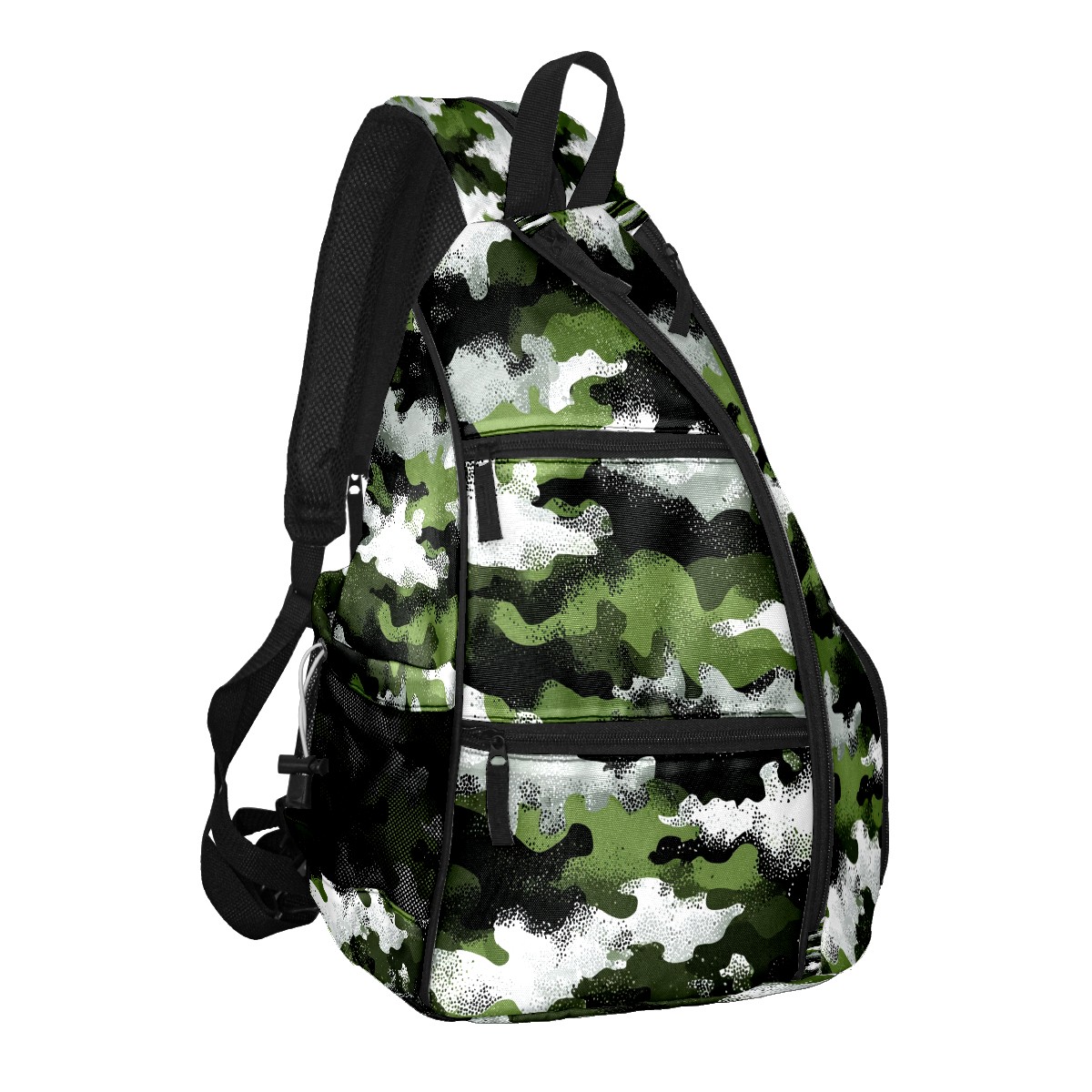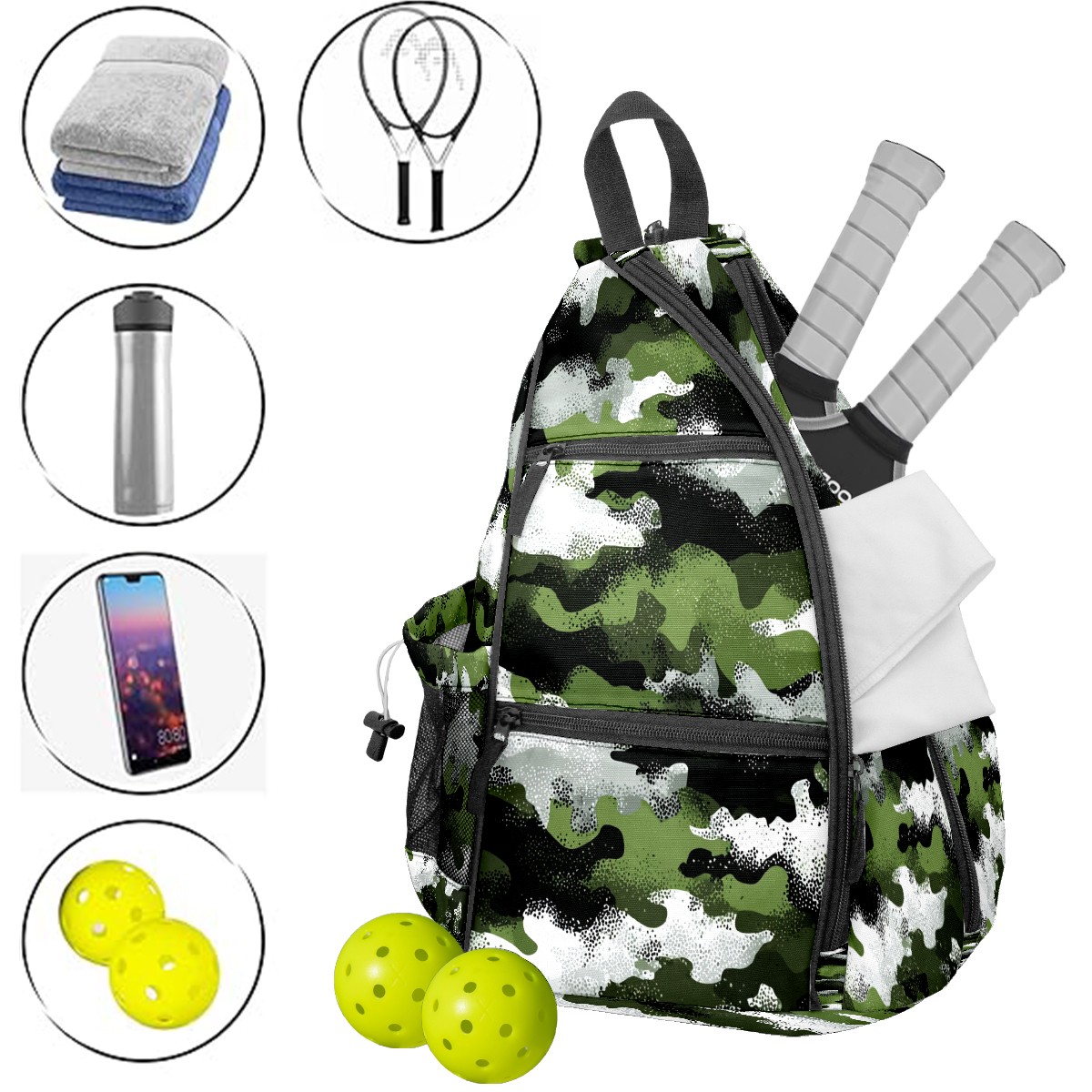Pickleball Backpack - Convertible Shoulder Straps, Lightweight Breathable Chilly Camouflage Green Bag, Fits 2 Paddles, Balls & Gear (45x35x15cm)