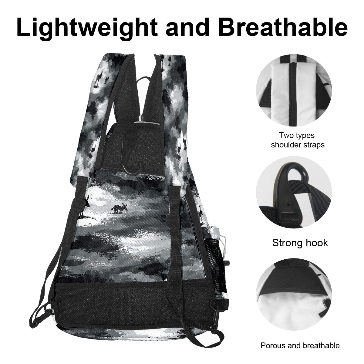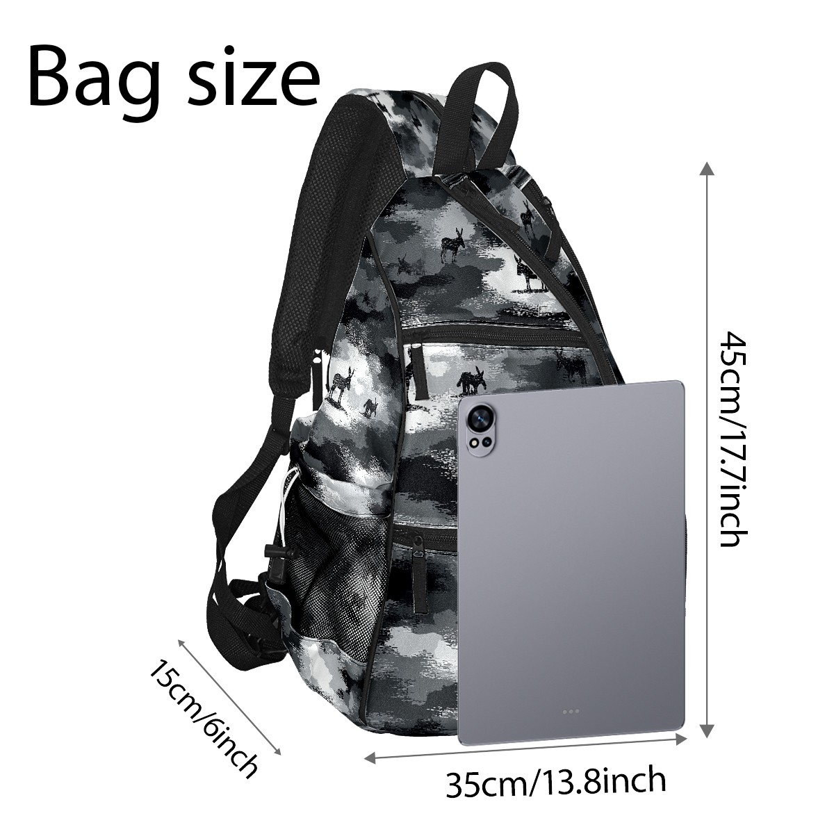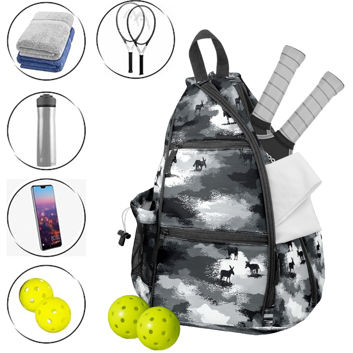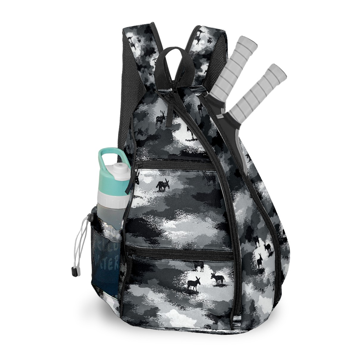 Pickleball Backpack - Convertible Shoulder Straps, Lightweight Breathable Camouflage Black Bag, Fits 2 Paddles, Balls & Gear (45x35x15cm)