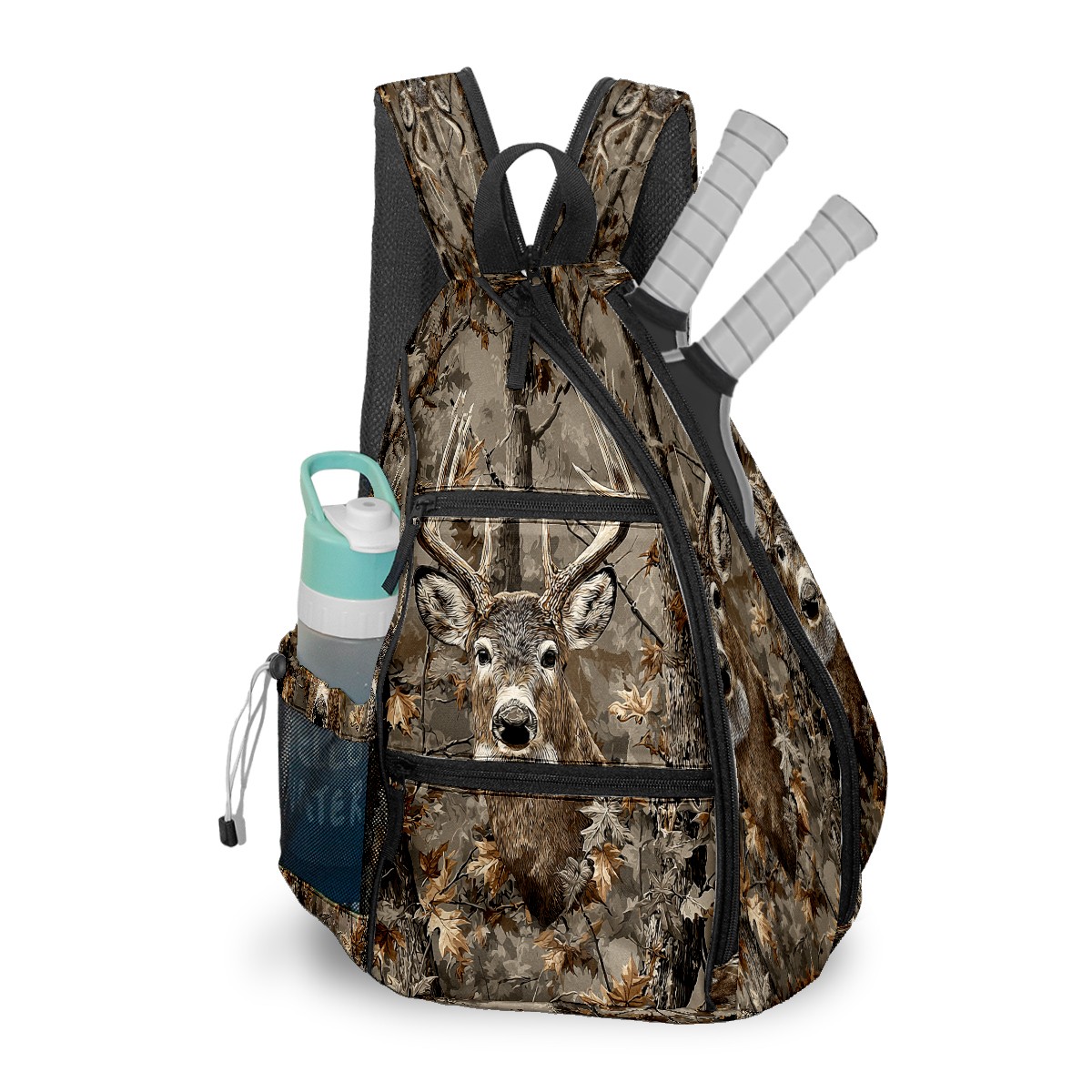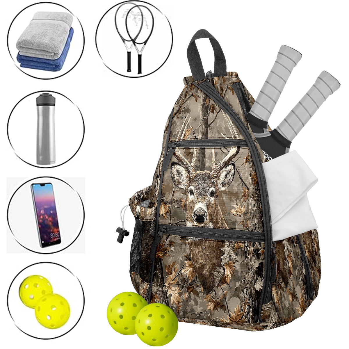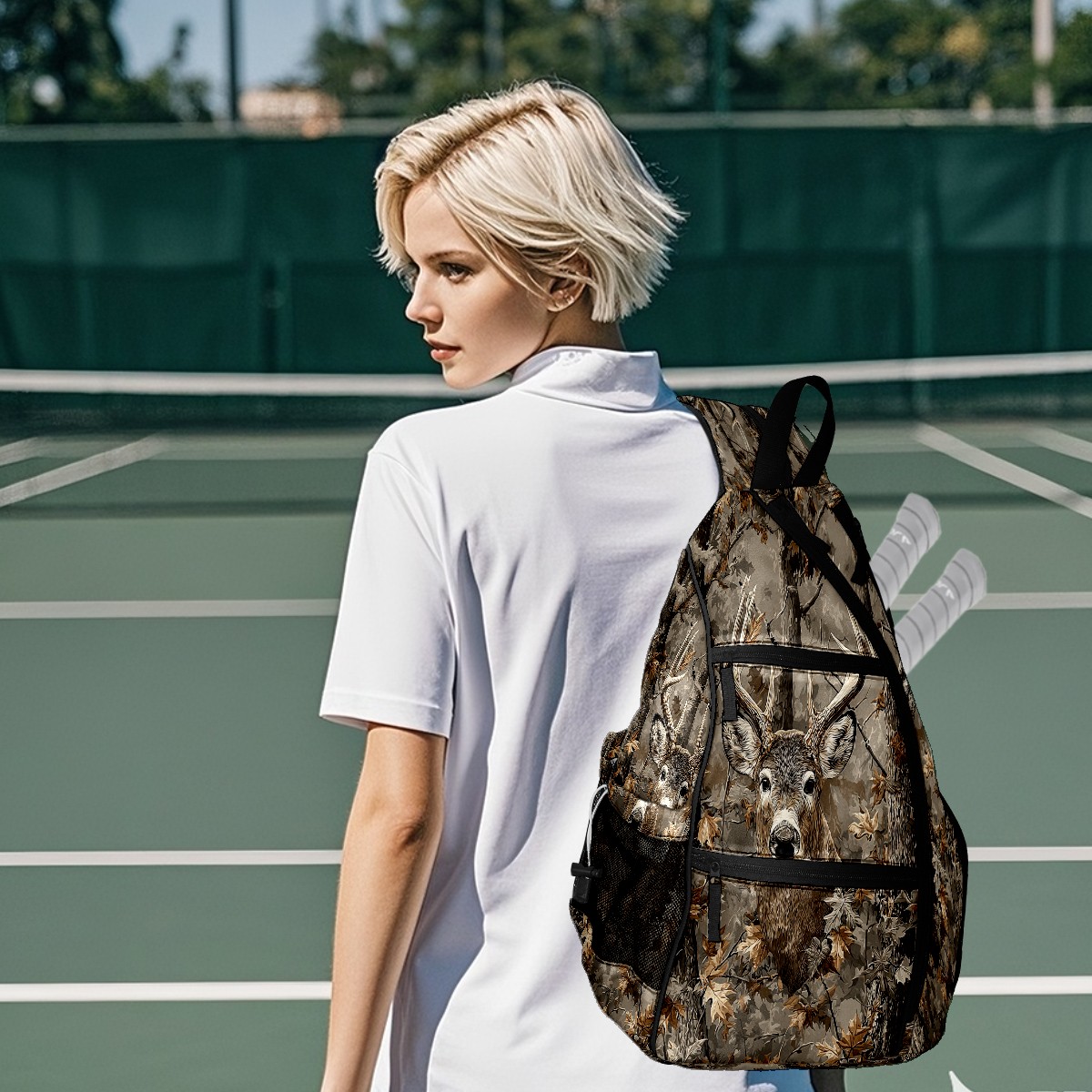 Pickleball Backpack - Convertible Shoulder Straps, Lightweight Breathable Vintage Deer Brown Bag, Fits 2 Paddles, Balls & Gear (45x35x15cm)